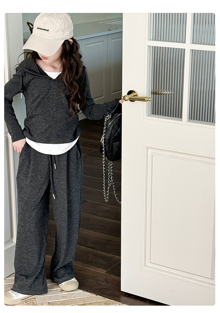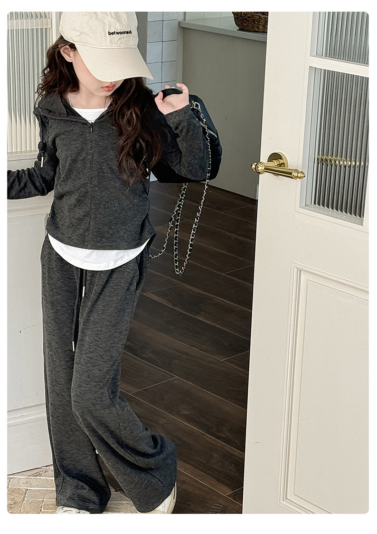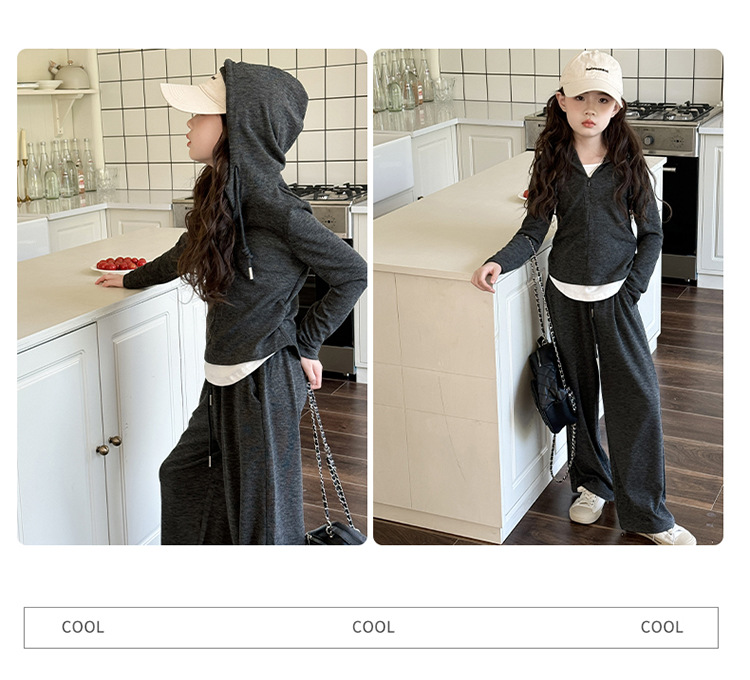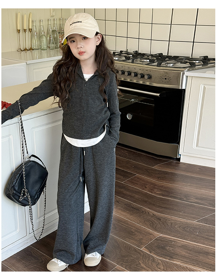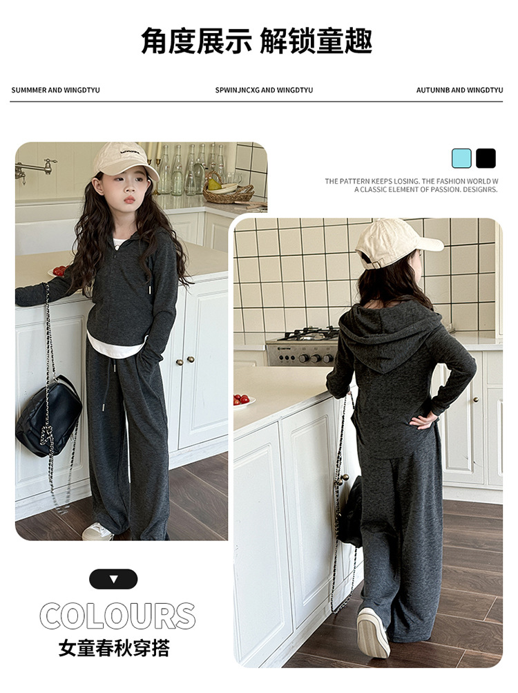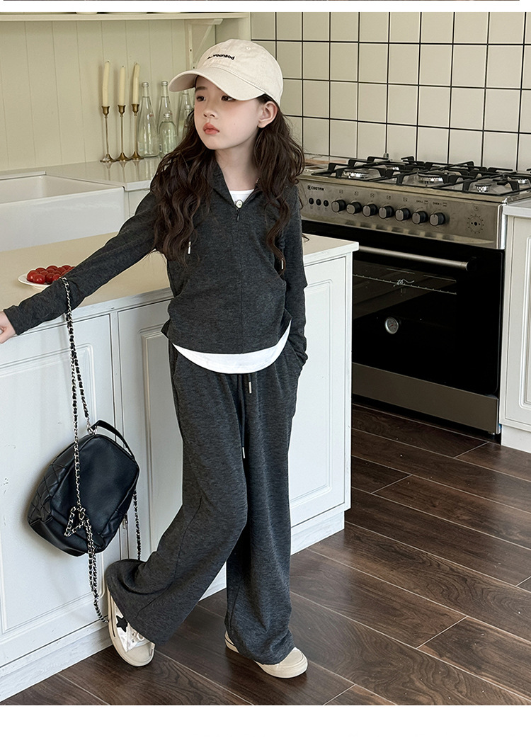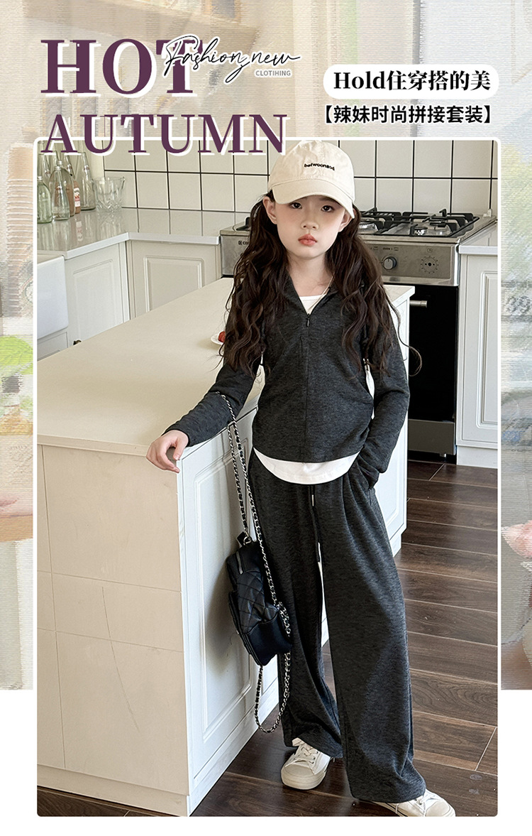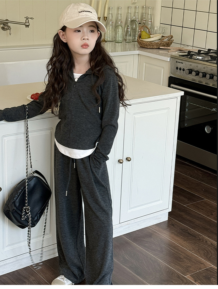 소녀들의 세트 2024 봄과 가을 새로운 소녀들의 큰 소년들의 가짜 두 조각 바느질 최고의 어린이 바지 소녀 캐주얼 바지