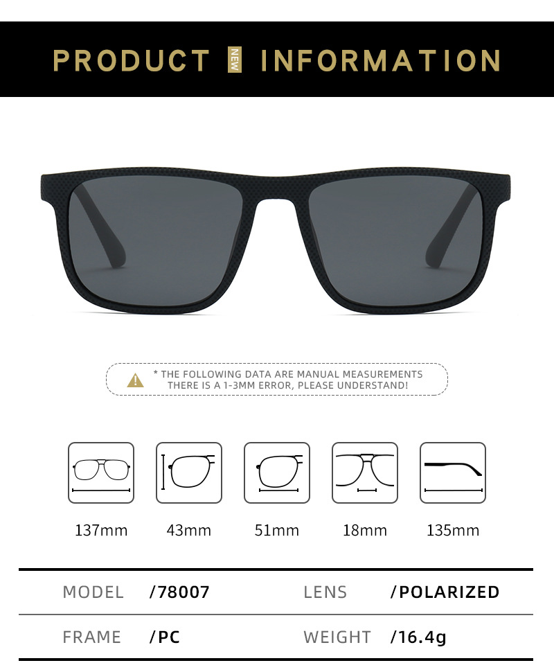 국경 간 새로운 선글라스 남성 하이 엔드 패션 박스 편광 선글라스 봄 다리 2 색 선글라스스토어 가기