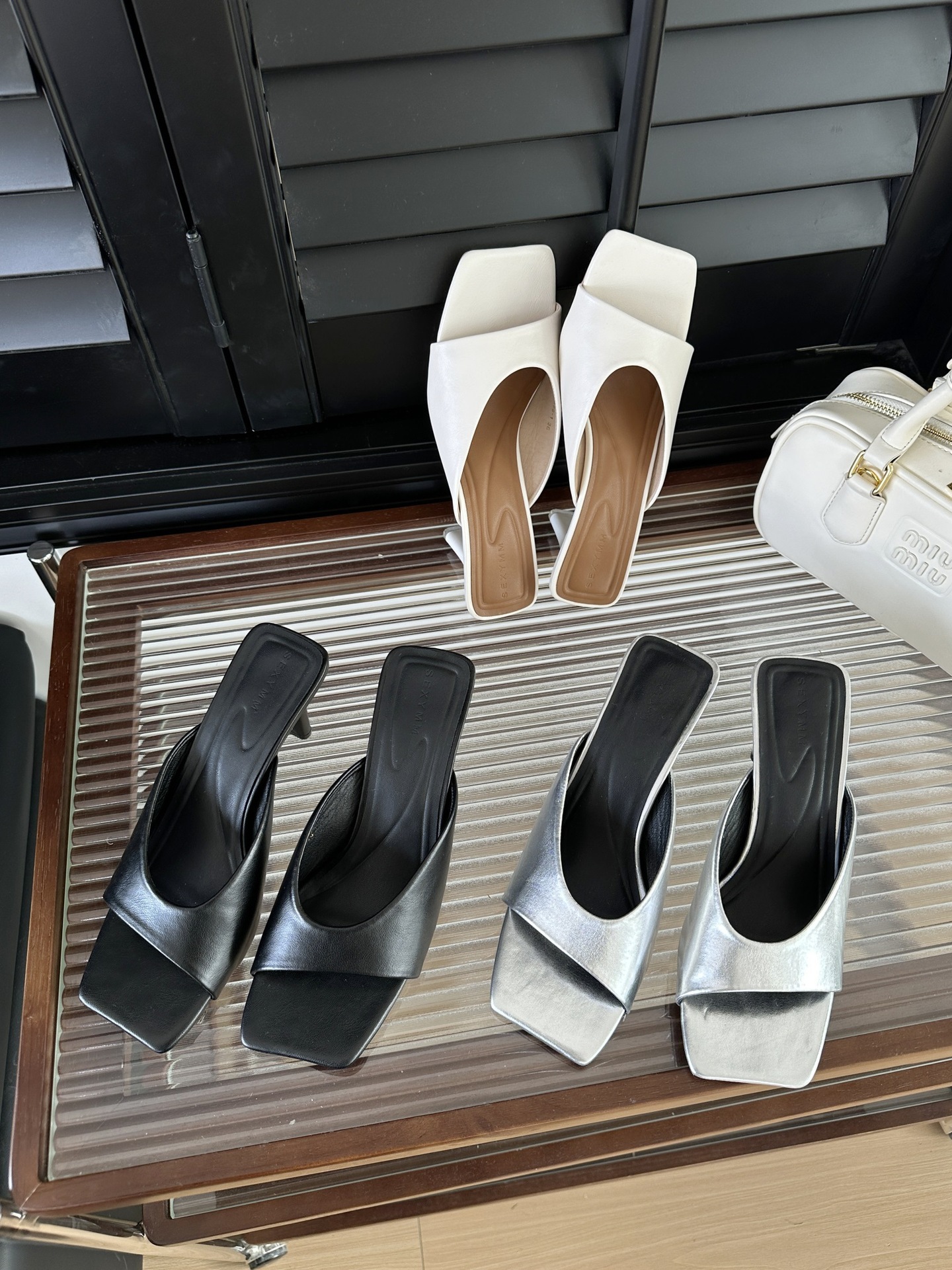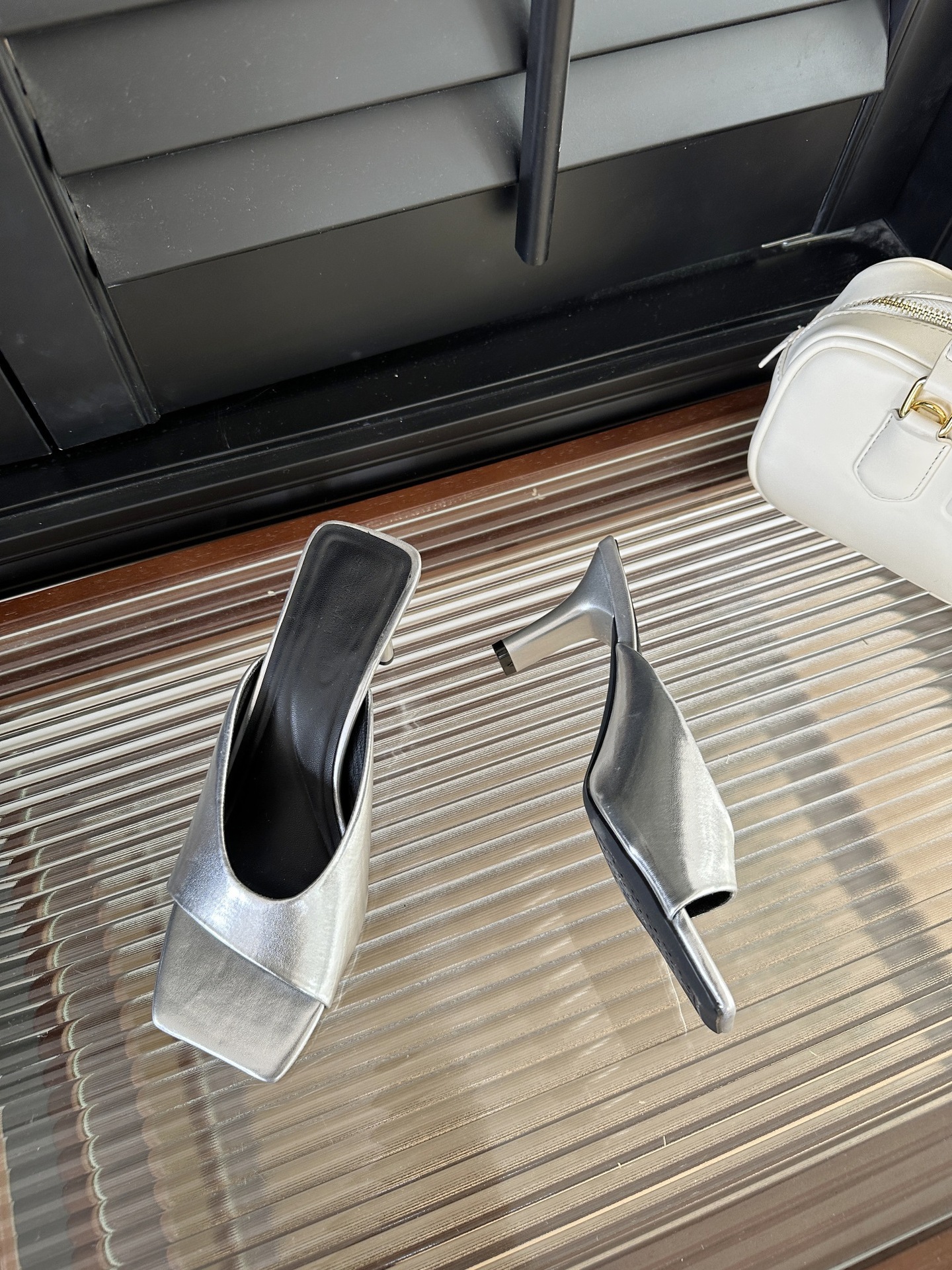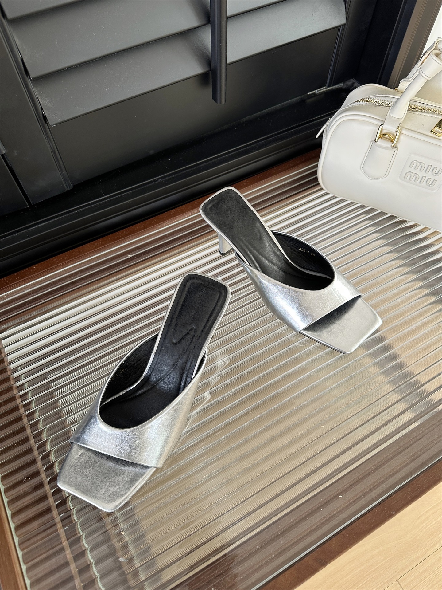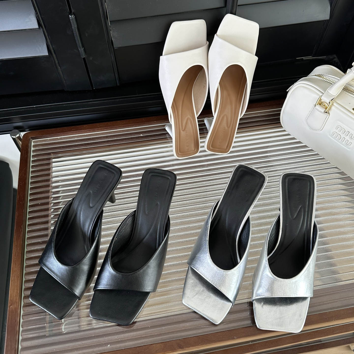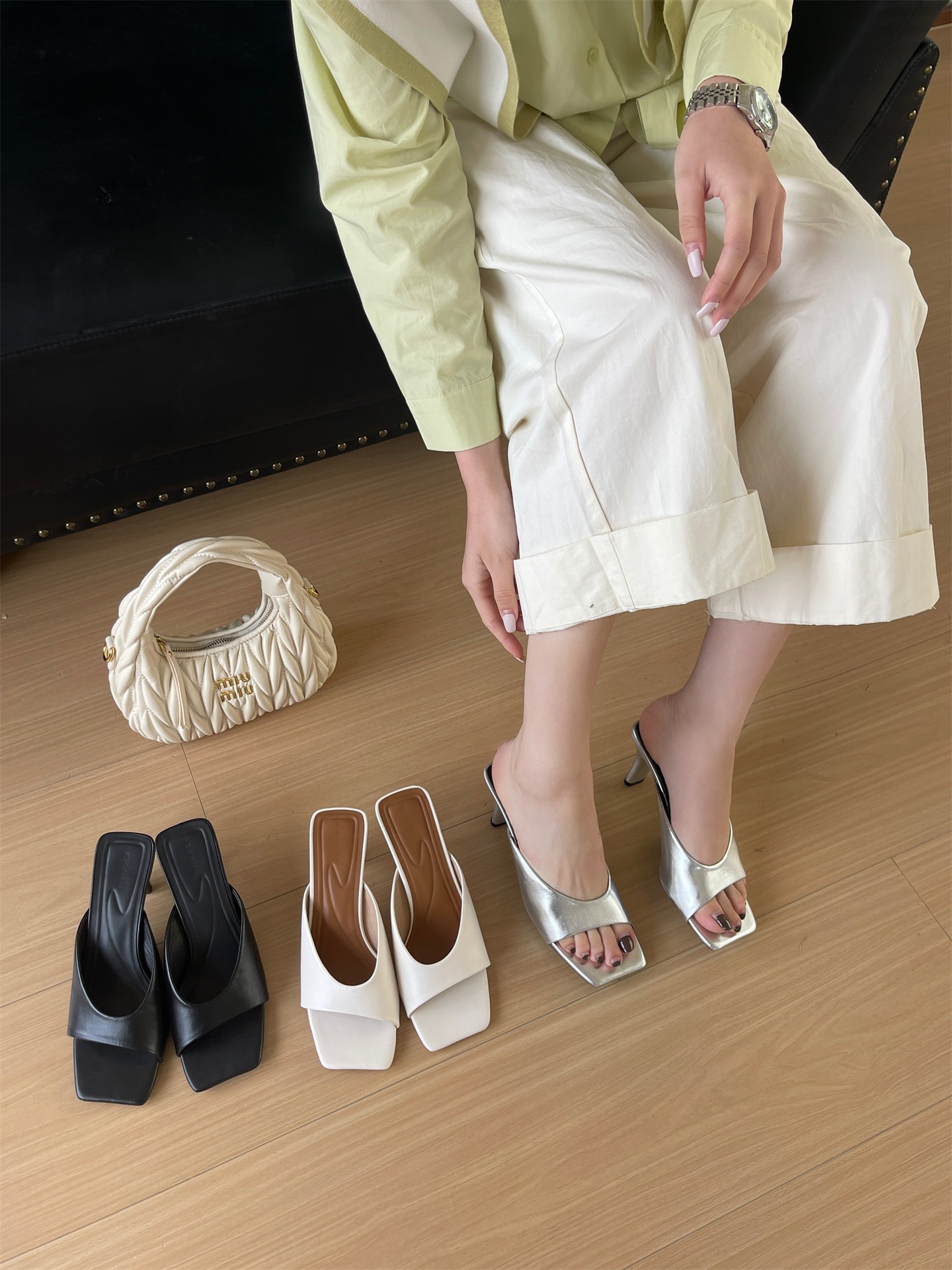 2024 여름 새로운 스타일의 싱글 레이어 신발 하이 엔드 감각 한 단어 드래그 스틸레토 힐 샌들 여성 신발 아웃트로 패션 하이힐