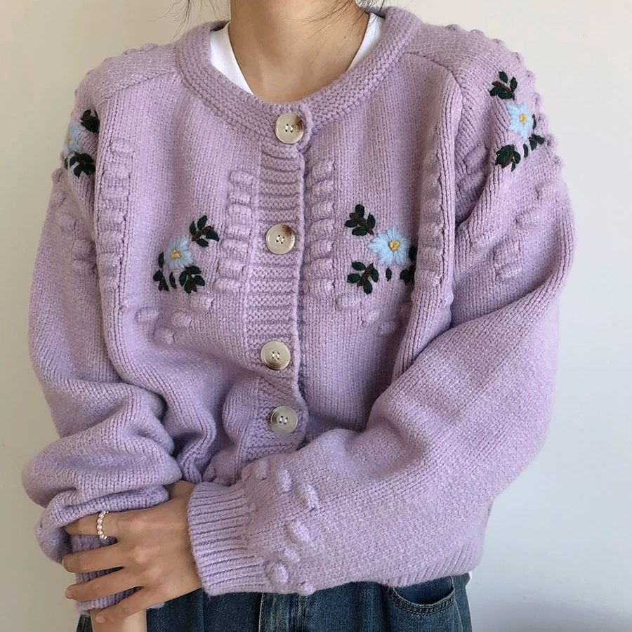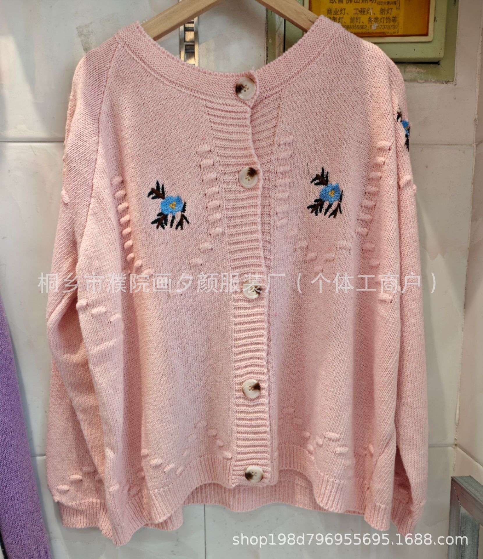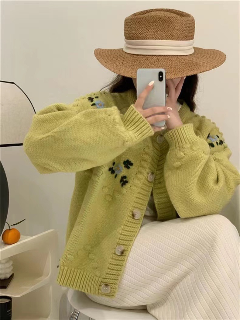 한국 자수 꽃 라운드 넥 소프트 왁스 스웨터 여성의 가을 및 겨울 새로운 달콤하고 부드러운 스타일 패셔너블 올 매치 니트 카디건스토어 가기