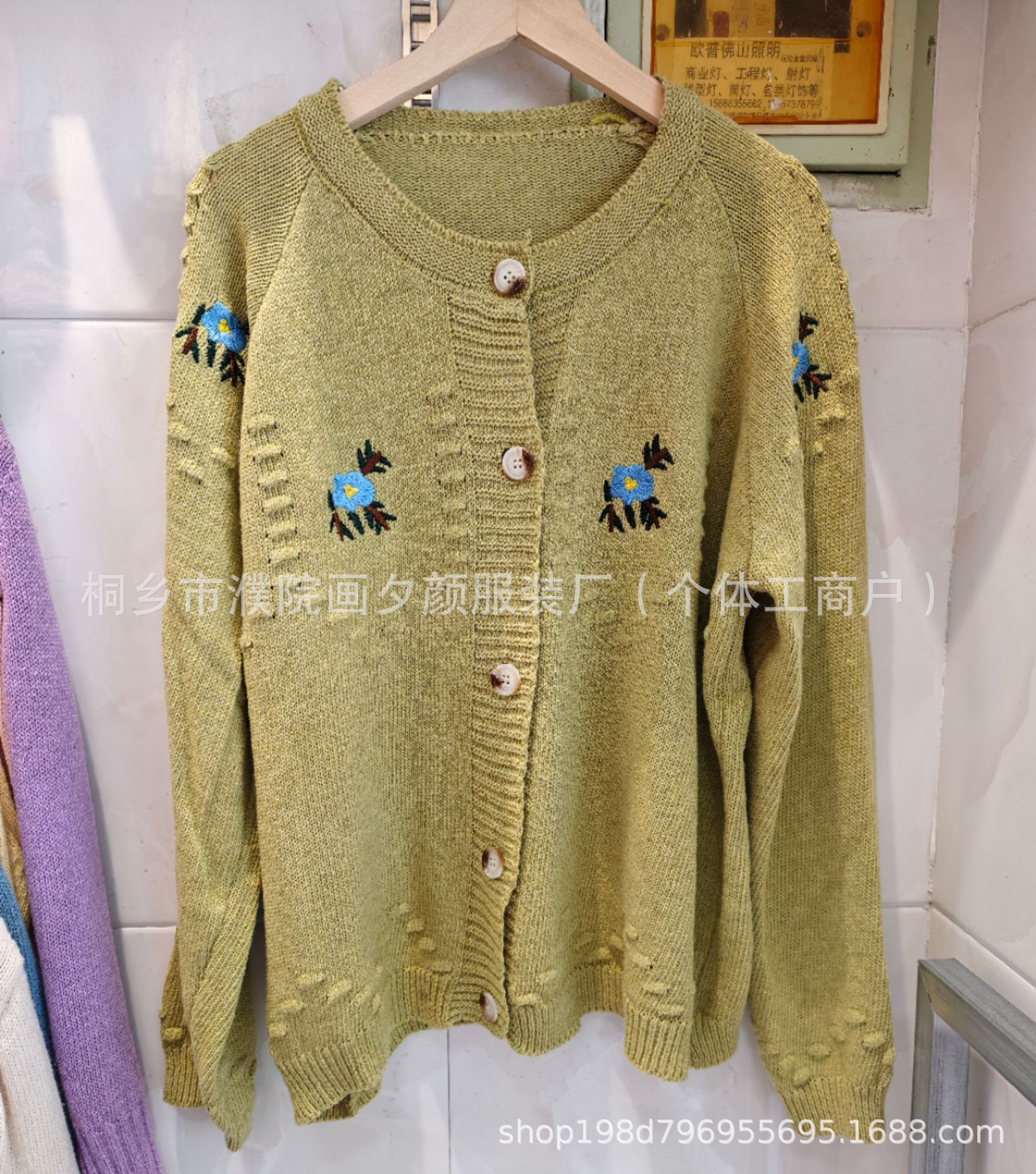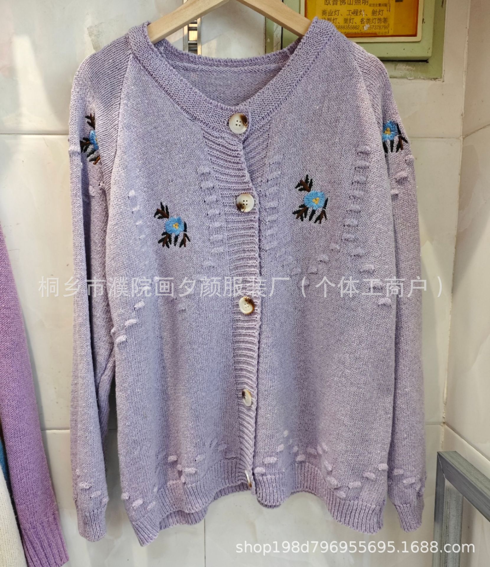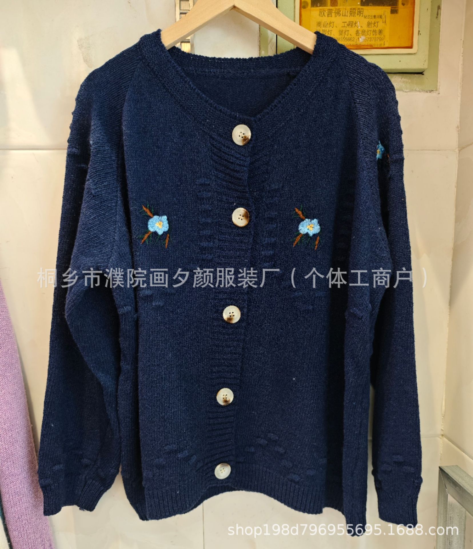 한국 자수 꽃 라운드 넥 소프트 왁스 스웨터 여성의 가을 및 겨울 새로운 달콤하고 부드러운 스타일 패셔너블 올 매치 니트 카디건스토어 가기