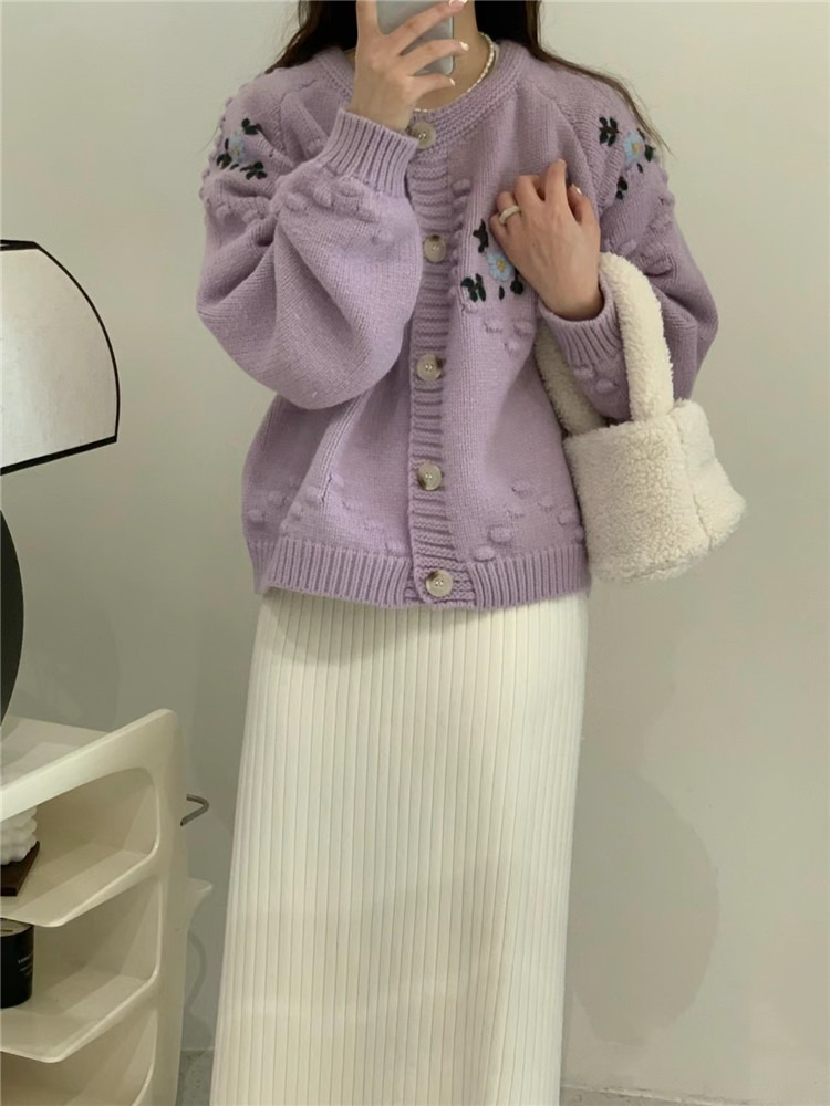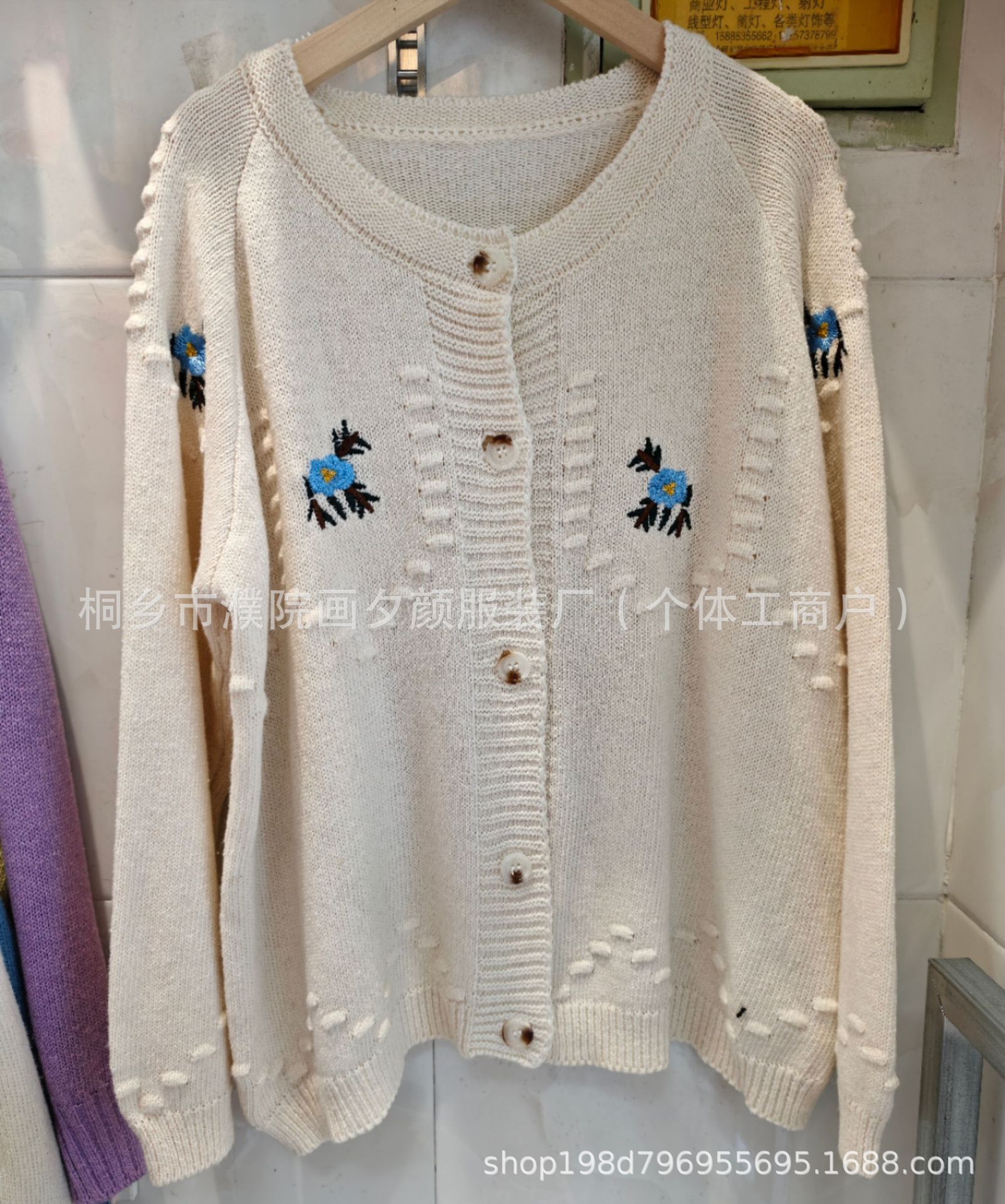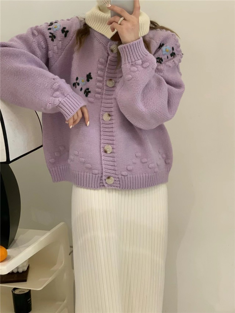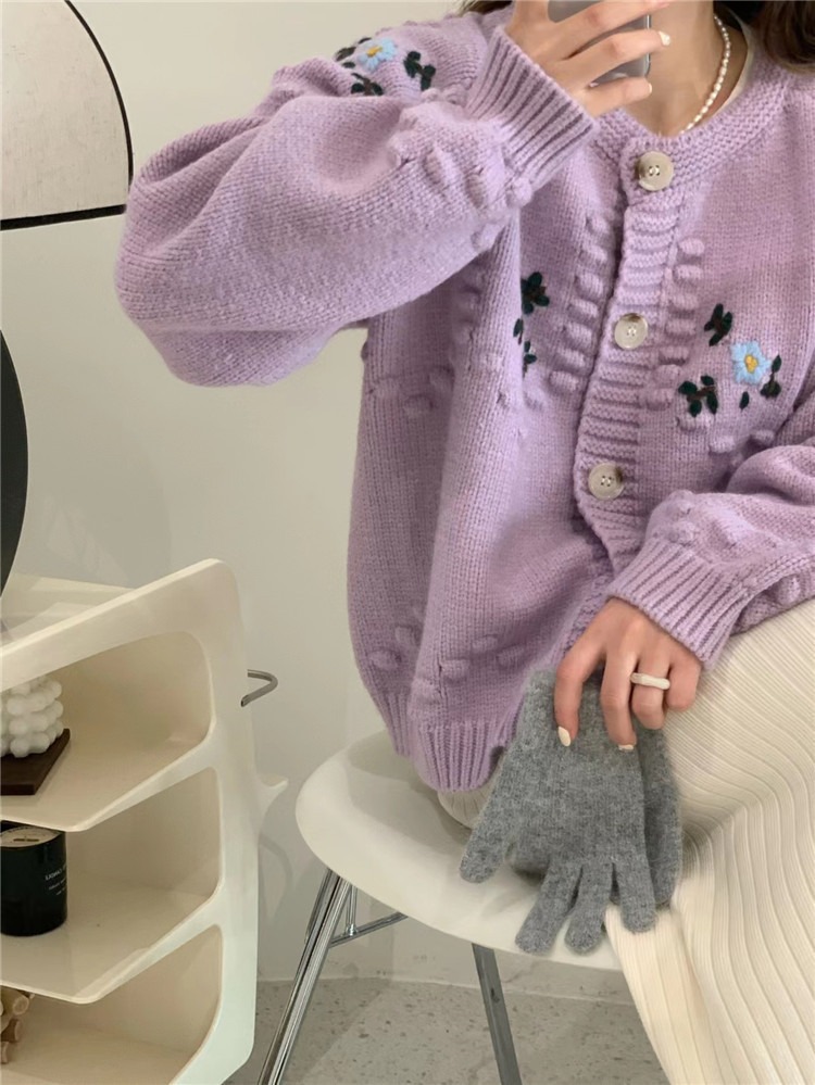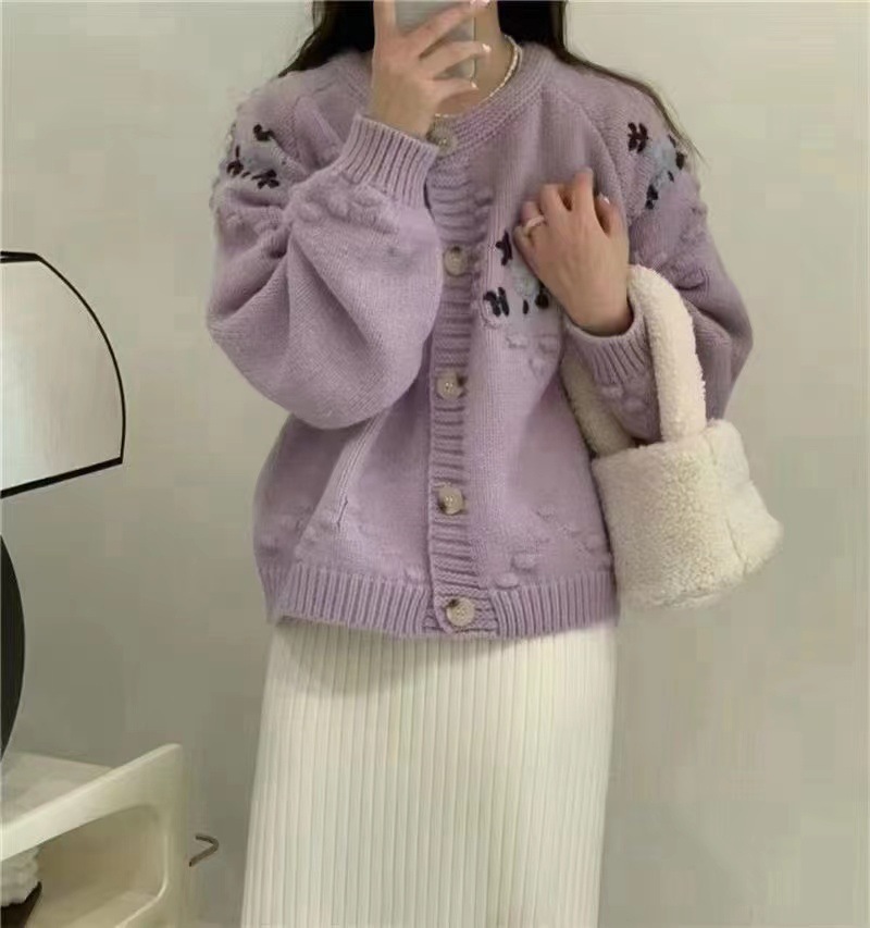 한국 자수 꽃 라운드 넥 소프트 왁스 스웨터 여성의 가을 및 겨울 새로운 달콤하고 부드러운 스타일 패셔너블 올 매치 니트 카디건