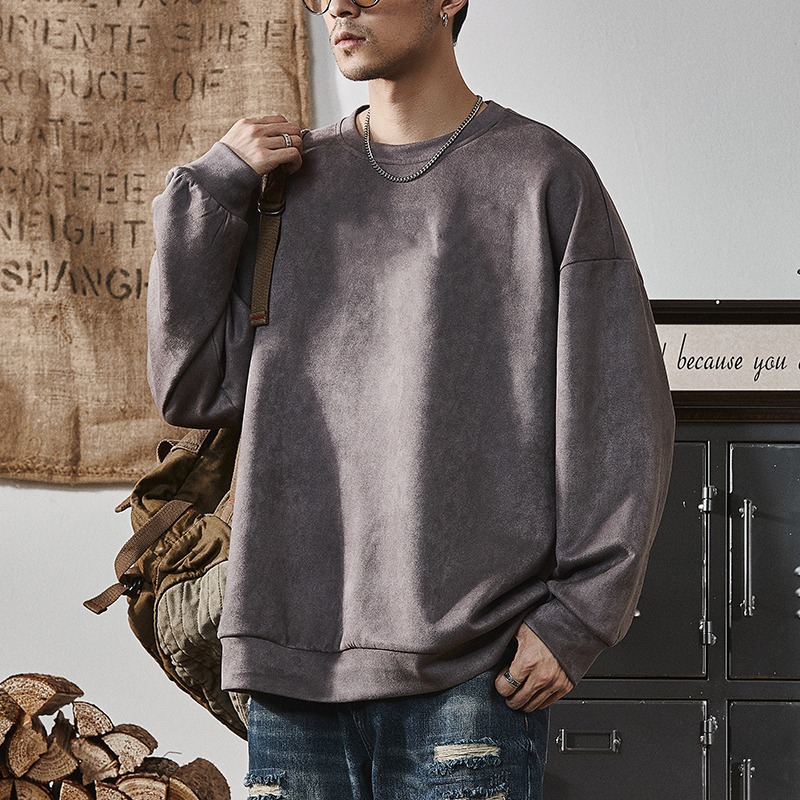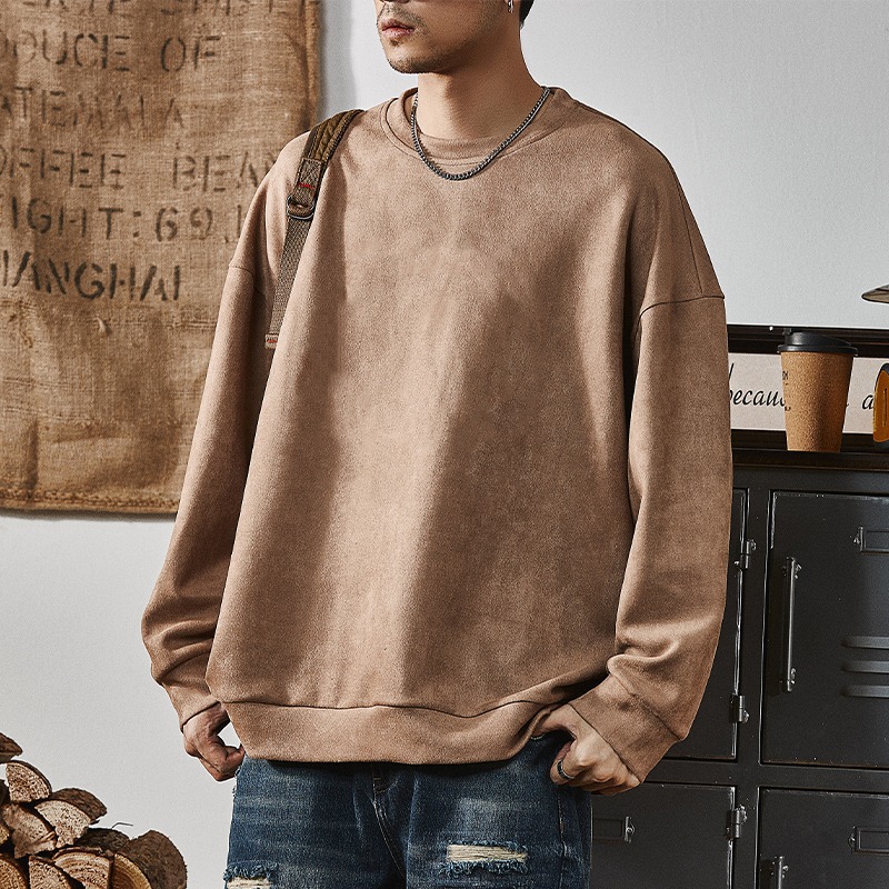 스웨이드 조끼 남성 봄과 가을 둥근 목 300g 무거운 긴 소매 2024 새로운 복고풍 캐주얼 풀오버 코트스토어 가기