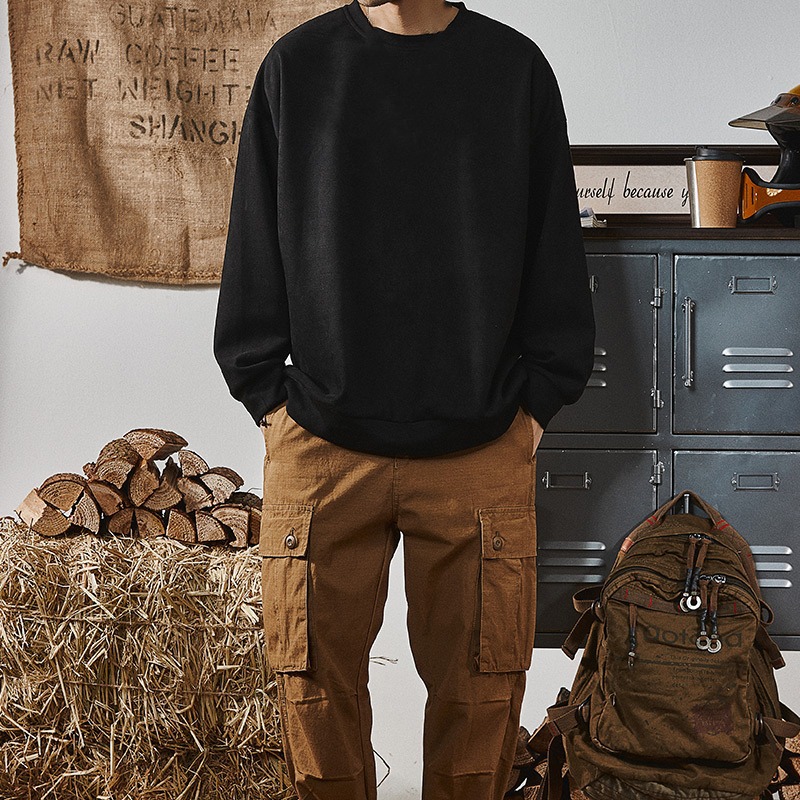 스웨이드 조끼 남성 봄과 가을 둥근 목 300g 무거운 긴 소매 2024 새로운 복고풍 캐주얼 풀오버 코트