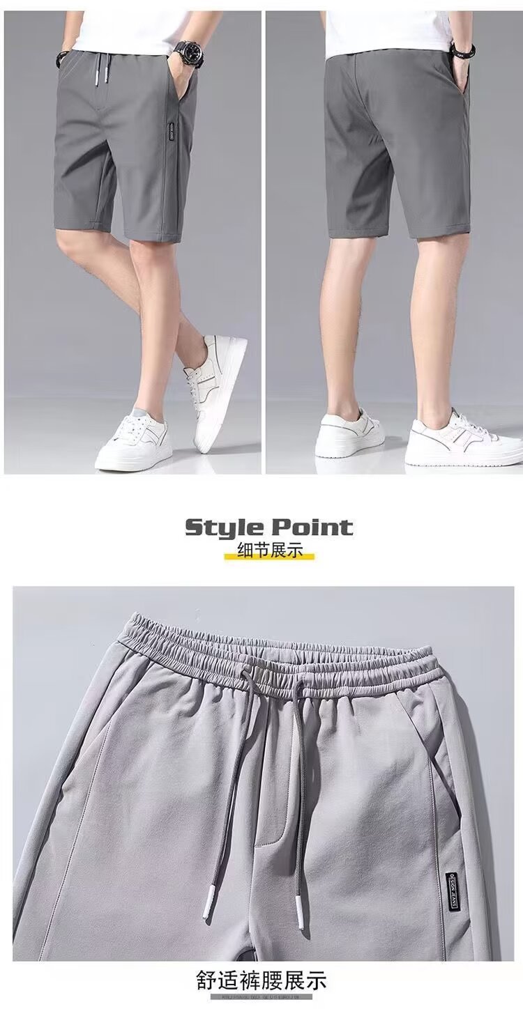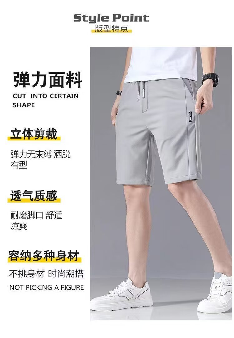아이스 실크 반바지 남성 여름 얇은 느슨한 유행 브랜드 2024 캐주얼 남성 외부 착용 5 점 바지 빠른 건조 중간 길이 바지스토어 가기