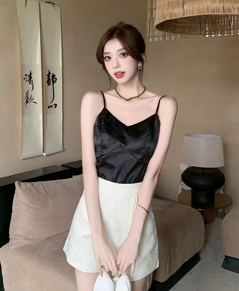 새로운 중국 스타일 여름 카미 솔 여성 국가 스타일 자카드 외부 우아한 슬림 핏 짧은 내부 탑 입고스토어 가기