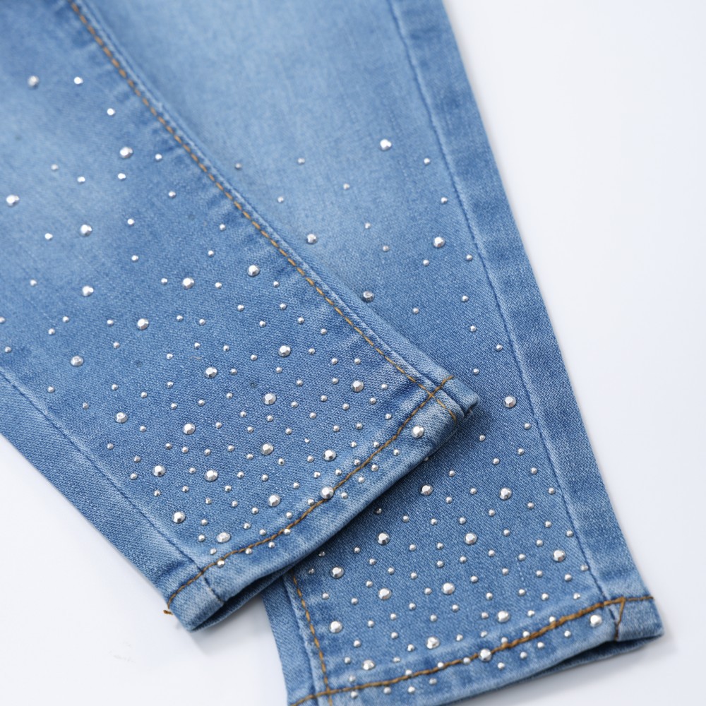 아동복 소녀 바지 2024 봄 새로운 어린이 핫 드릴링 와이드 레그 청바지 소녀의 세련된 유행 바지스토어 가기