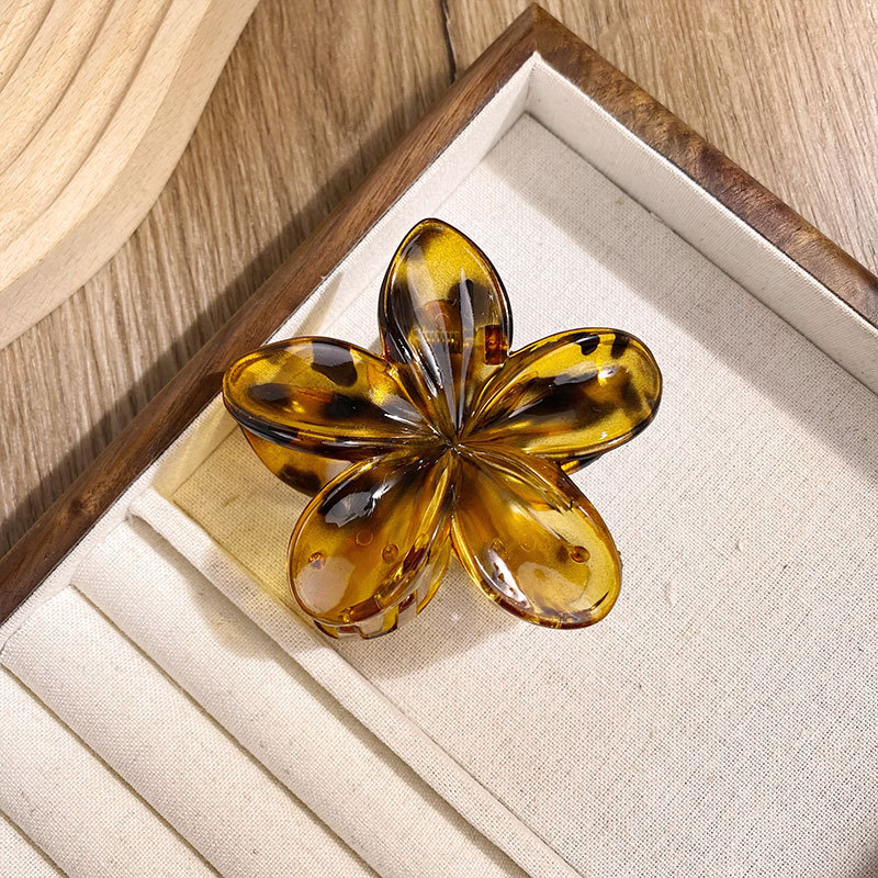 여성을위한 새로운 레오파드 플라 노 꽃 클램프 한국 인 우아한 꽃 헤어 클립 펄 페인트 헤어 트릭 상어 클립 헤어 액세서리