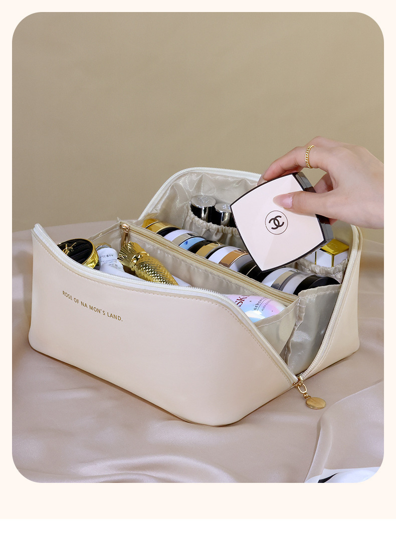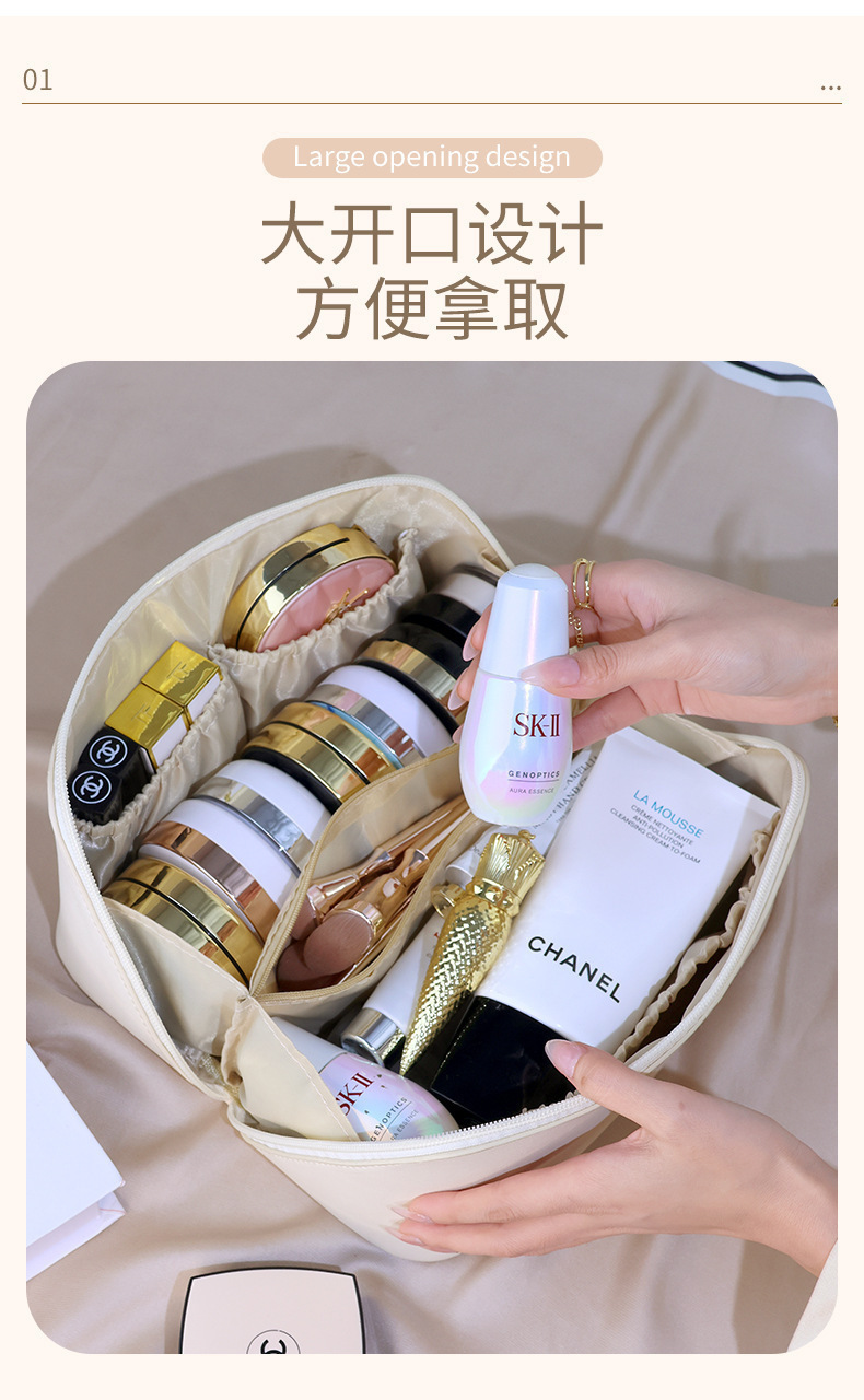 새로운 PU 화장품 가방 하이 엔드 느낌 대용량 베개 가방 여행 저장 가방 휴대용 휴대용 저장 가방 도매스토어 가기