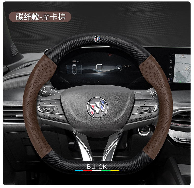 • 라운드/탄소섬유 가죽-모카브라운-뷰익 로고