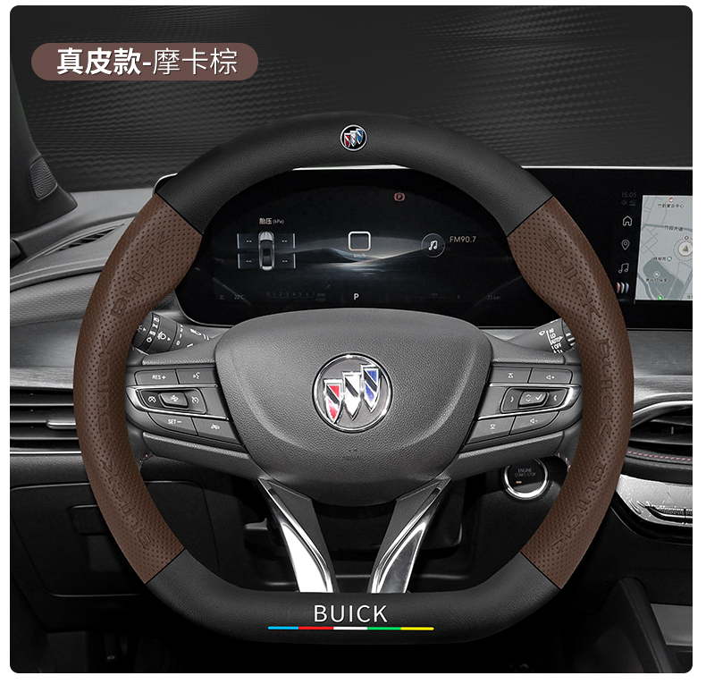 • D자형/탄소섬유가죽-모카브라운-뷰익라벨