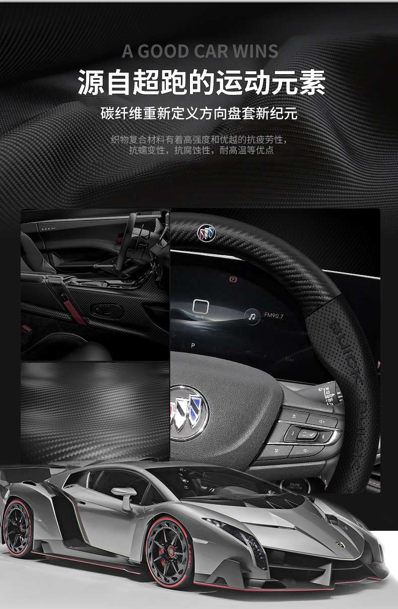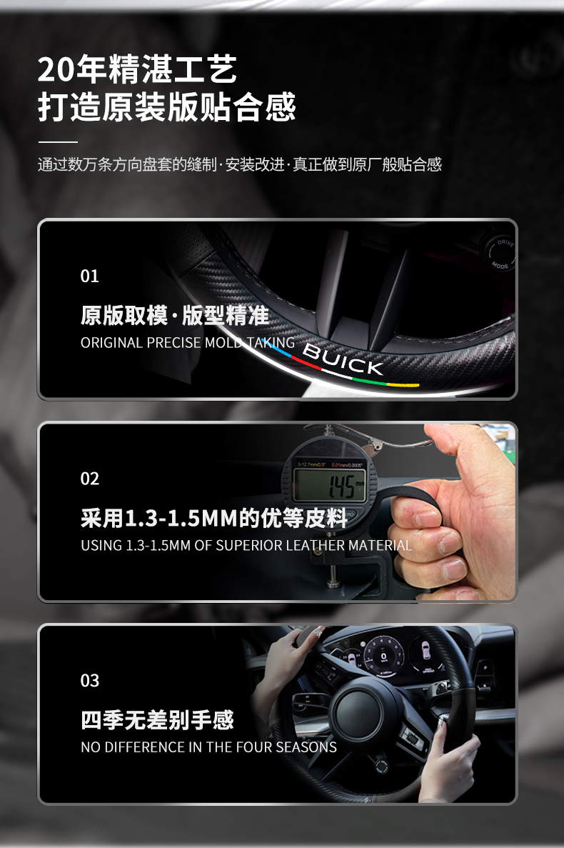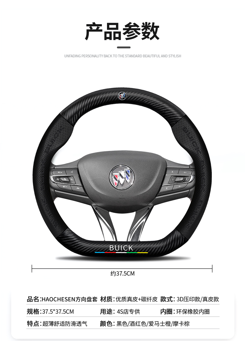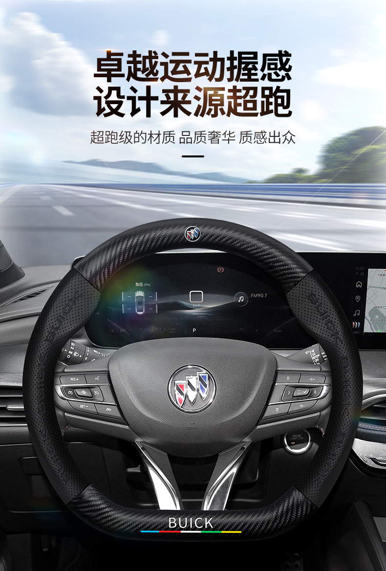 Buick Weilang PRO 스티어링 휠 커버 15-23 탄소 섬유 미끄럼 방지 땀 흡수 손 재봉에 적합 사계절스토어 가기