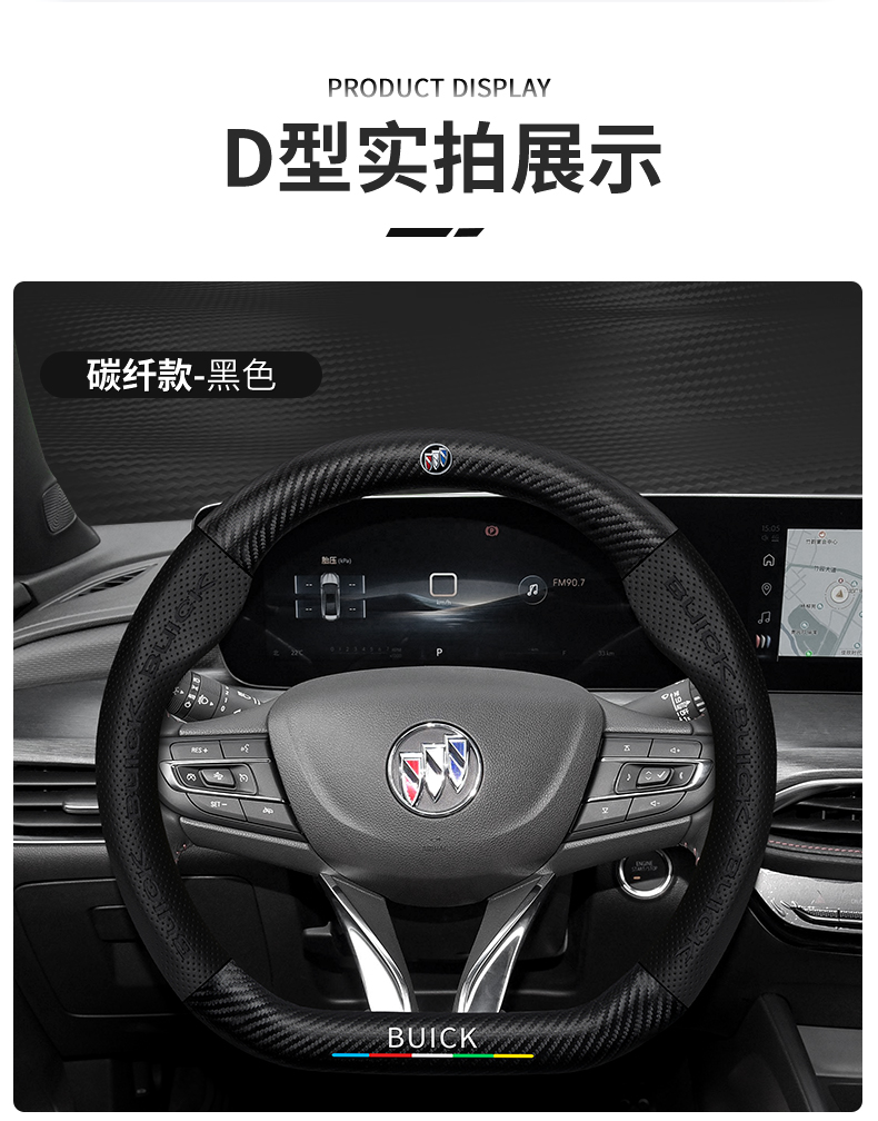 • D자형/탄소섬유 가죽-블랙-뷰익 로고