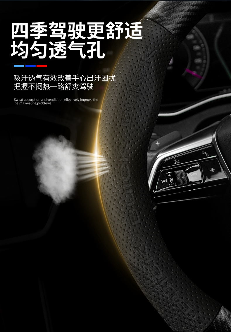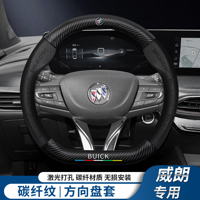 Buick Weilang PRO 스티어링 휠 커버 15-23 탄소 섬유 미끄럼 방지 땀 흡수 손 재봉에 적합 사계절
