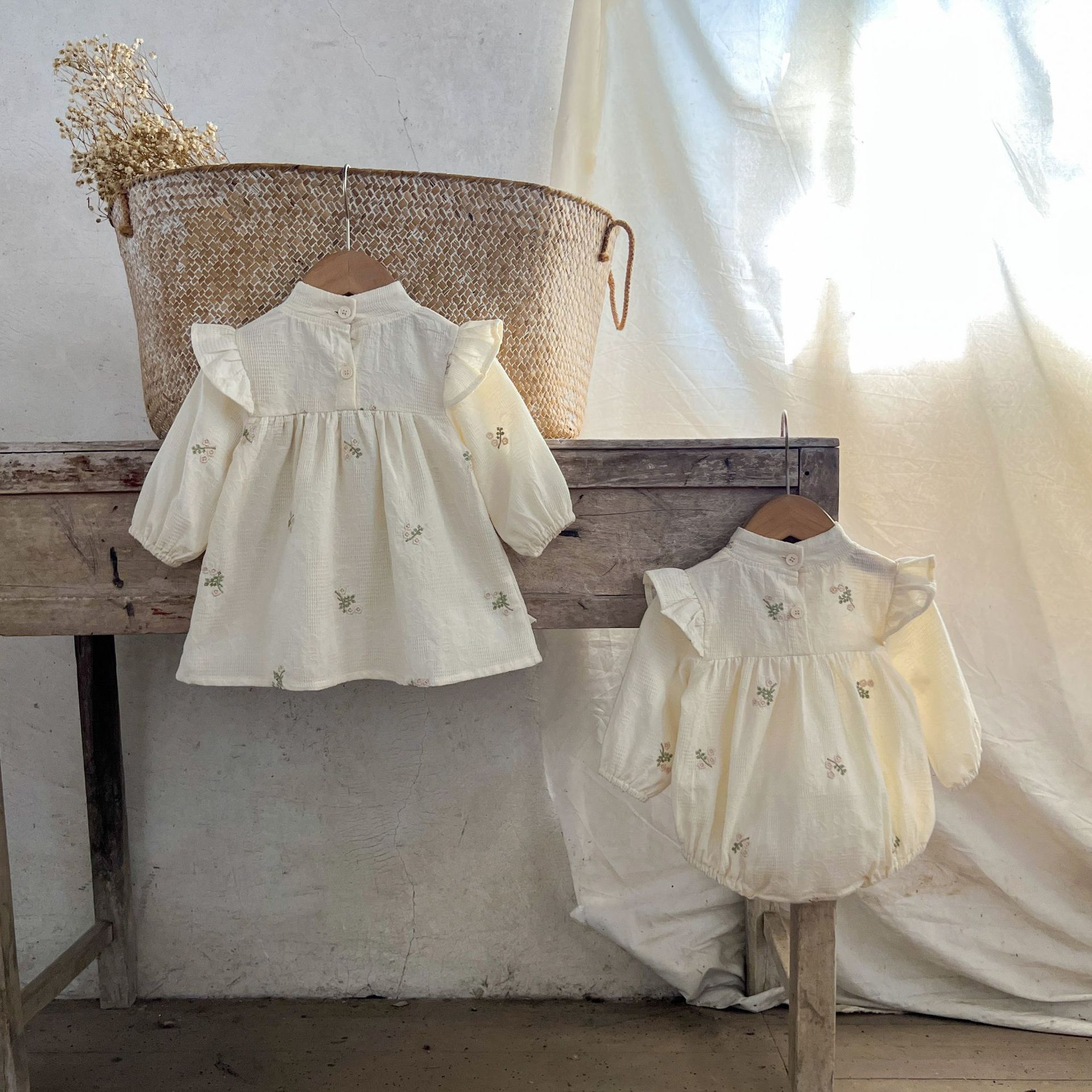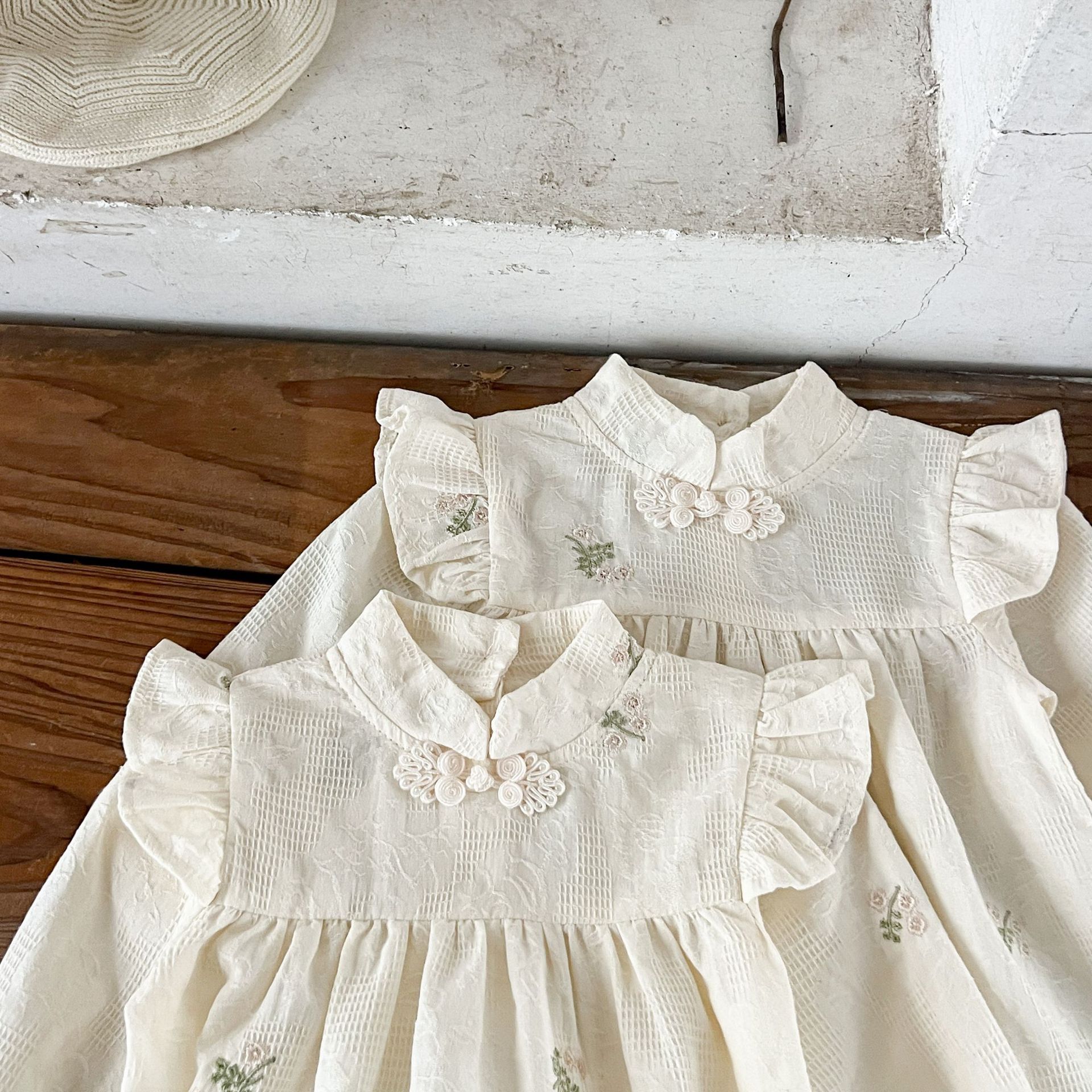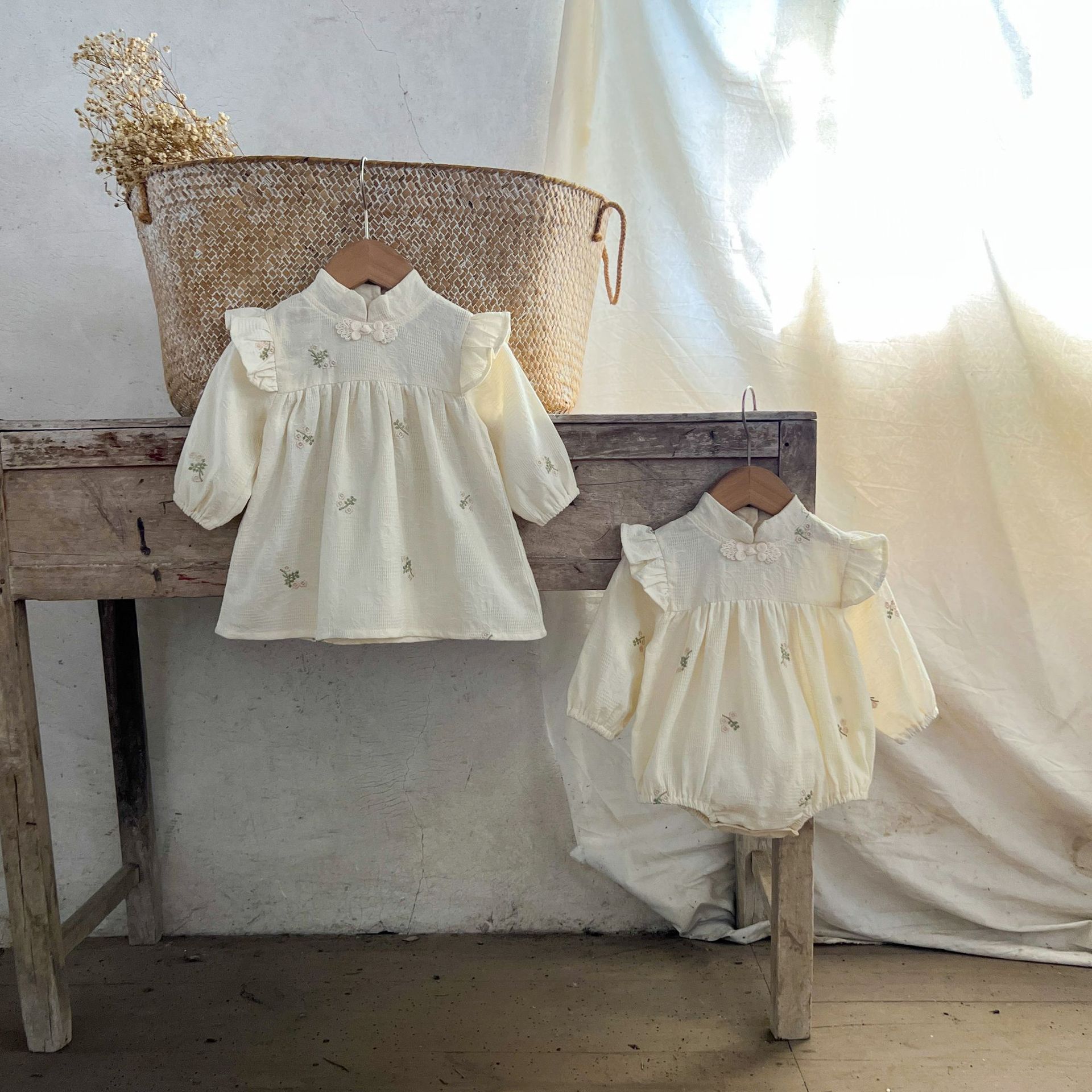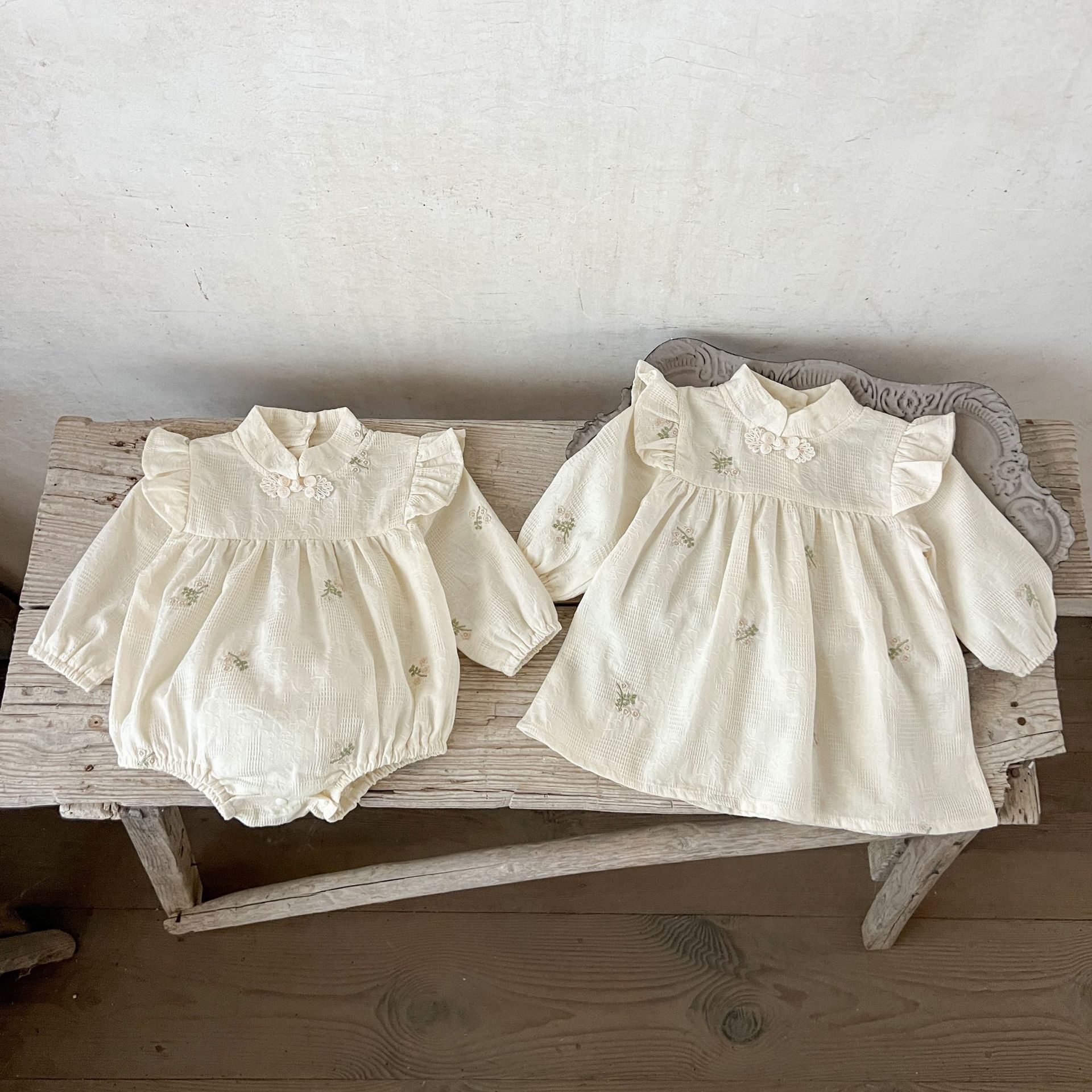 Ins Korean Style Girl's Baby's Cotton 자수 중국식 Hayi 원피스 아기와 유아의 한푸 스커트 자매 종수트스토어 가기