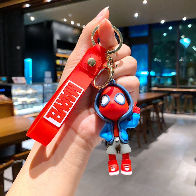 새로운 만화 어벤져 스 얼라이언스 키 체인 창조적 인 거미 아이언 맨 데드 풀 인형 가방 펜던트 작은 선물