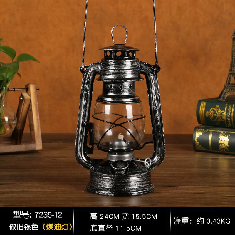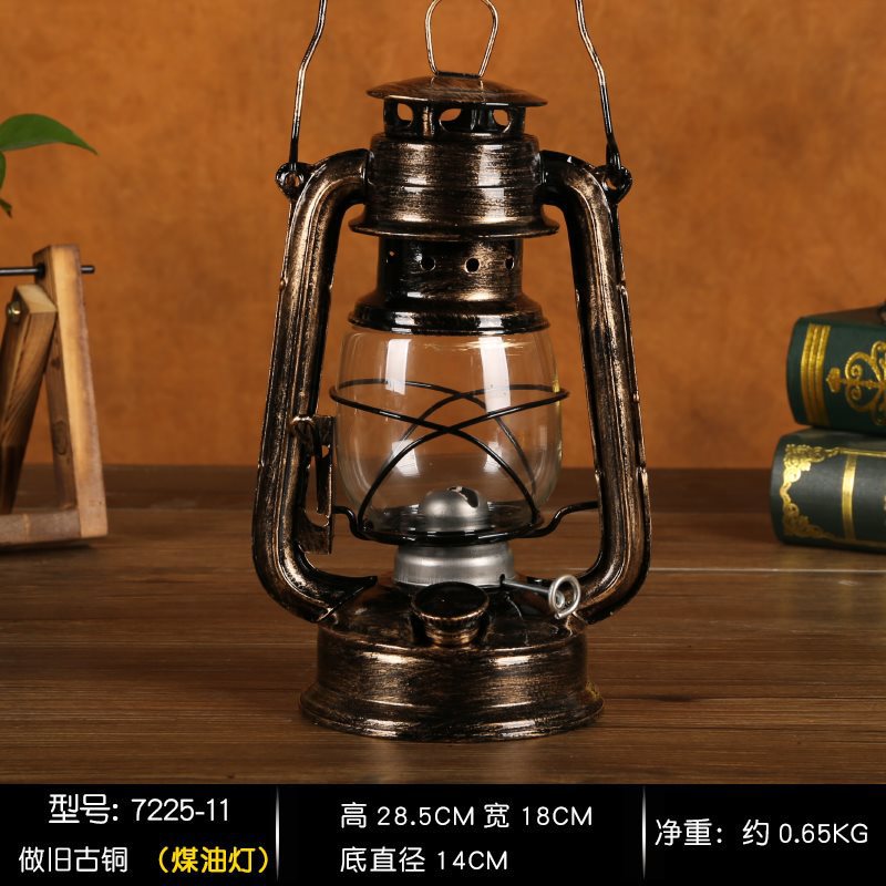 빈티지 복고풍 등유 램프 장식품 향수 오래된 물건 골동품 랜턴 휴대용 야외 캠핑 램프 장식 소품스토어 가기