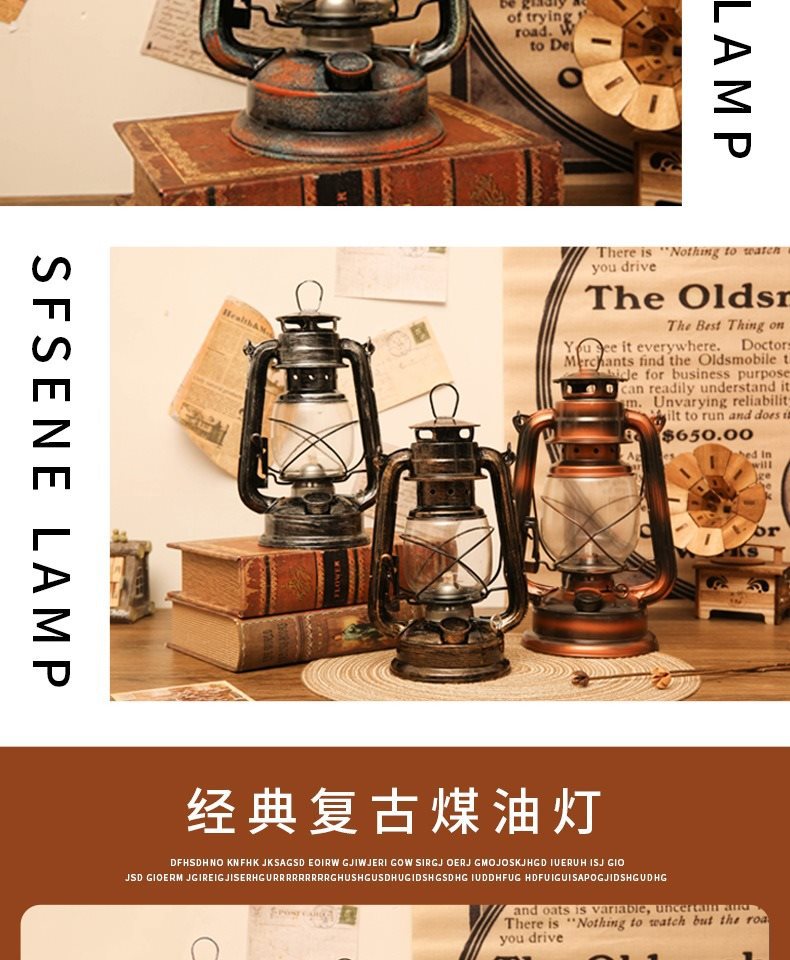 빈티지 복고풍 등유 램프 장식품 향수 오래된 물건 골동품 랜턴 휴대용 야외 캠핑 램프 장식 소품