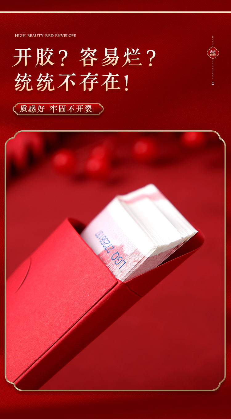 • 100위안(10개들이 팩)을 반으로 접으면 500위안을 담을 수 있습니다.