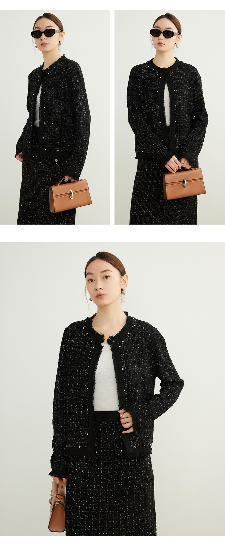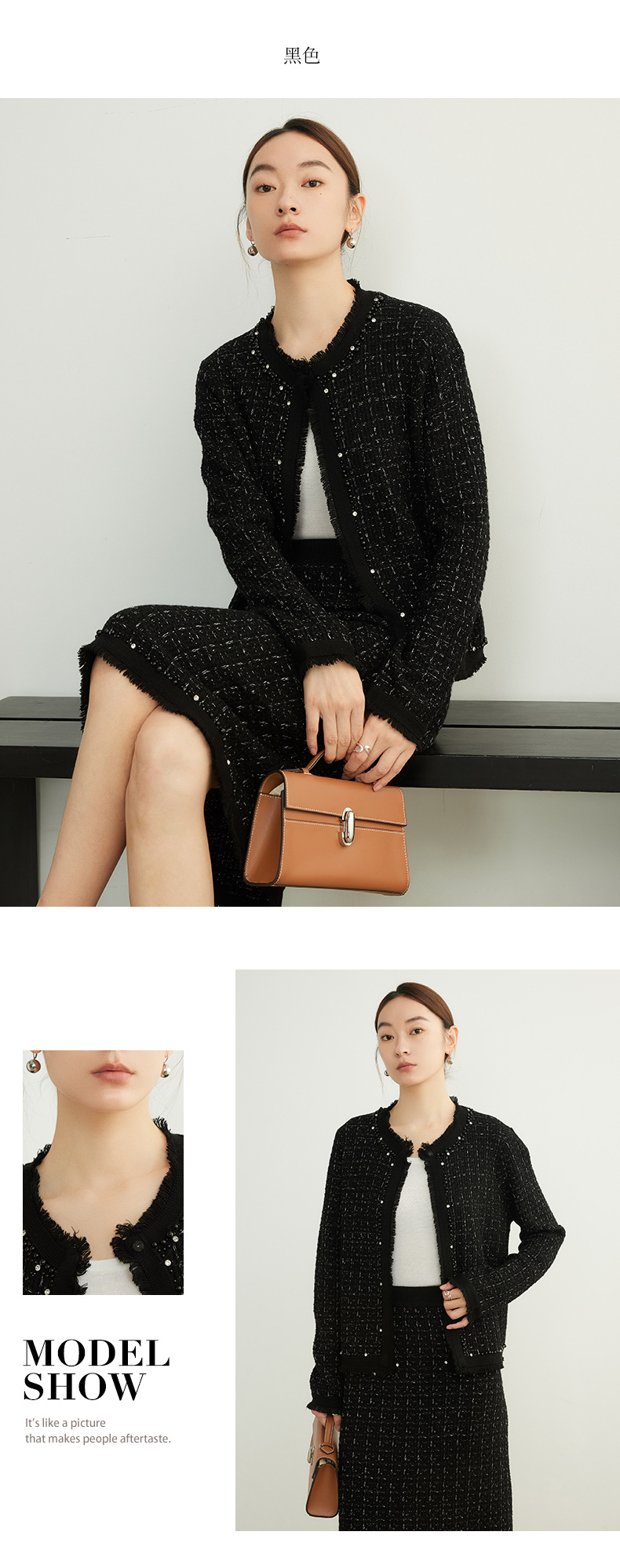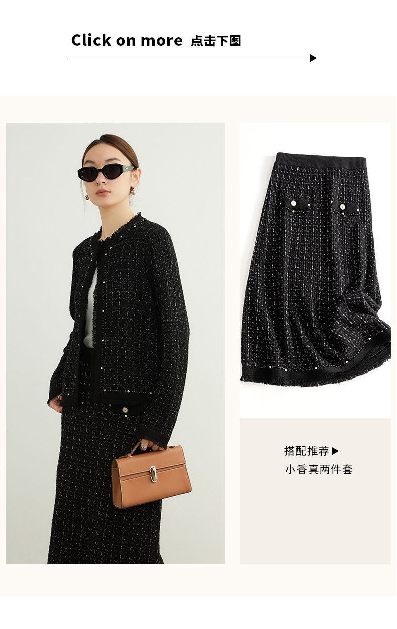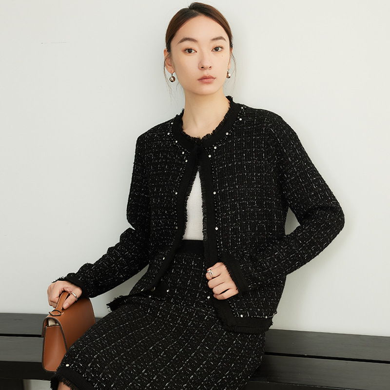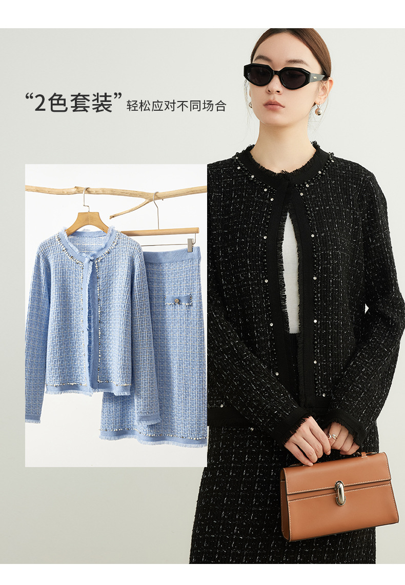 고급스러운 심플 패션 *샤오샹* 스타일 정장 스커트 여성용 25 초가을 라이트 럭셔리 크리스탈 울 투피스 세트 가디건스토어 가기