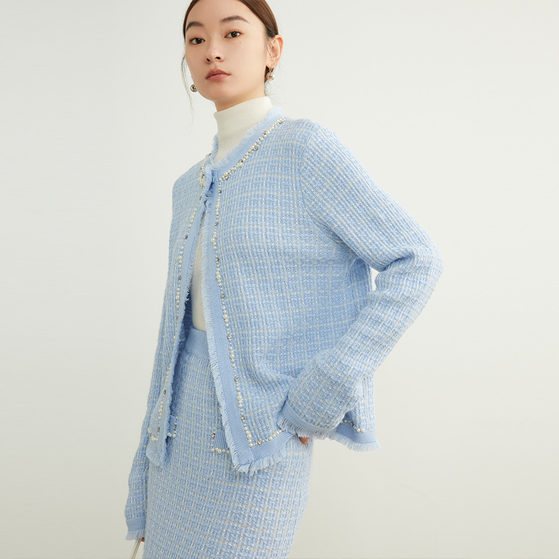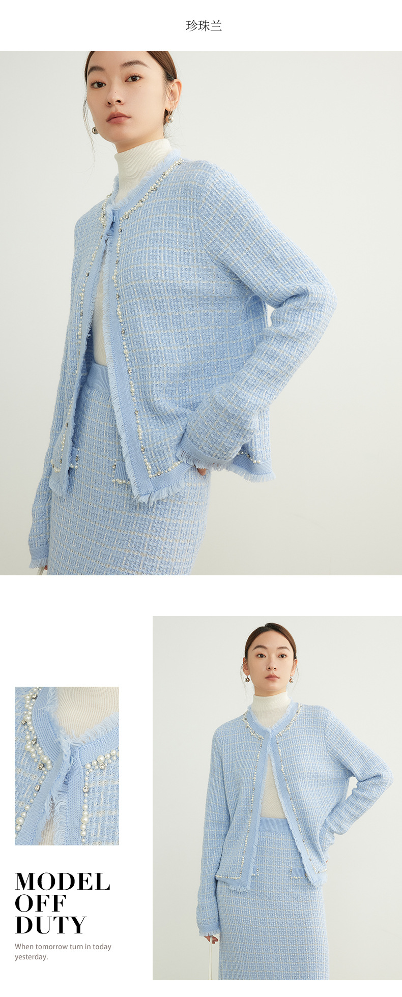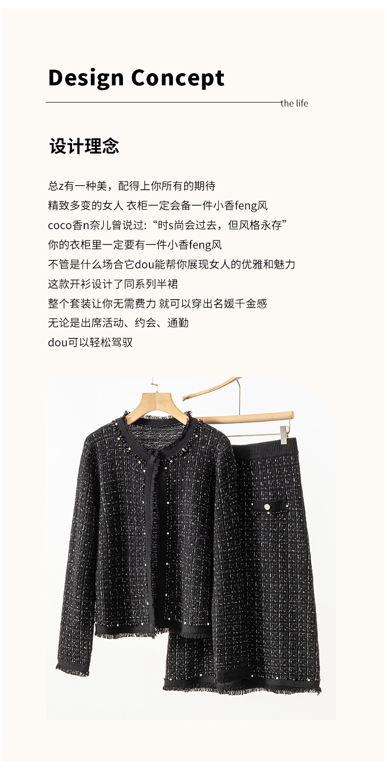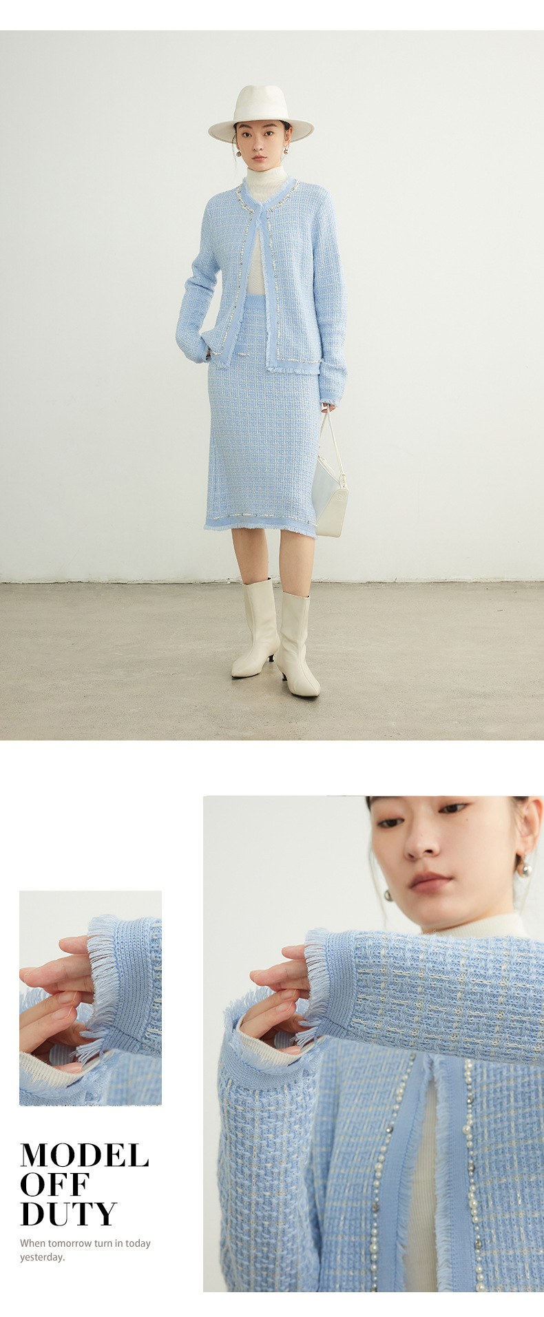 고급스러운 심플 패션 *샤오샹* 스타일 정장 스커트 여성용 25 초가을 라이트 럭셔리 크리스탈 울 투피스 세트 가디건스토어 가기