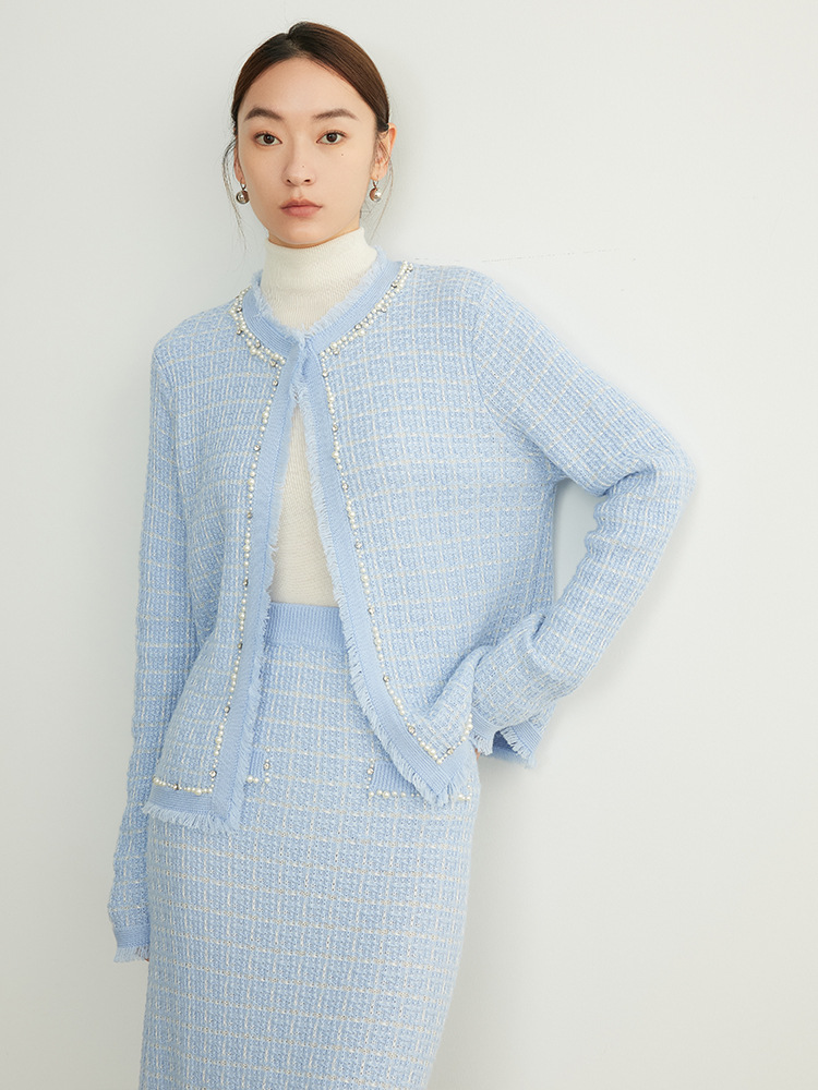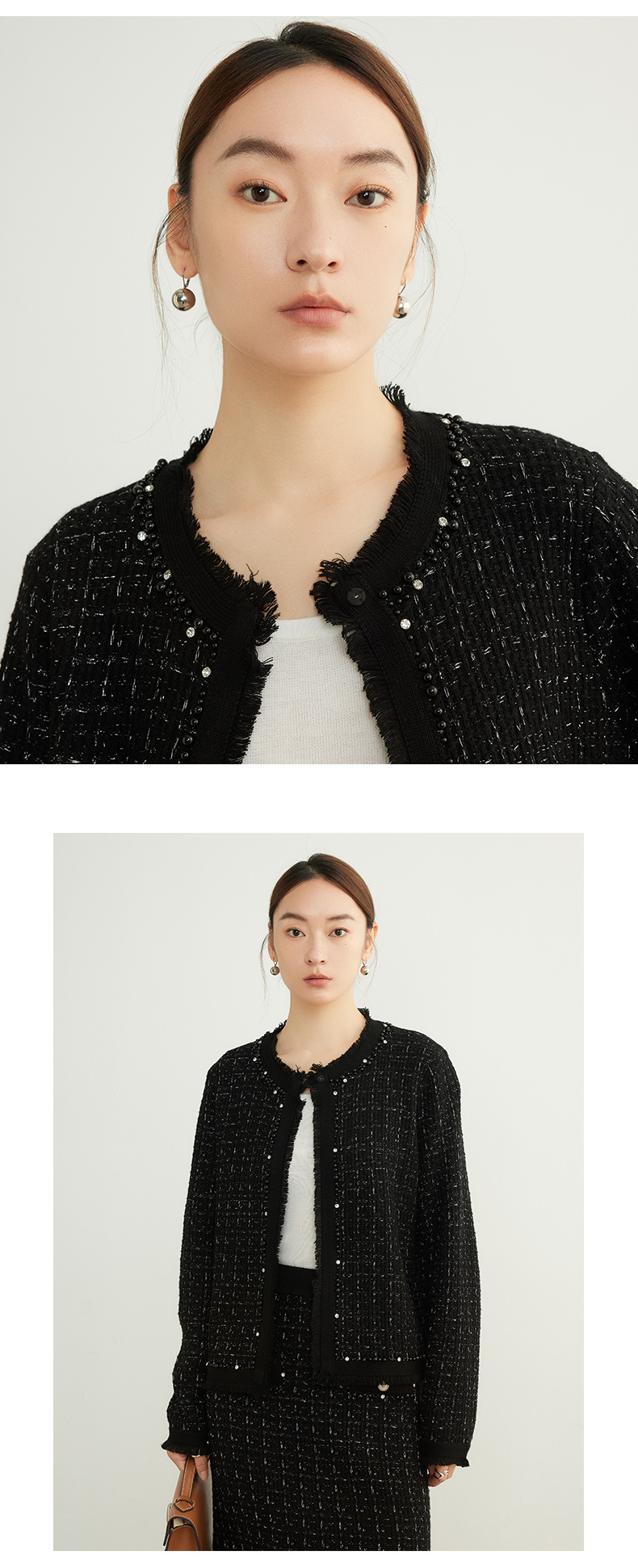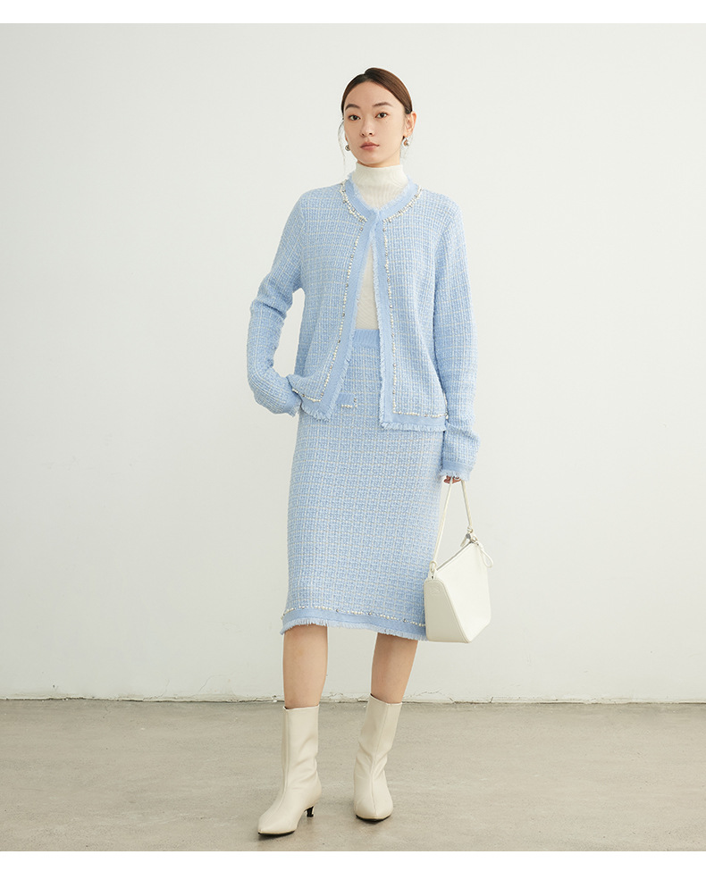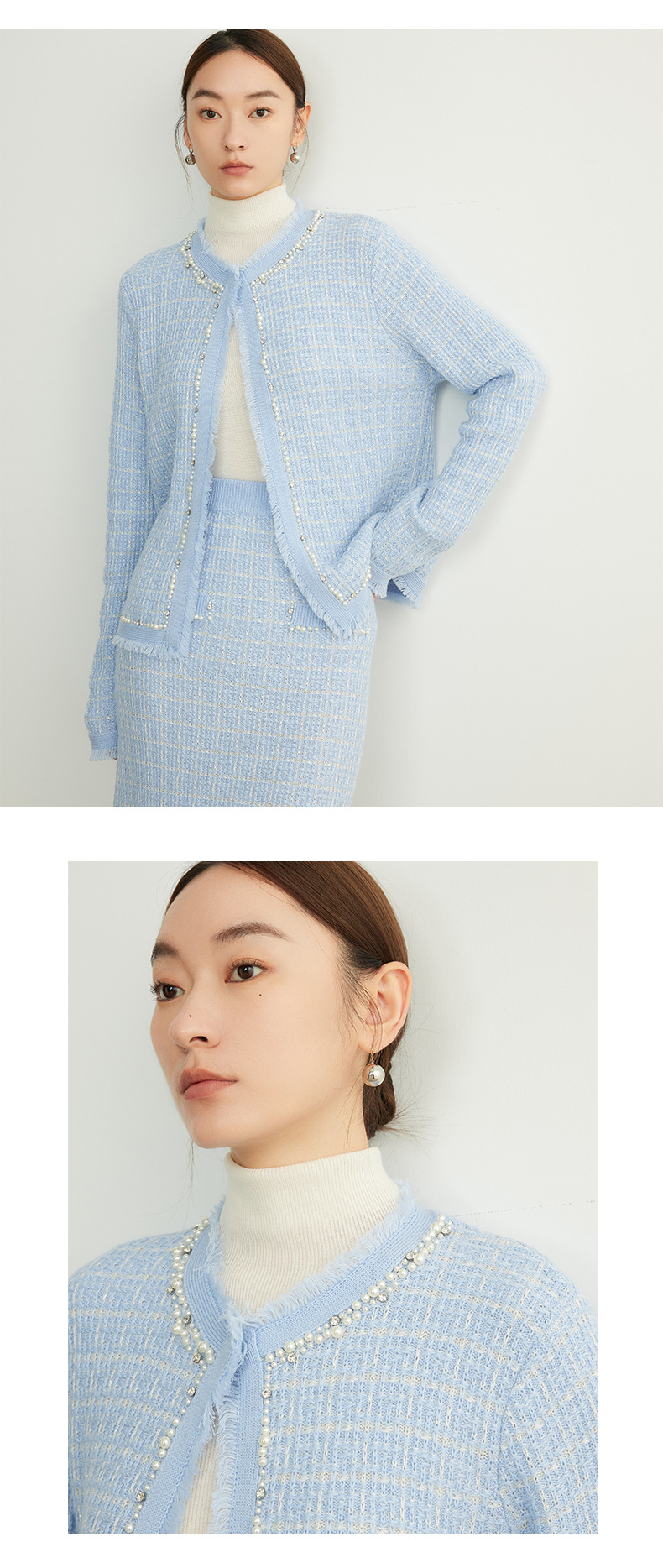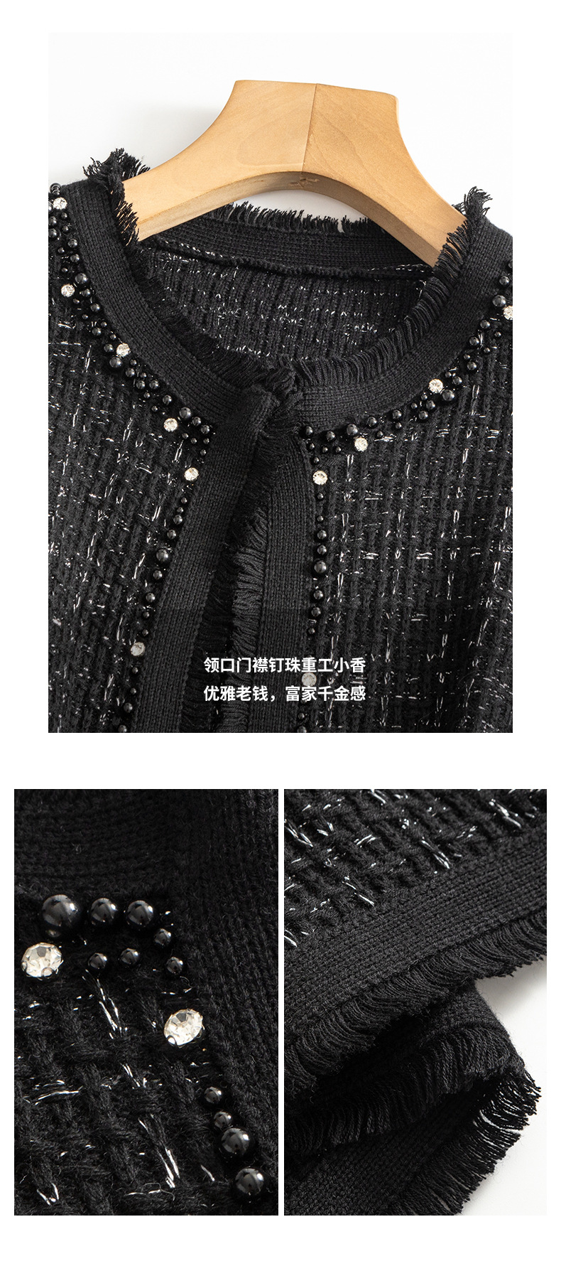고급스러운 심플 패션 *샤오샹* 스타일 정장 스커트 여성용 25 초가을 라이트 럭셔리 크리스탈 울 투피스 세트 가디건스토어 가기
