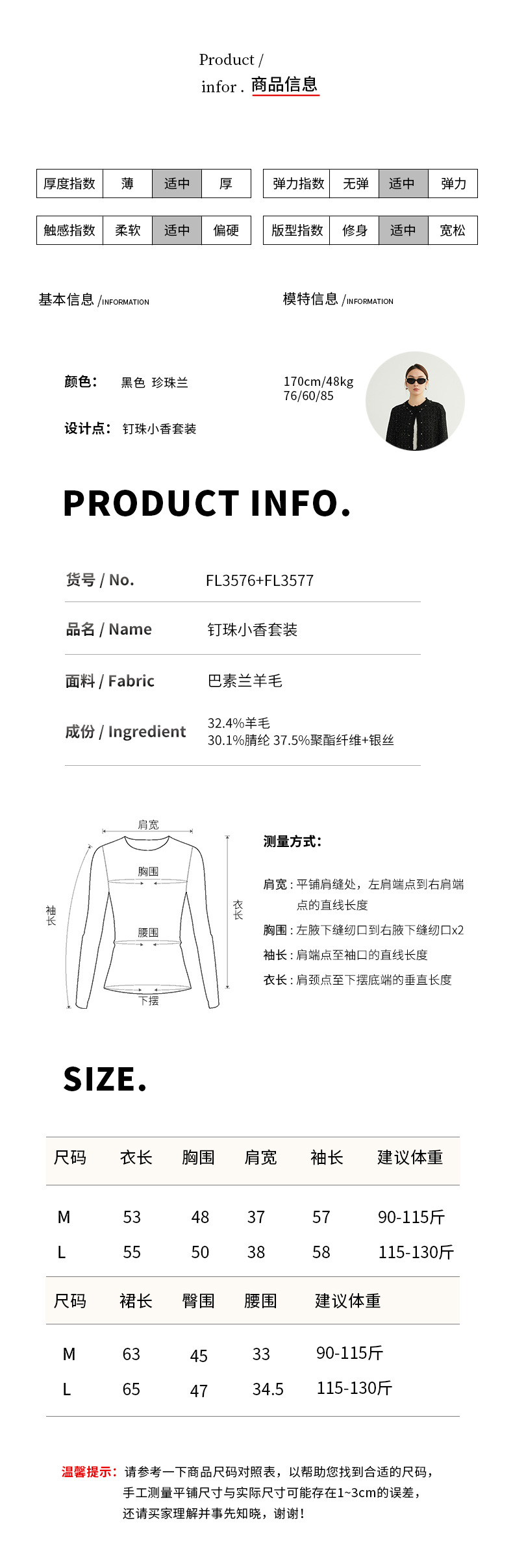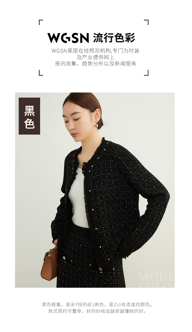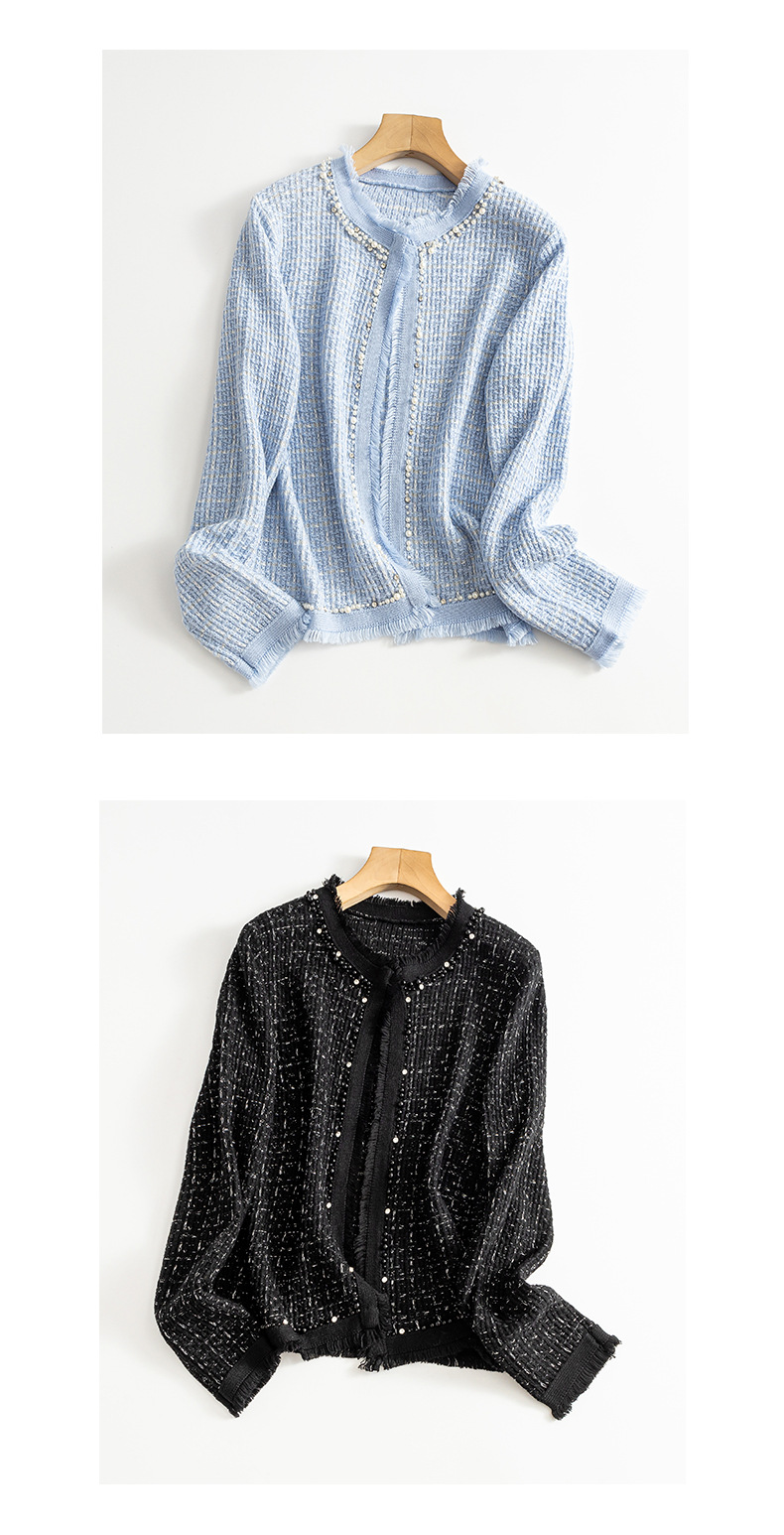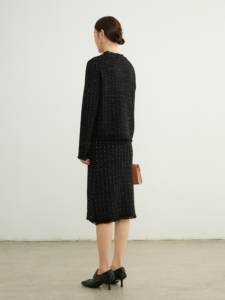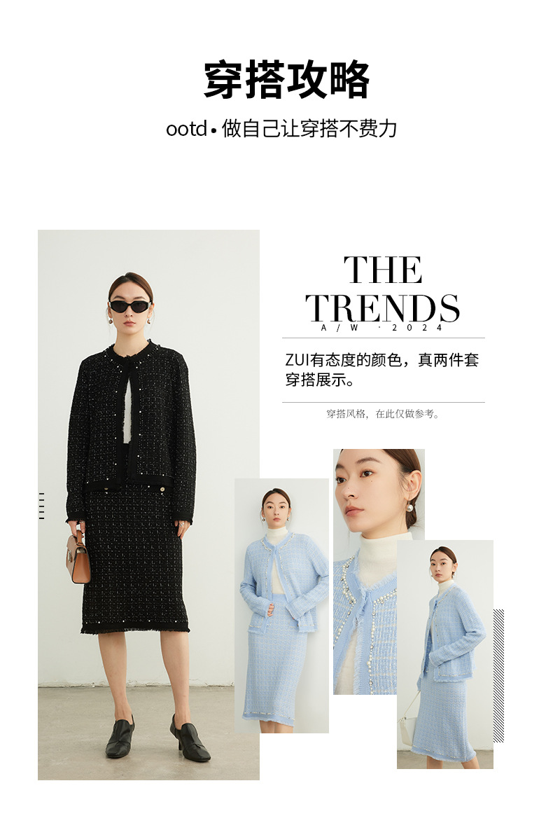 고급스러운 심플 패션 *샤오샹* 스타일 정장 스커트 여성용 25 초가을 라이트 럭셔리 크리스탈 울 투피스 세트 가디건스토어 가기