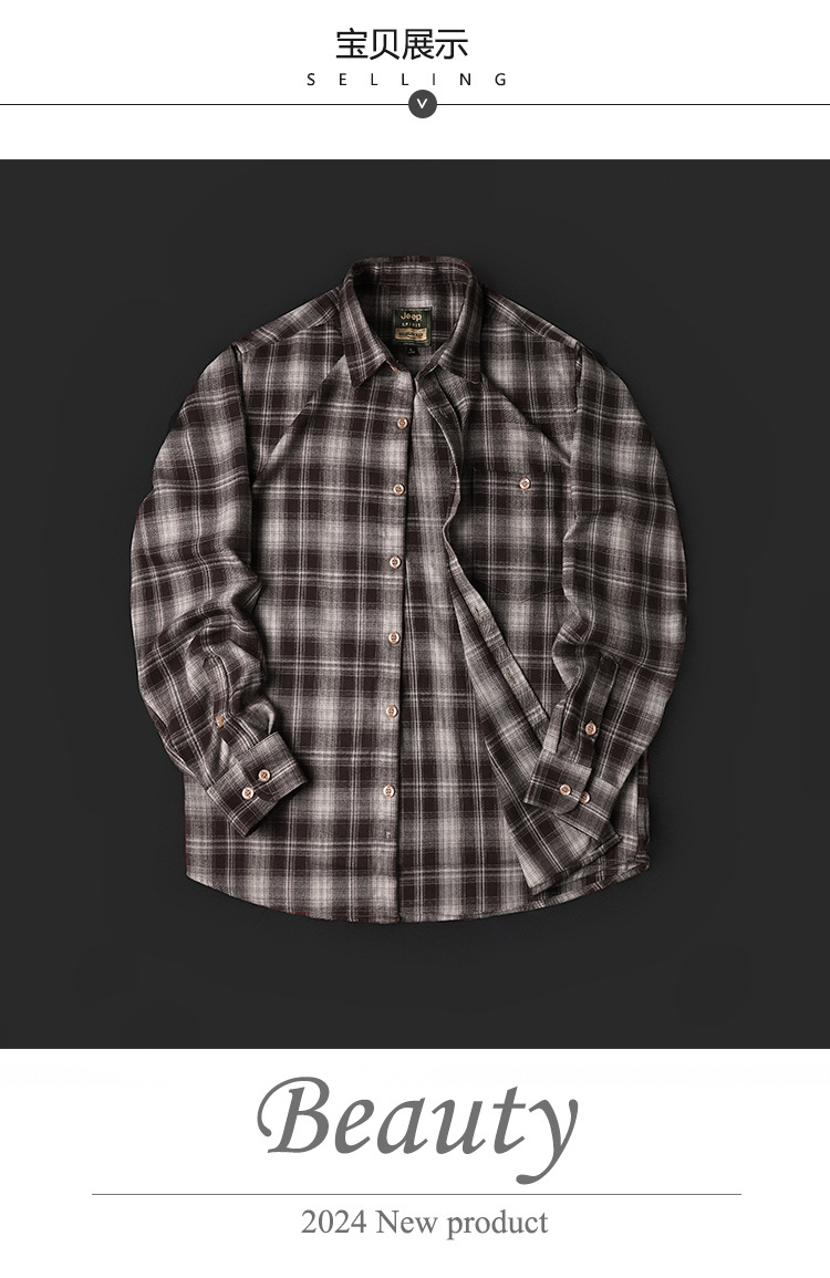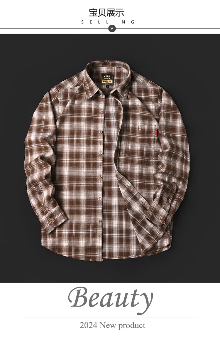 가을과 겨울 브랜드 남성용 옷깃 셔츠 느슨한 패션 체크 캐주얼 탑 버튼 긴 소매 두꺼운 J2079스토어 가기