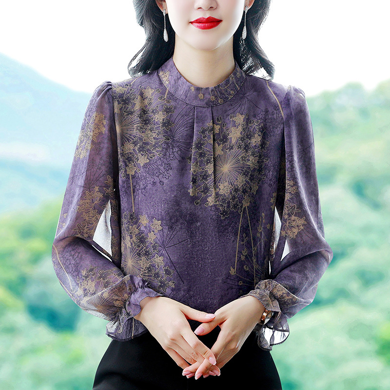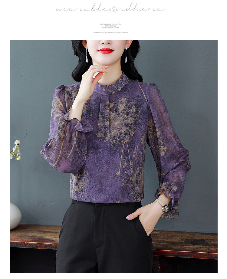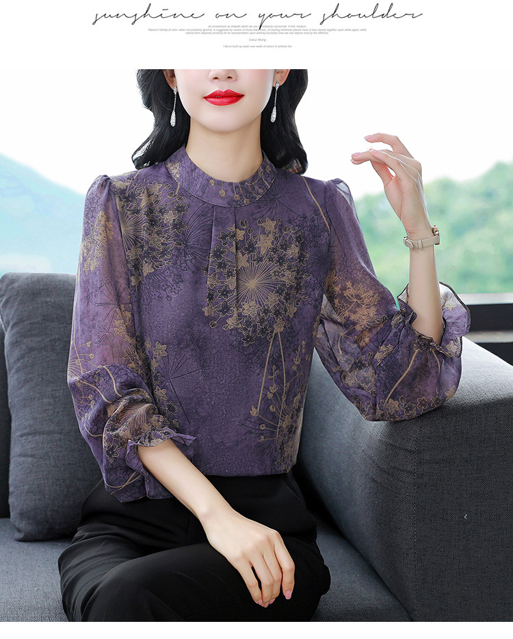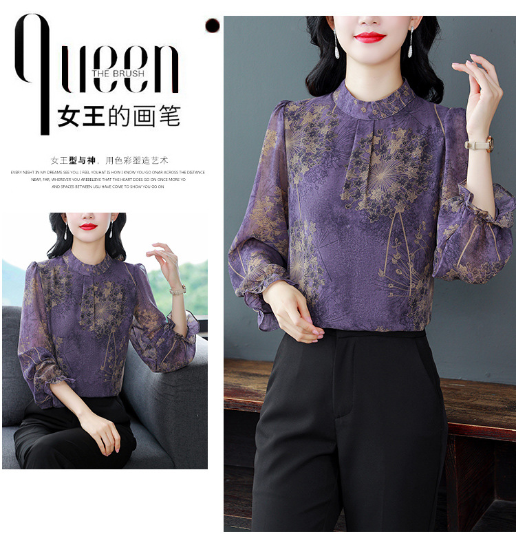 리얼 샷 라이트 럭셔리 패션 인쇄 꽃 셔츠 여성의 여름 새로운 우아한 서양 스타일 슬리밍 긴 소매 셔츠스토어 가기