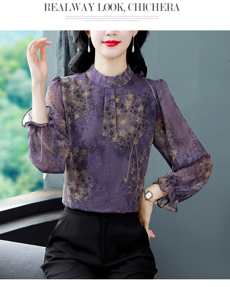 리얼 샷 라이트 럭셔리 패션 인쇄 꽃 셔츠 여성의 여름 새로운 우아한 서양 스타일 슬리밍 긴 소매 셔츠