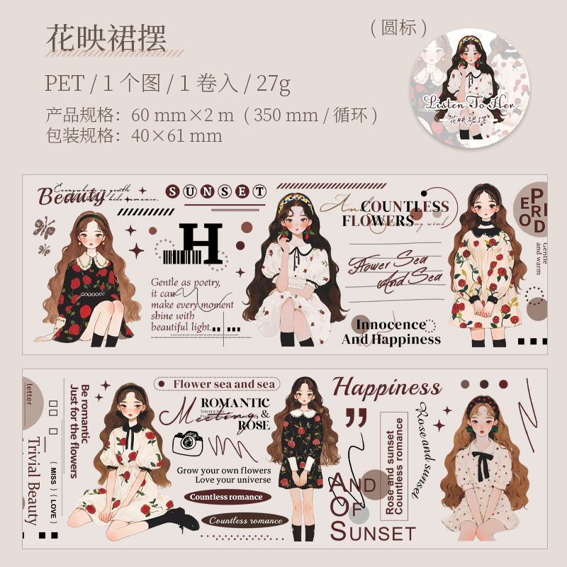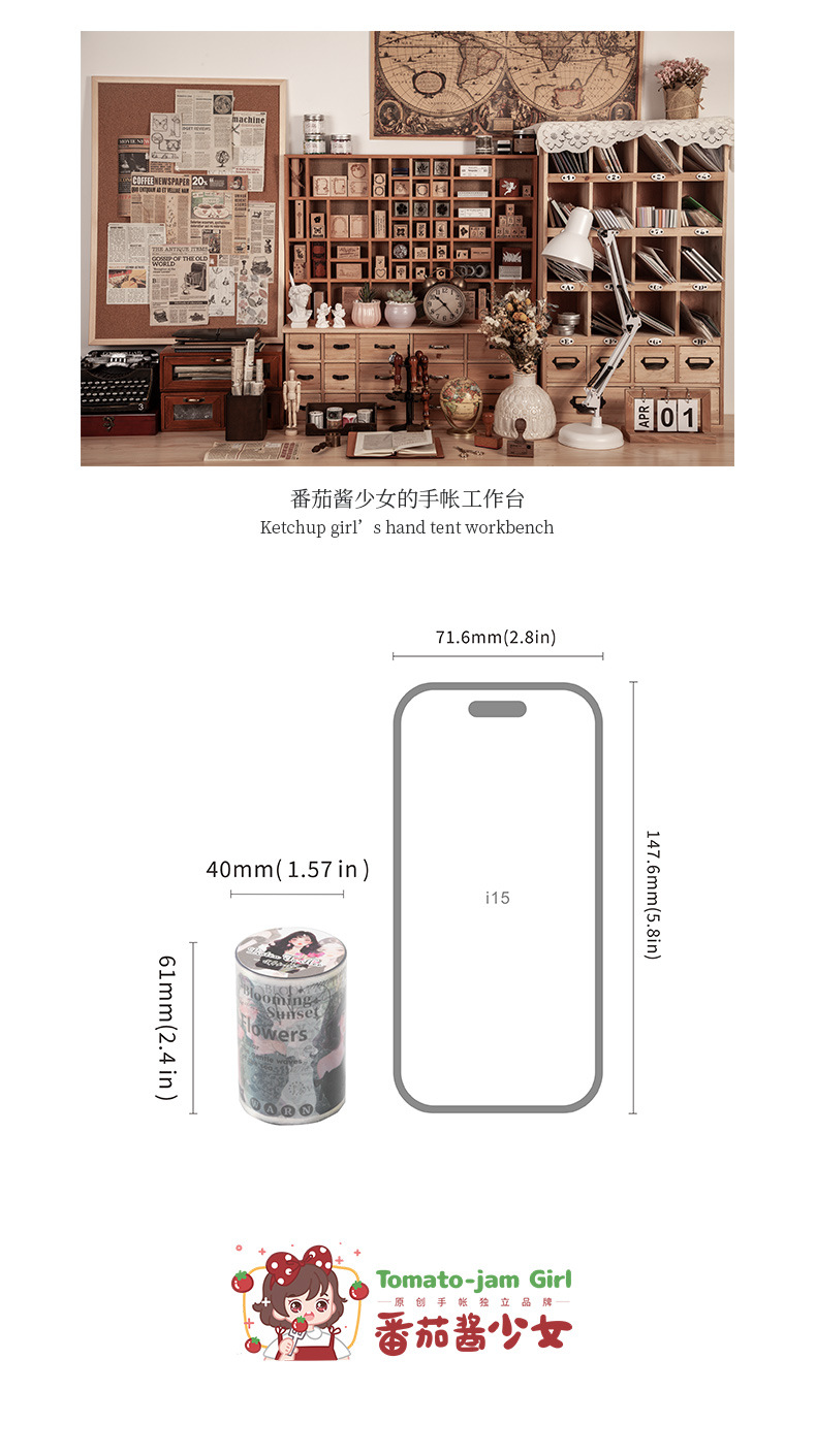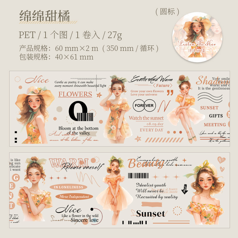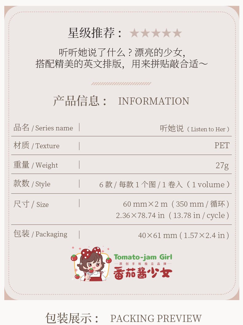 토마토 소스 소녀 캐릭터 테마 테이프는 그녀의 시리즈 PET 손 계정 소재 장식 스티커 6 듣습니다.스토어 가기