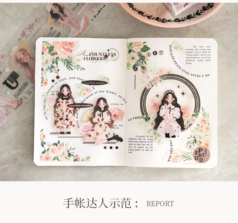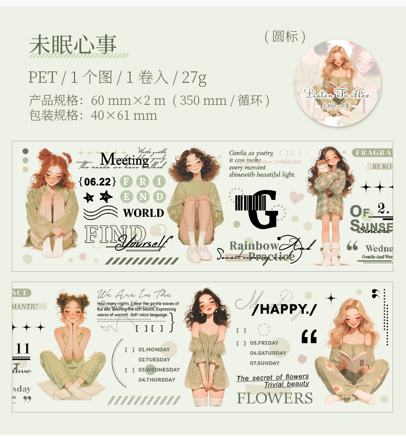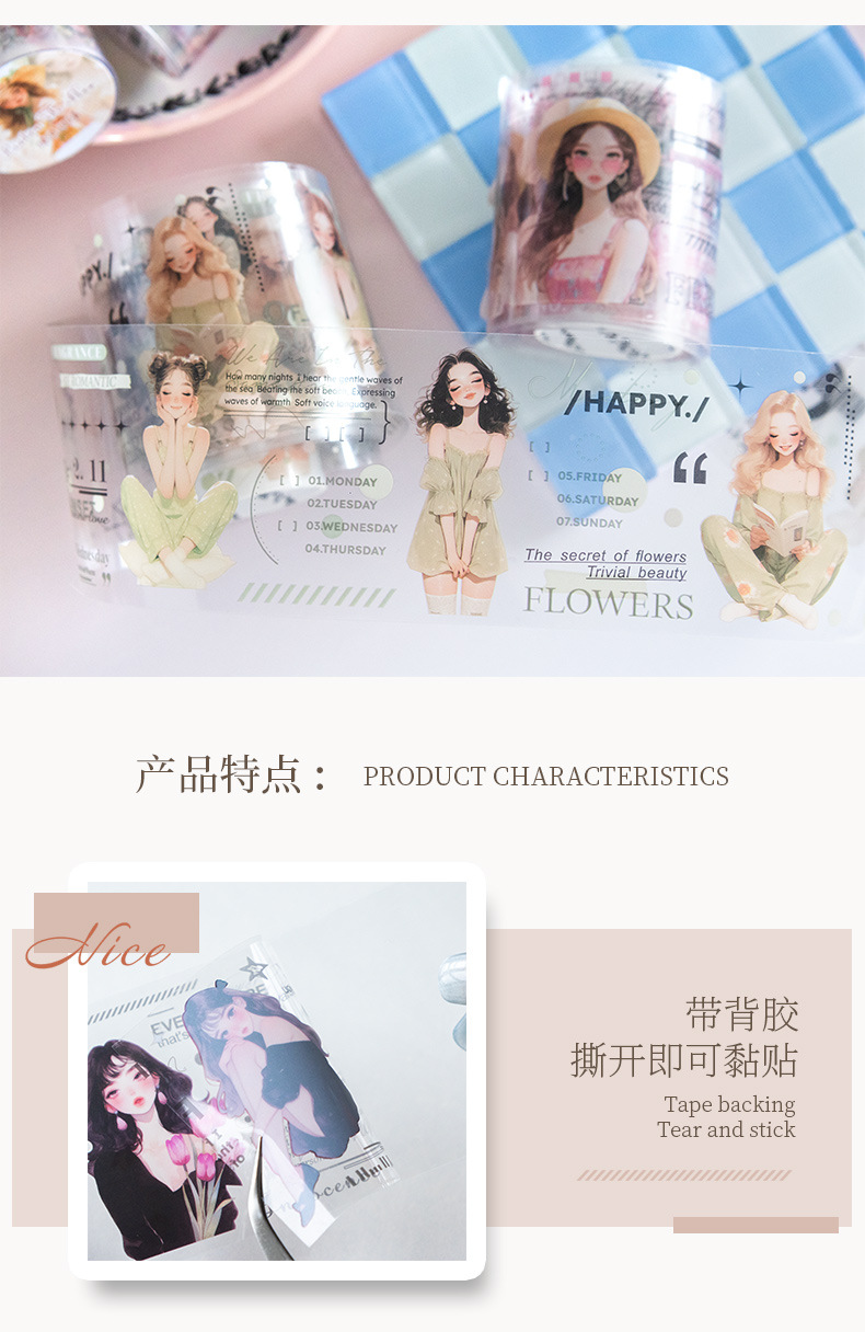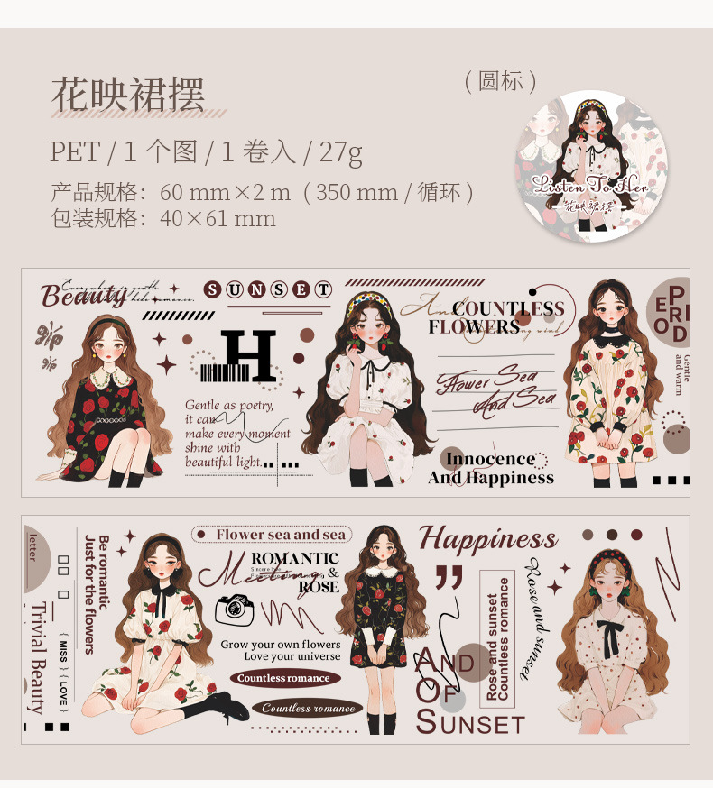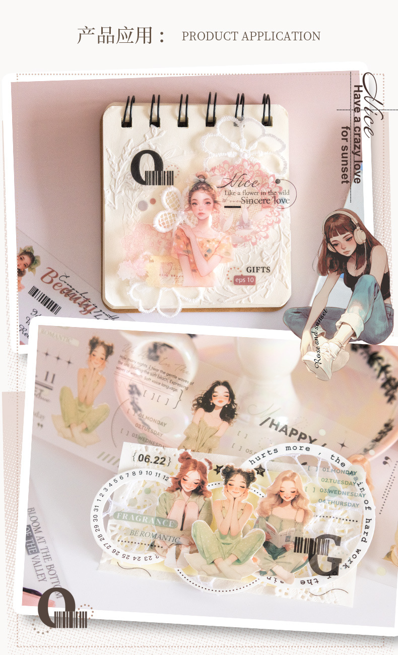 토마토 소스 소녀 캐릭터 테마 테이프는 그녀의 시리즈 PET 손 계정 소재 장식 스티커 6 듣습니다.스토어 가기