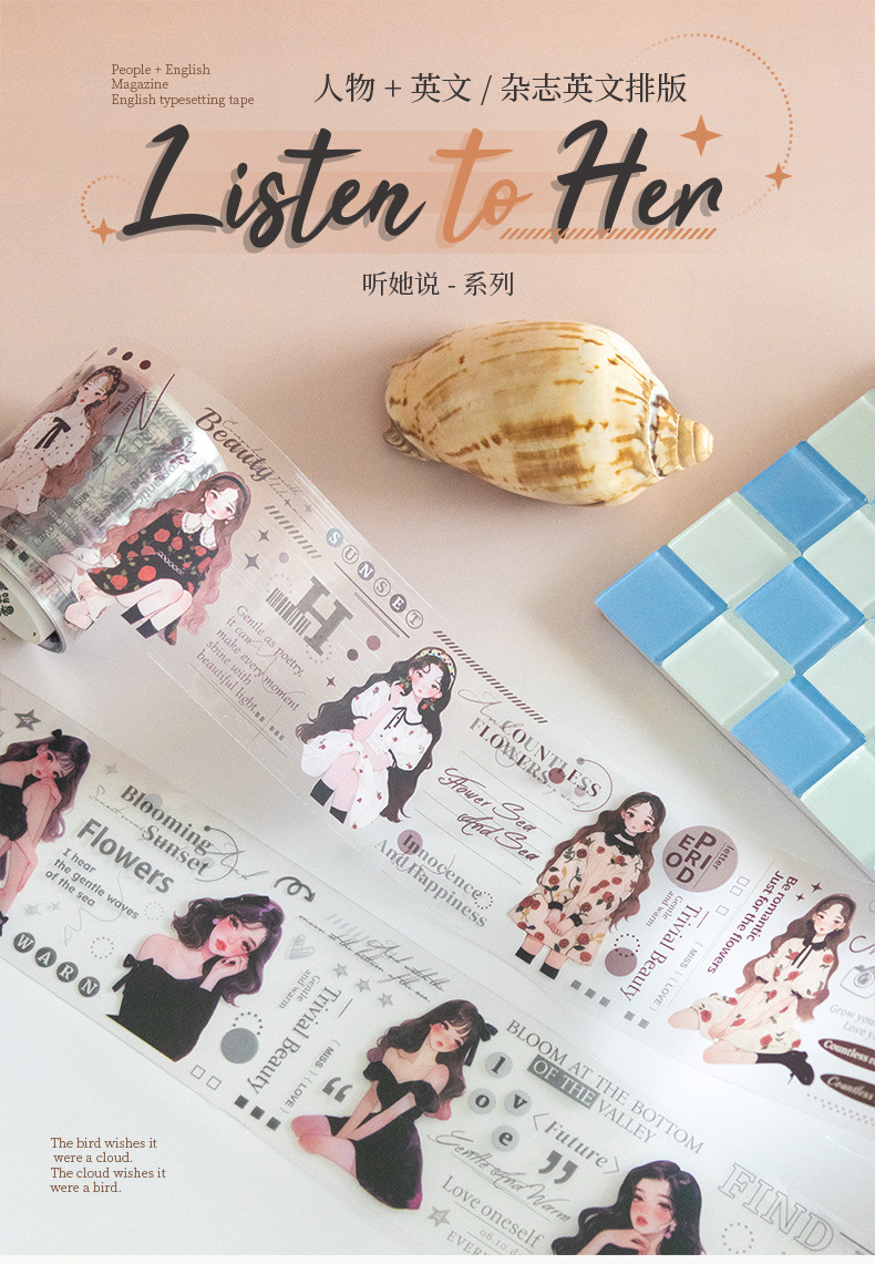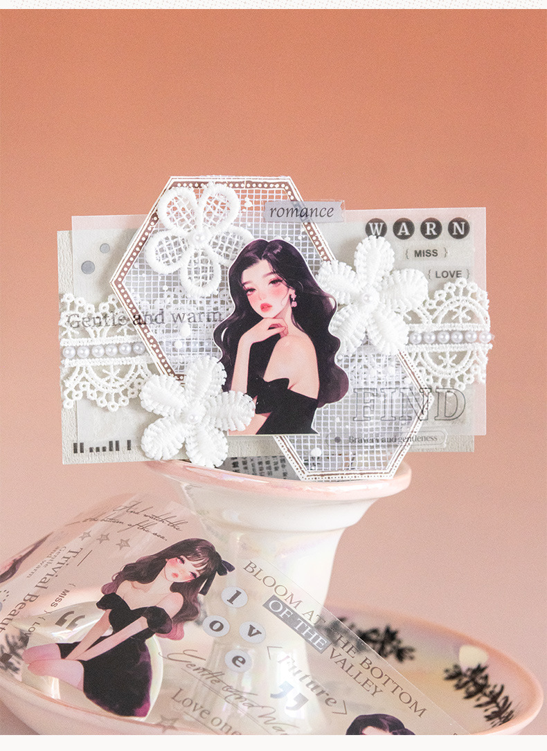 토마토 소스 소녀 캐릭터 테마 테이프는 그녀의 시리즈 PET 손 계정 소재 장식 스티커 6 듣습니다.