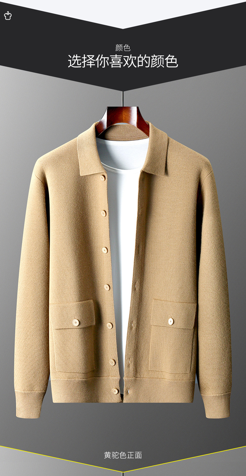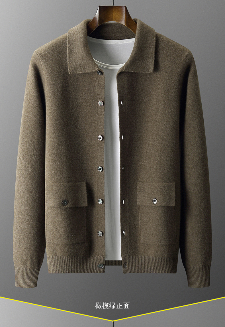 가을과 겨울 2023 새로운 사이핑 에어 레이어 폴로 칼라 울 카디건 남자 버클 울 니트 카디건