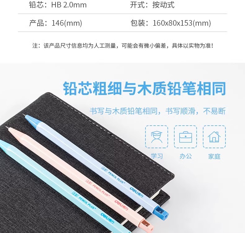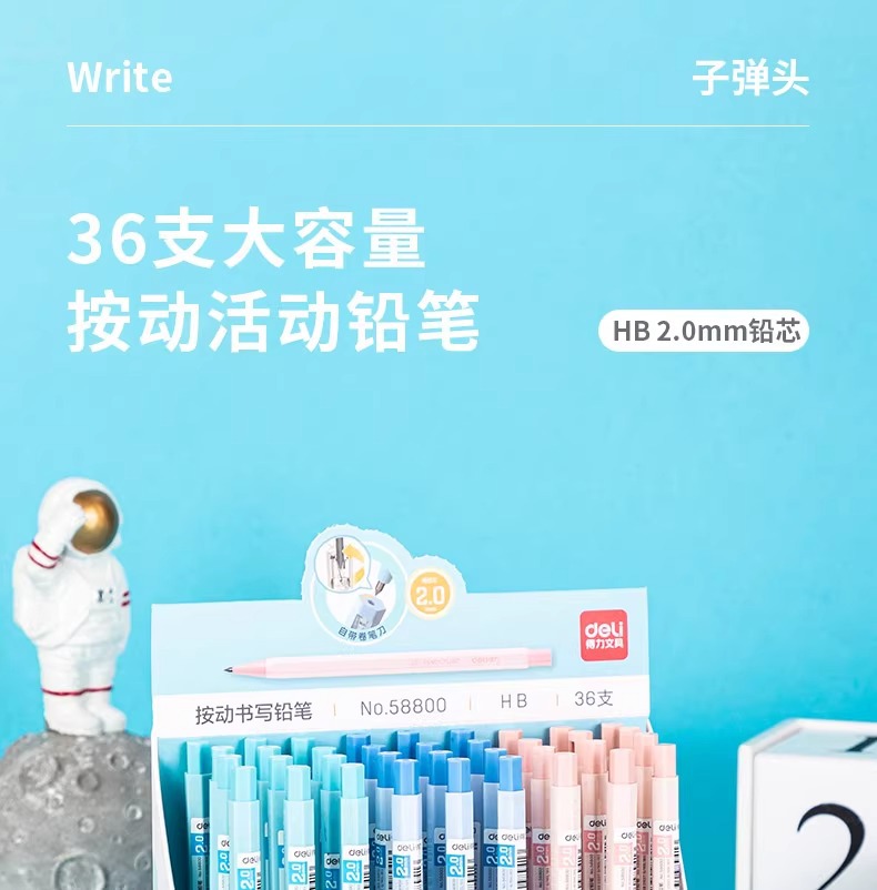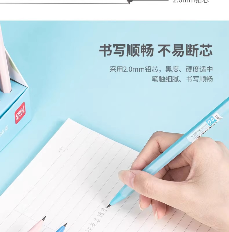 델리 58800 두꺼운 심 2.0 자동 연필 교체 가능한 심 2B/HB 시험용 연필 문구류