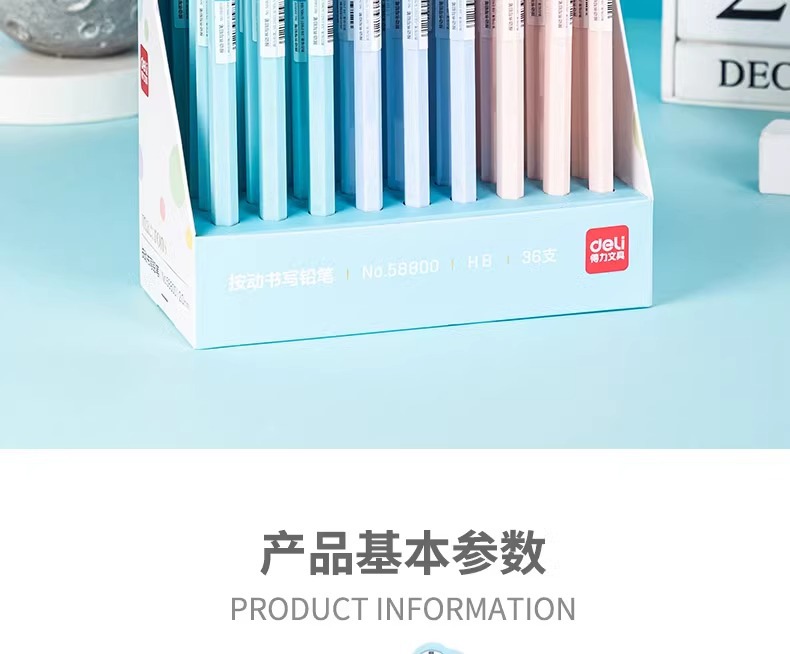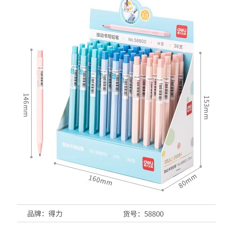 델리 58800 두꺼운 심 2.0 자동 연필 교체 가능한 심 2B/HB 시험용 연필 문구류스토어 가기