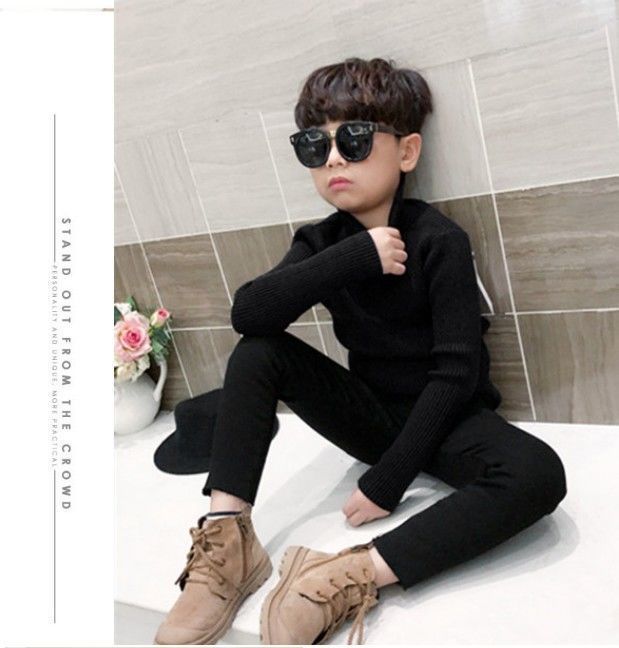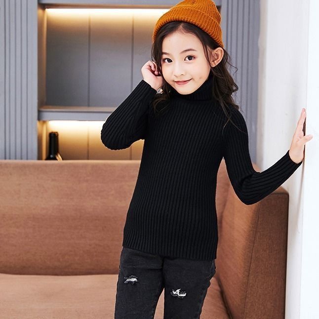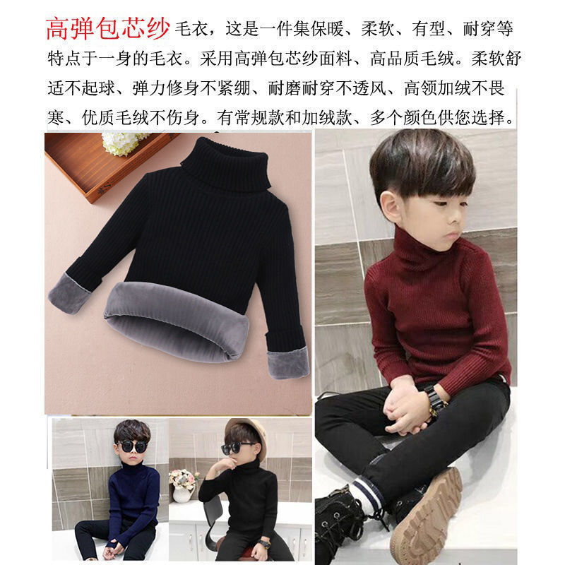 남학생과 여학생의 스웨터 풀오버 높은 칼라 가을 및 겨울 기모 두꺼운 아동복 아동용 스웨터베이스 셔츠스토어 가기