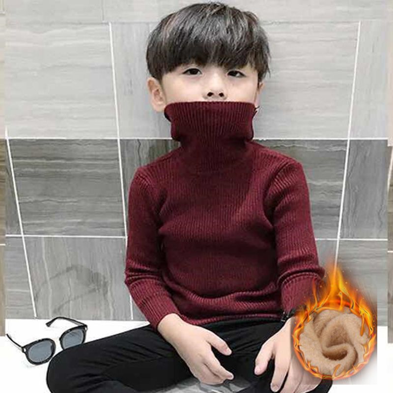 남학생과 여학생의 스웨터 풀오버 높은 칼라 가을 및 겨울 기모 두꺼운 아동복 아동용 스웨터베이스 셔츠