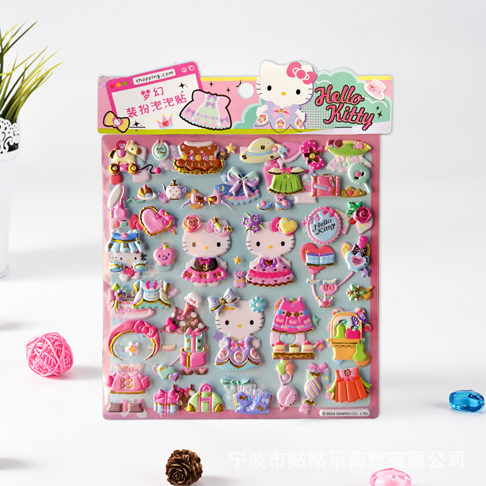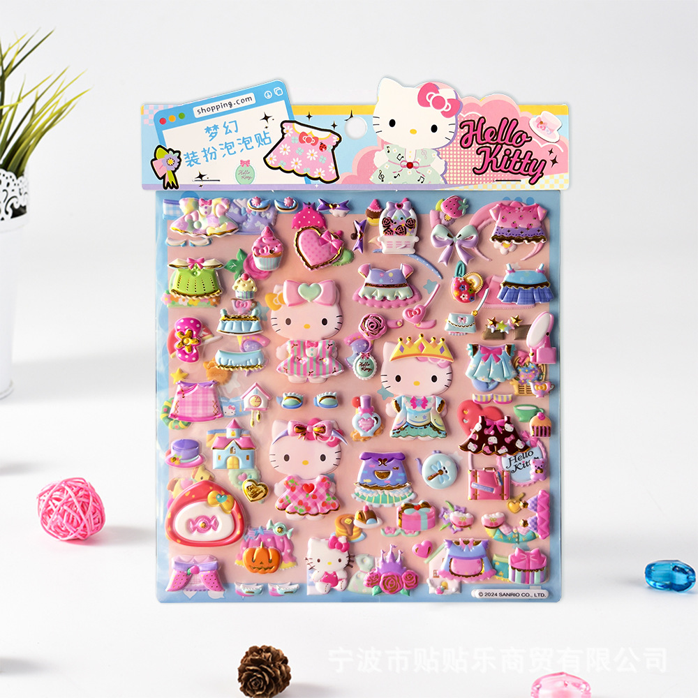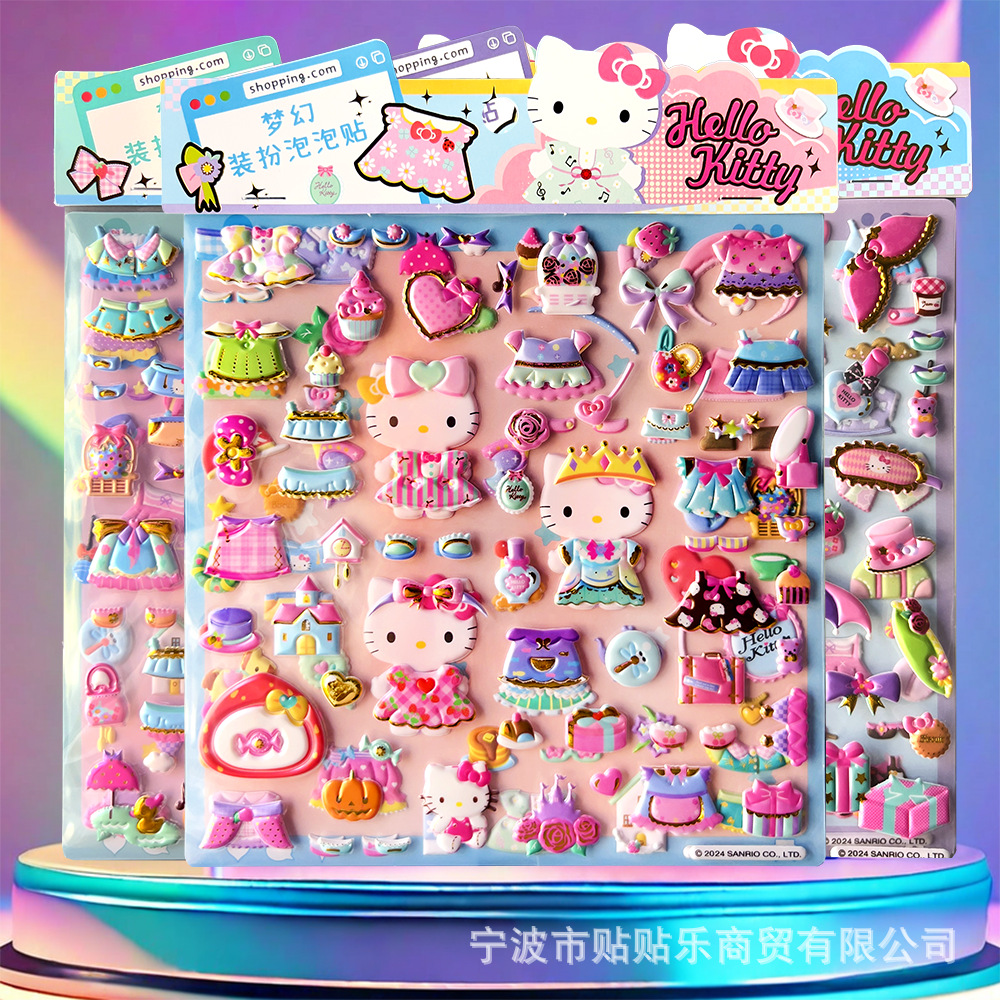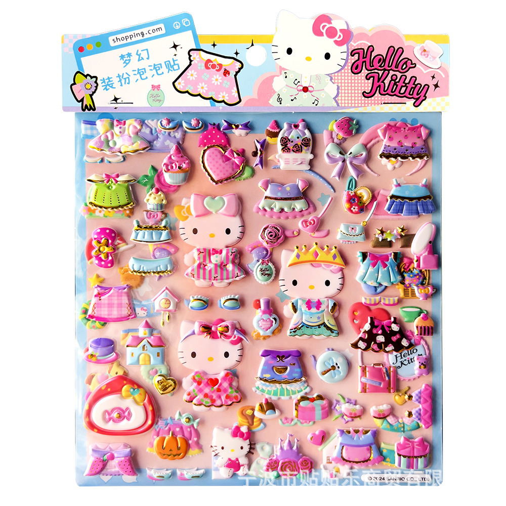 산리오 KT 만화 원피스 더블 레이어 스티커 새로운 소녀 3 차원 어린이 헬로 키티 스티커스토어 가기