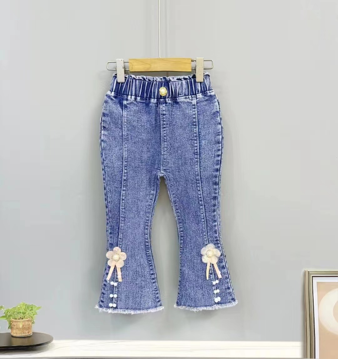 소녀 청바지 봄과 가을 슬림 핏 벨 바지 어린이 서양식 패셔너블 올 매치 보이즈 한국 스타일 바지 여성 대외 무역
