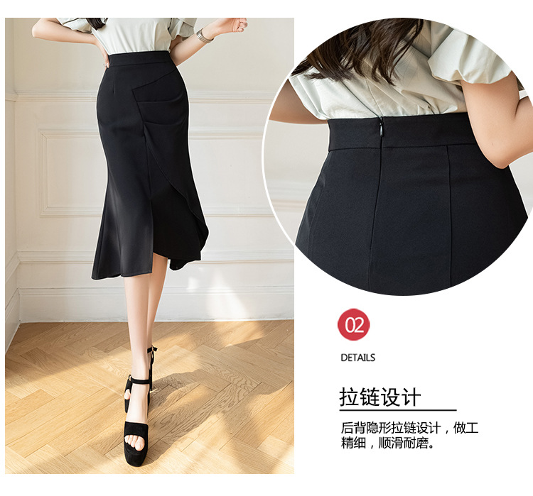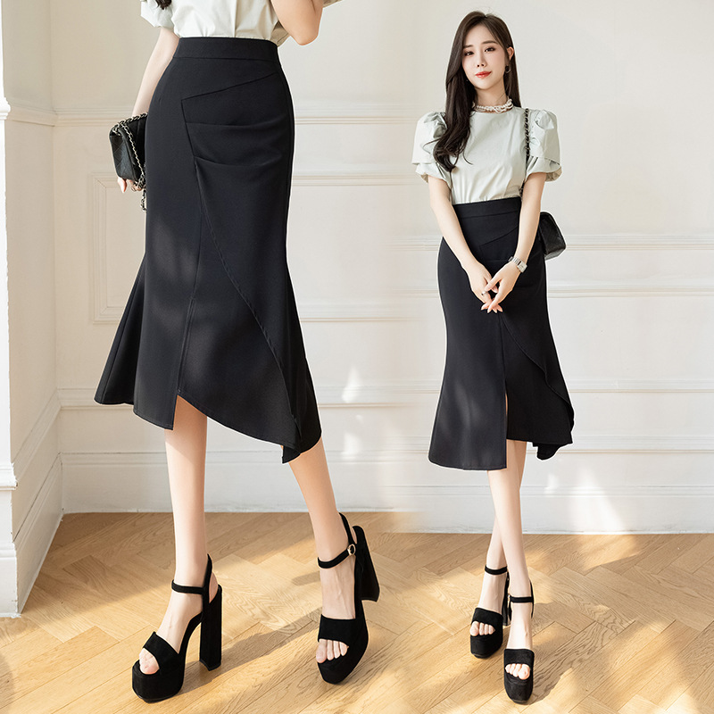 재고 중장 치마 여성의 2024 새로운 주름 디자인 높은 허리 슬리밍 고관절 연꽃 잎 Fishtail 스커트 가을스토어 가기