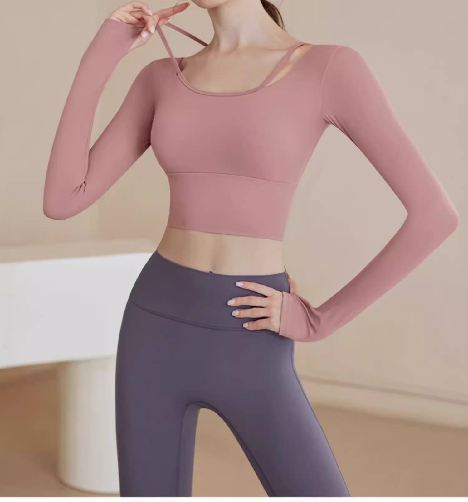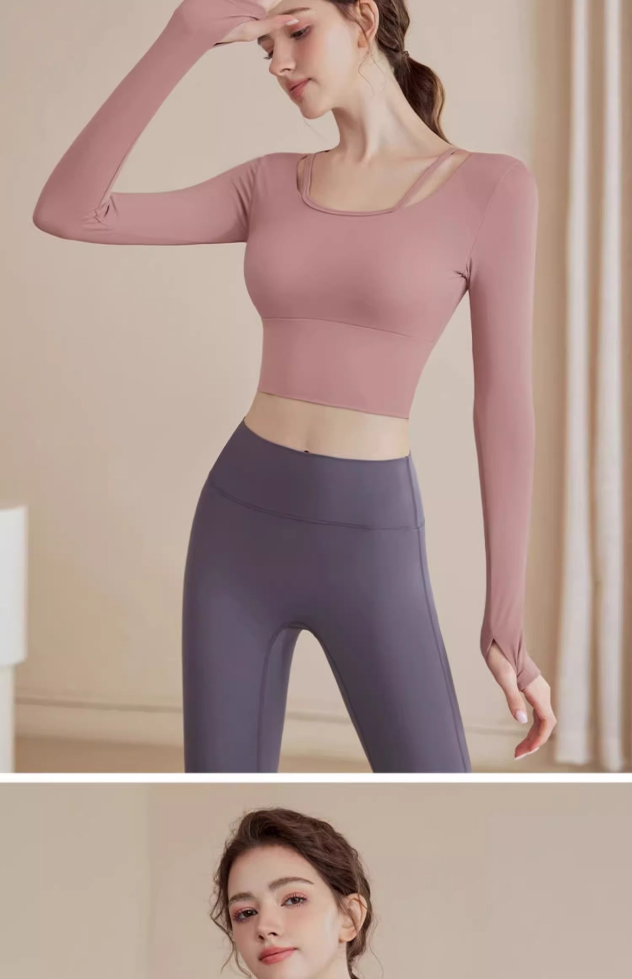 • 핑크 탑 + 그레이 퍼플 요가 팬츠