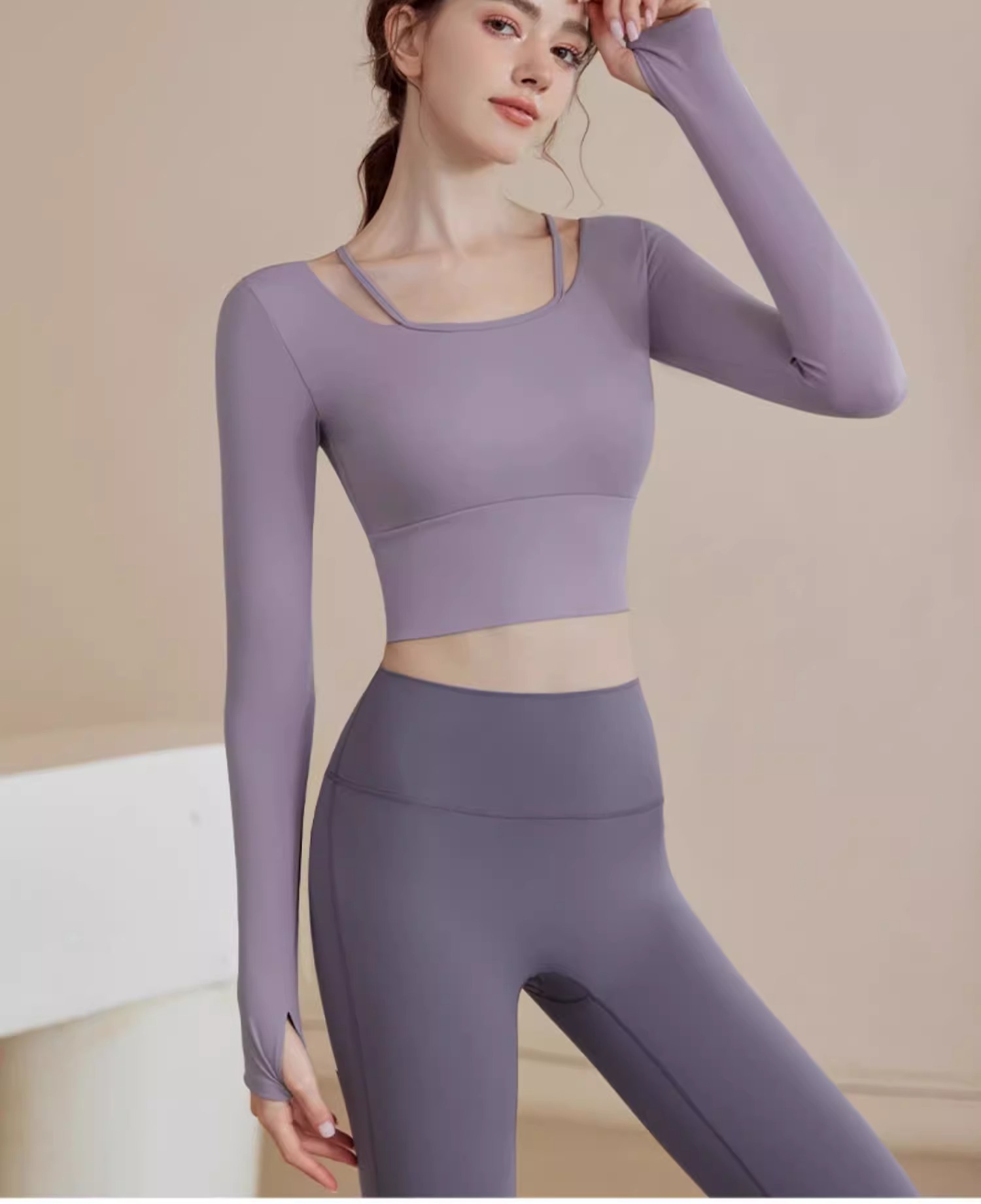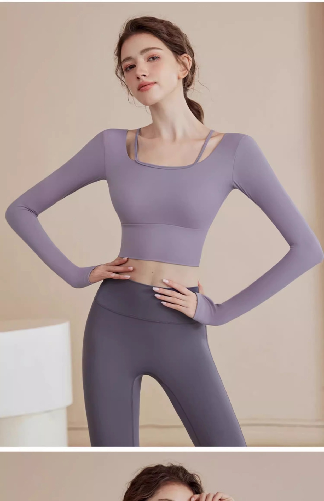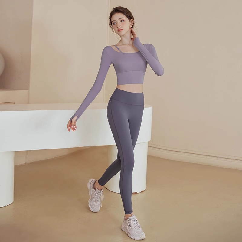 • 보라색 상의 + 회색 보라색 요가 바지
