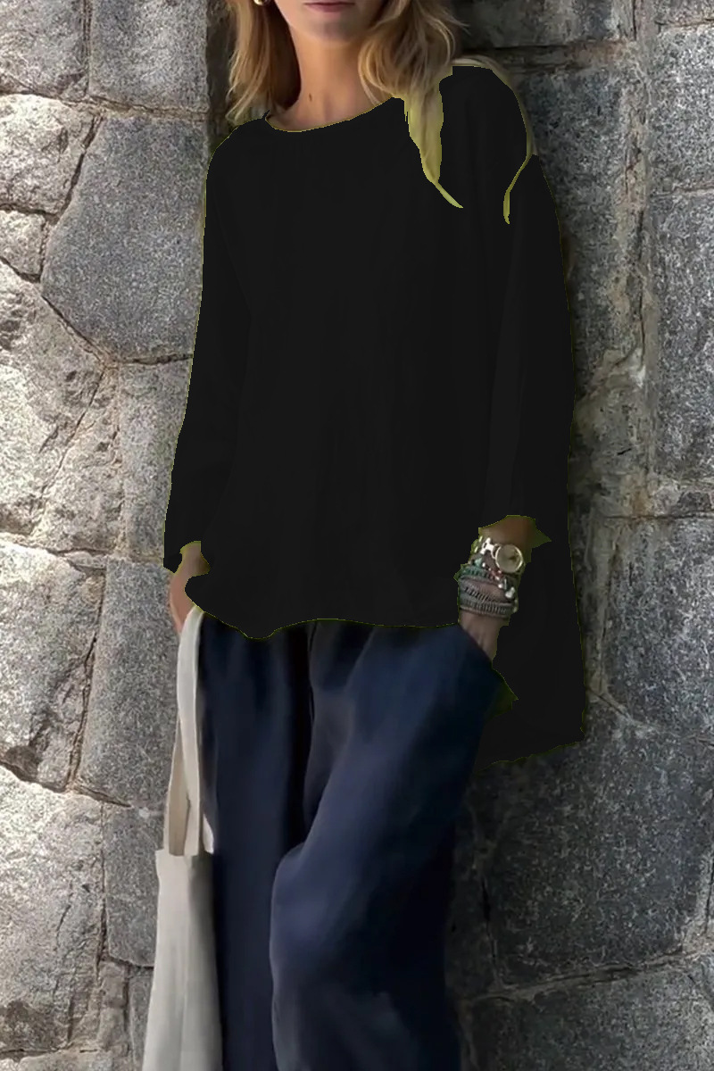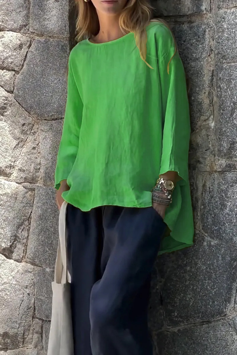 2025 Amazon 대외 무역 여성용 9부 소매 라운드 넥 코튼 린넨 루즈 셔츠 탑