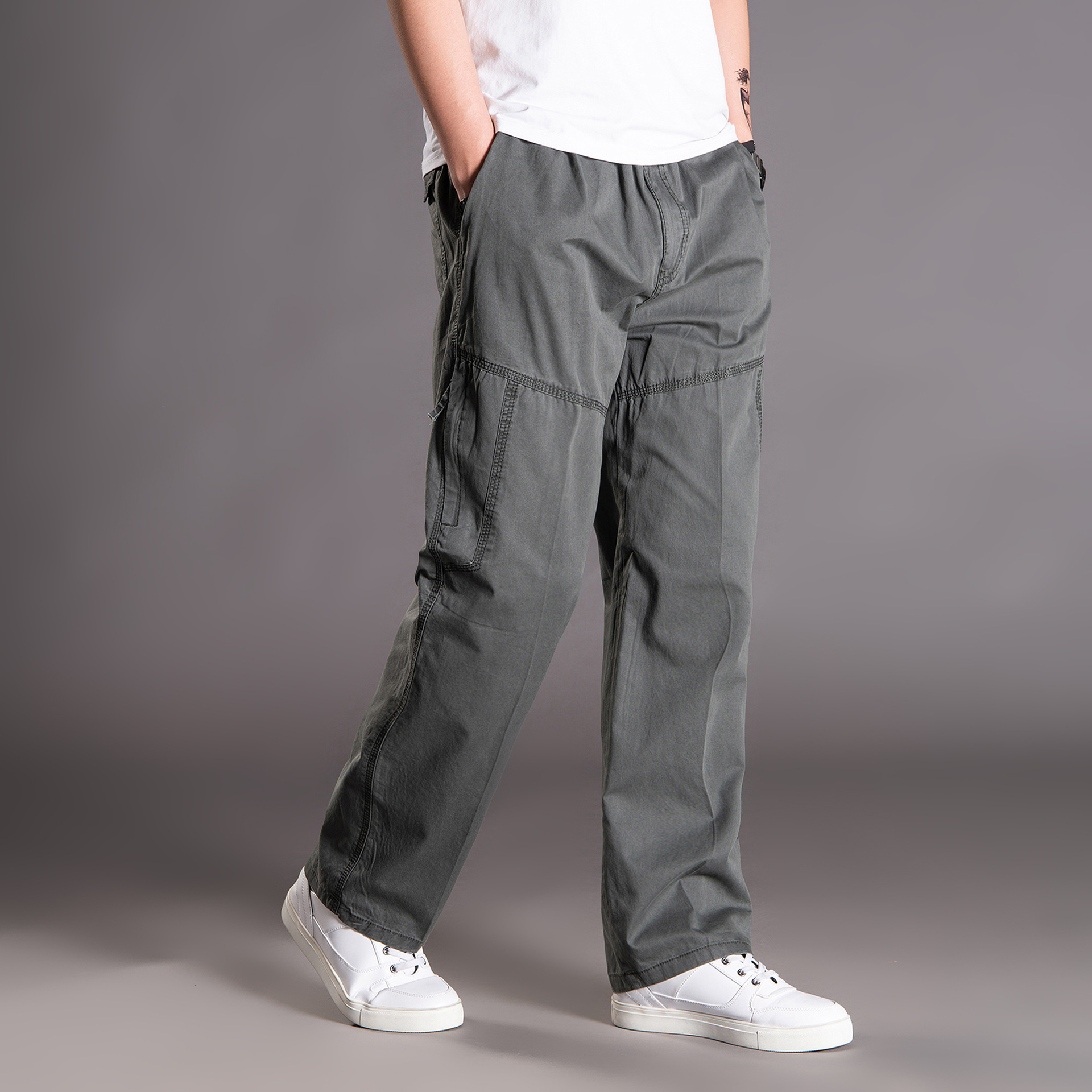 공장 직접 플러스 지방 플러스 사이즈 오버 사이즈 바지 도매 뚱뚱한 남자 캐주얼 바지 스포츠 바지 뚱뚱한 남자 멀티 포켓 얇은 남자스토어 가기