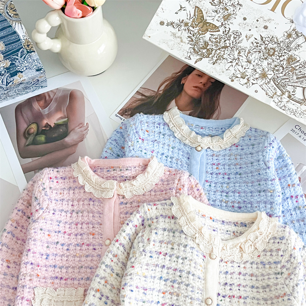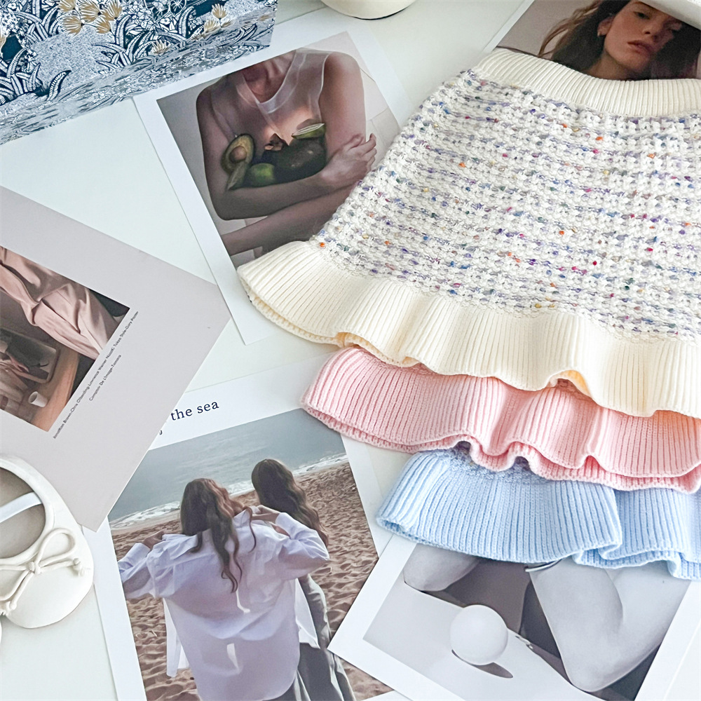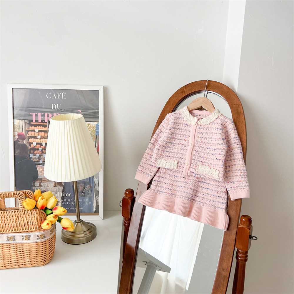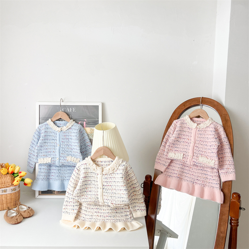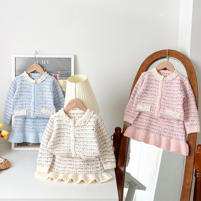 2024 가을과 겨울 새 소녀 스웨터 피쉬 테일 스커트 투피스 레이스 니트 스커트 세트 카디건 스커트스토어 가기