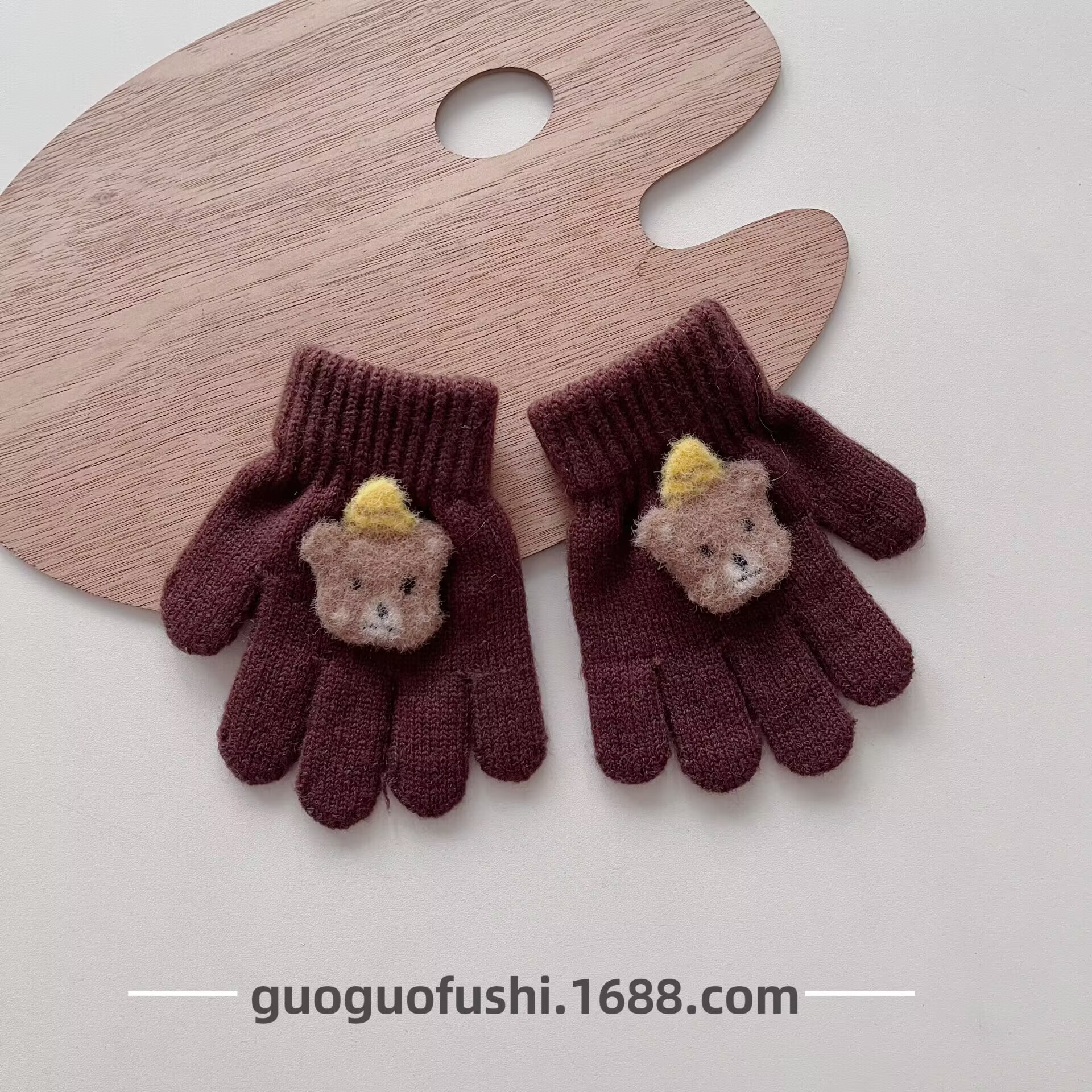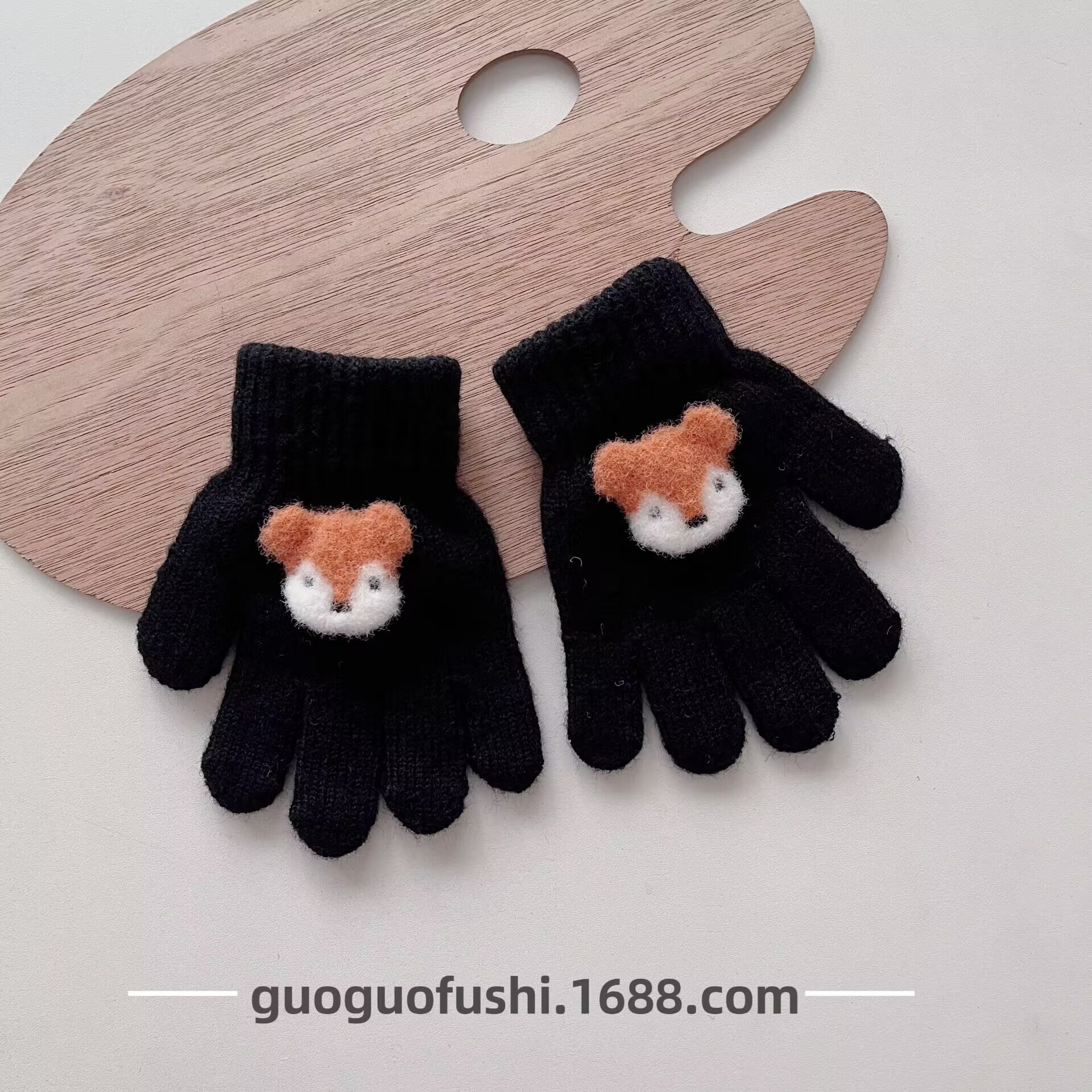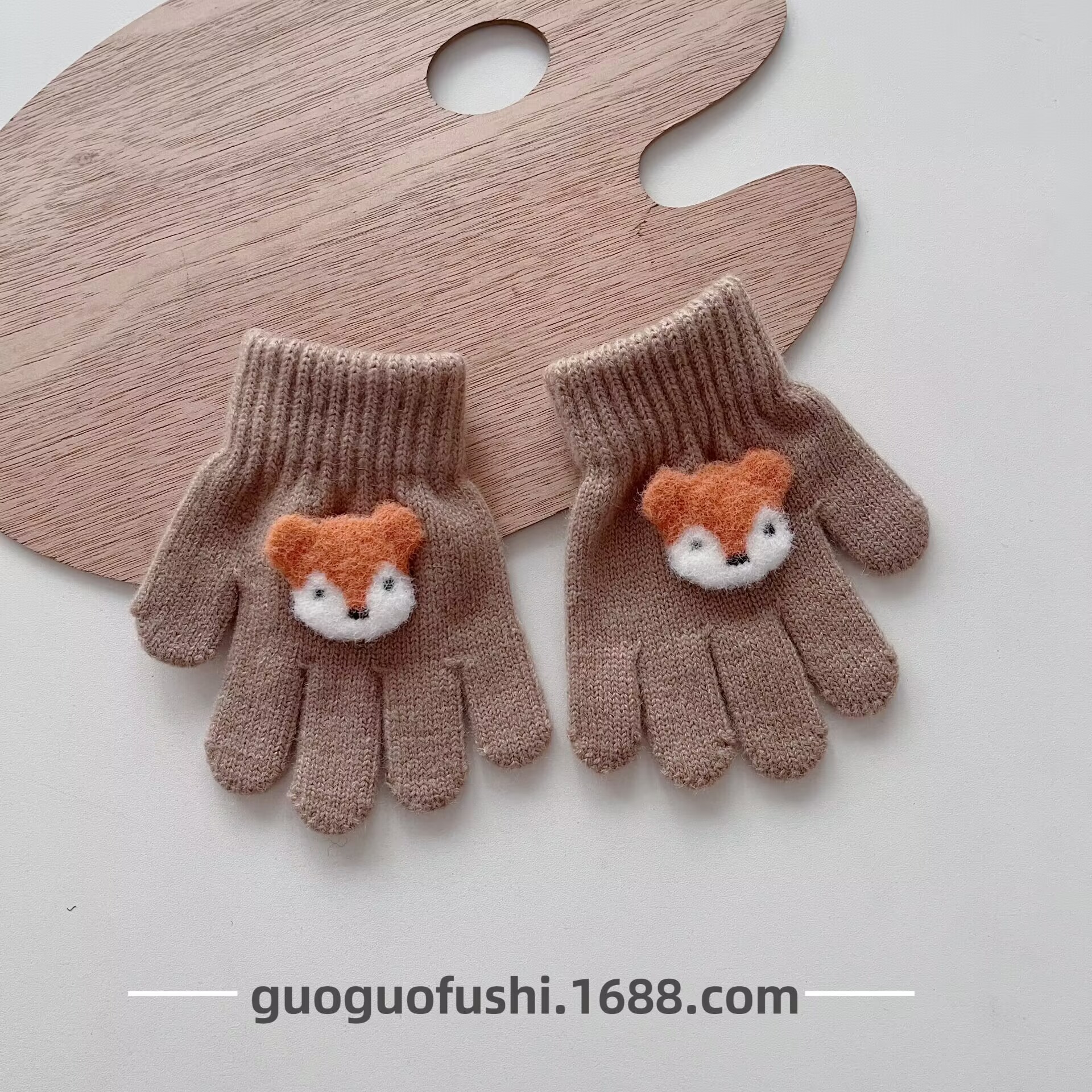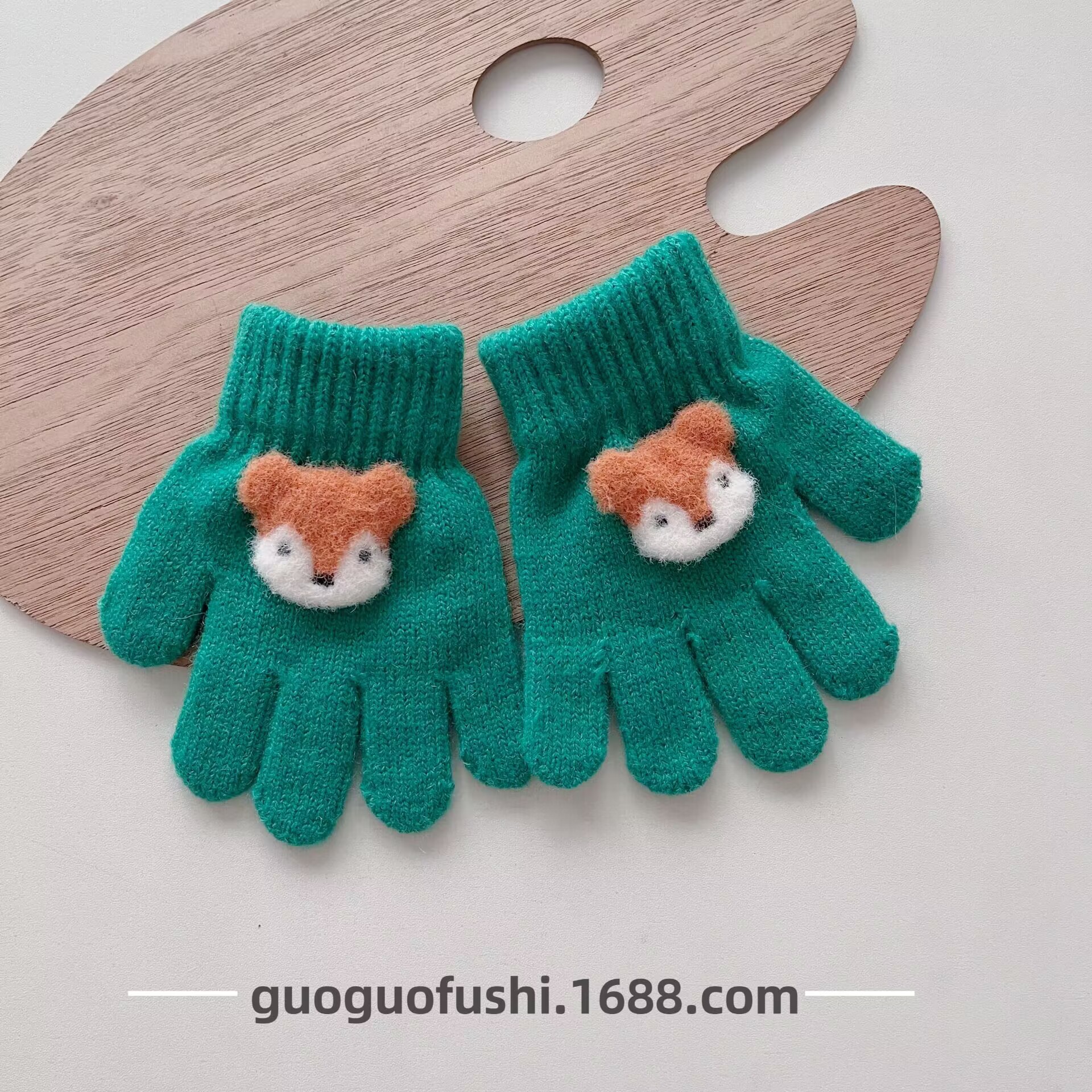 만화 작은 동물 어린이 서양 스타일 니트 장갑 겨울 귀여운 따뜻한 다섯 손가락 장갑 소년 소녀를위한 장갑