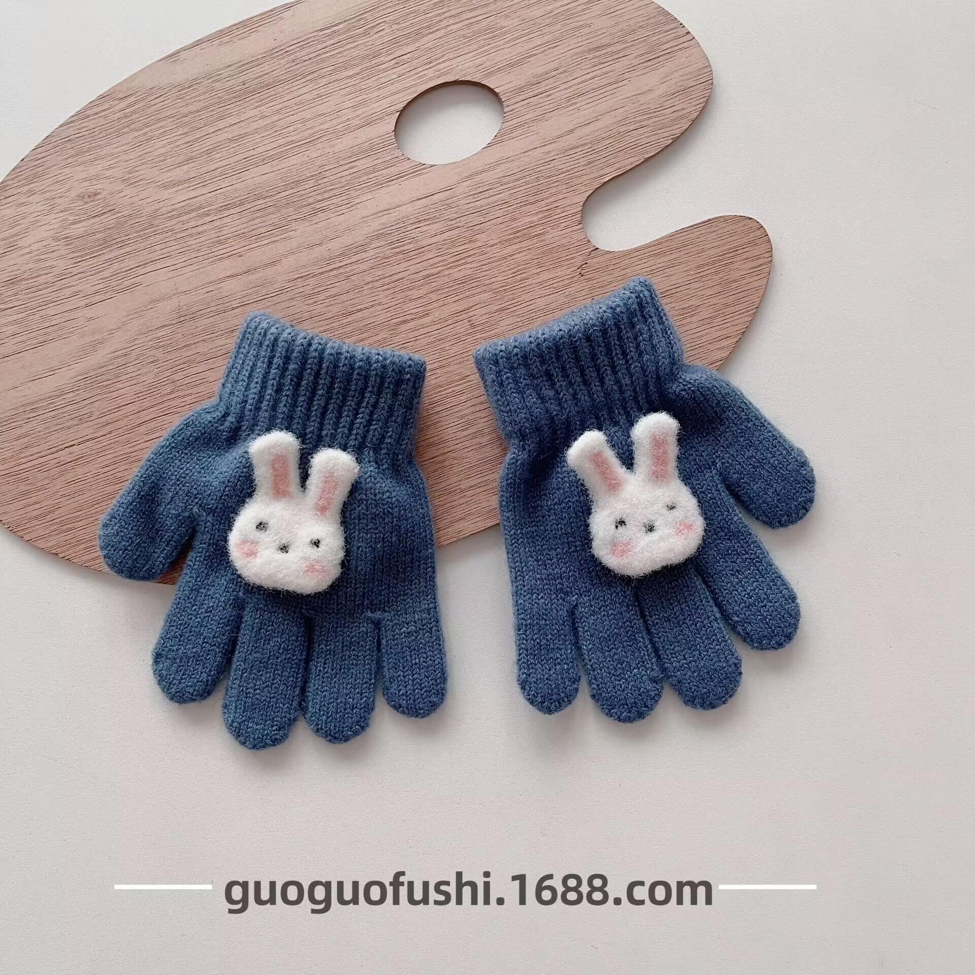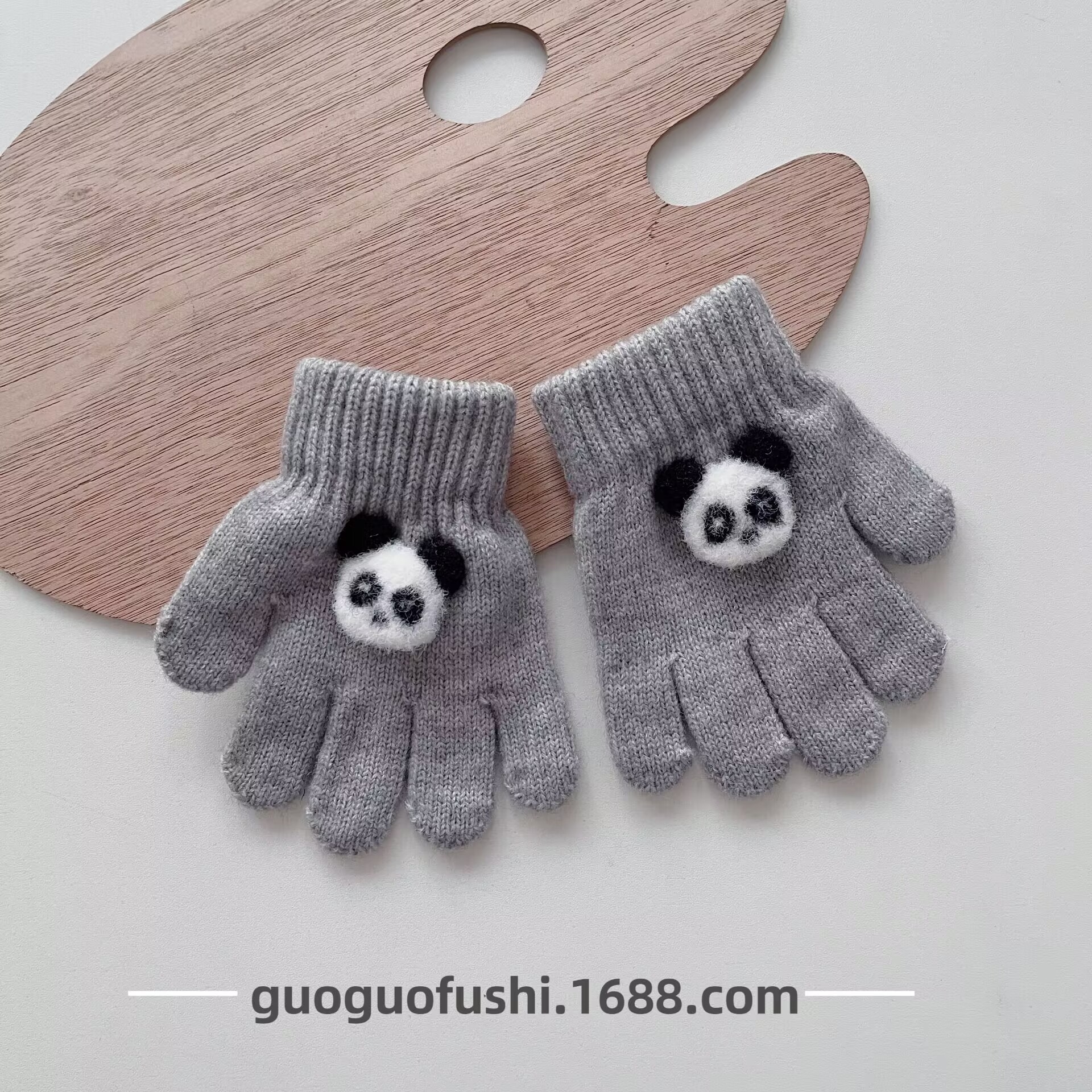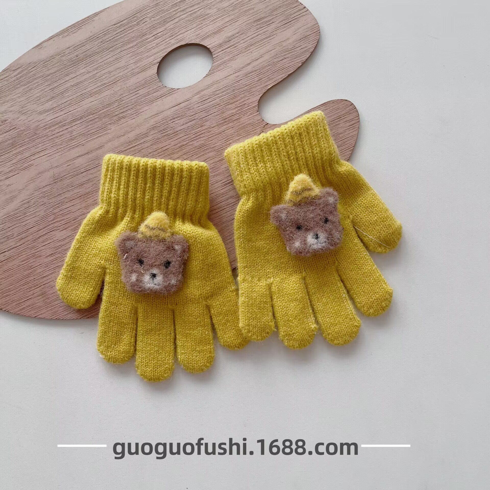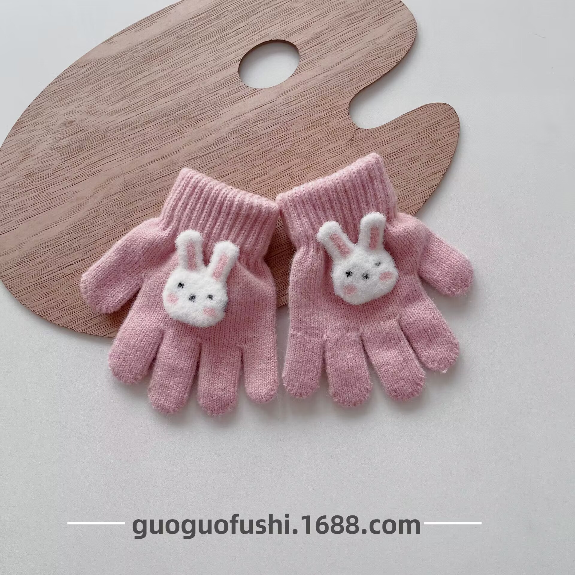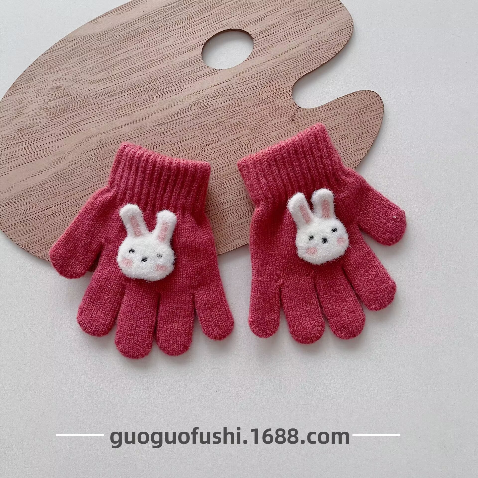 만화 작은 동물 어린이 서양 스타일 니트 장갑 겨울 귀여운 따뜻한 다섯 손가락 장갑 소년 소녀를위한 장갑