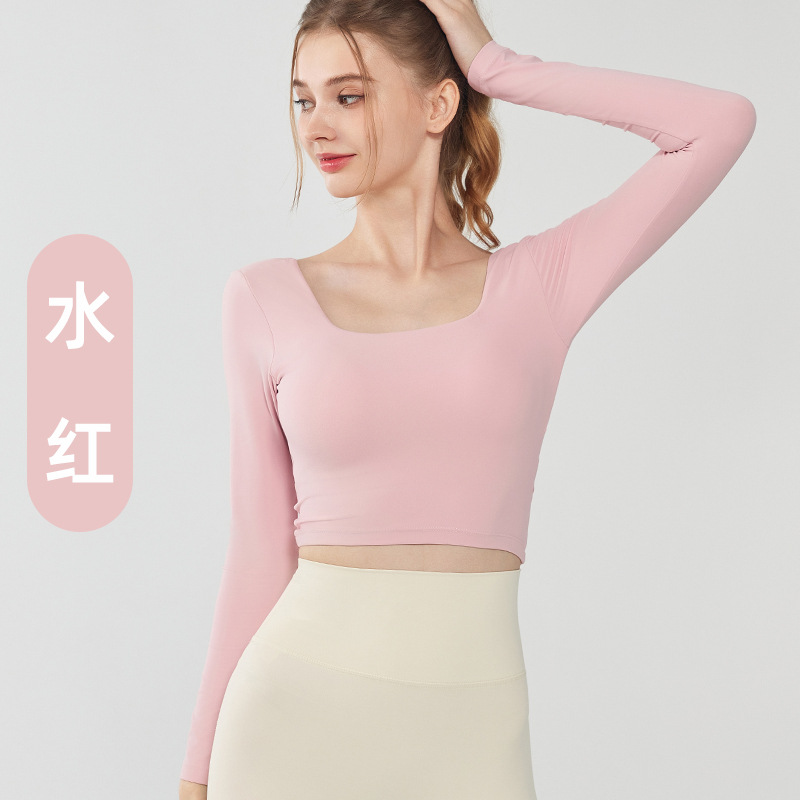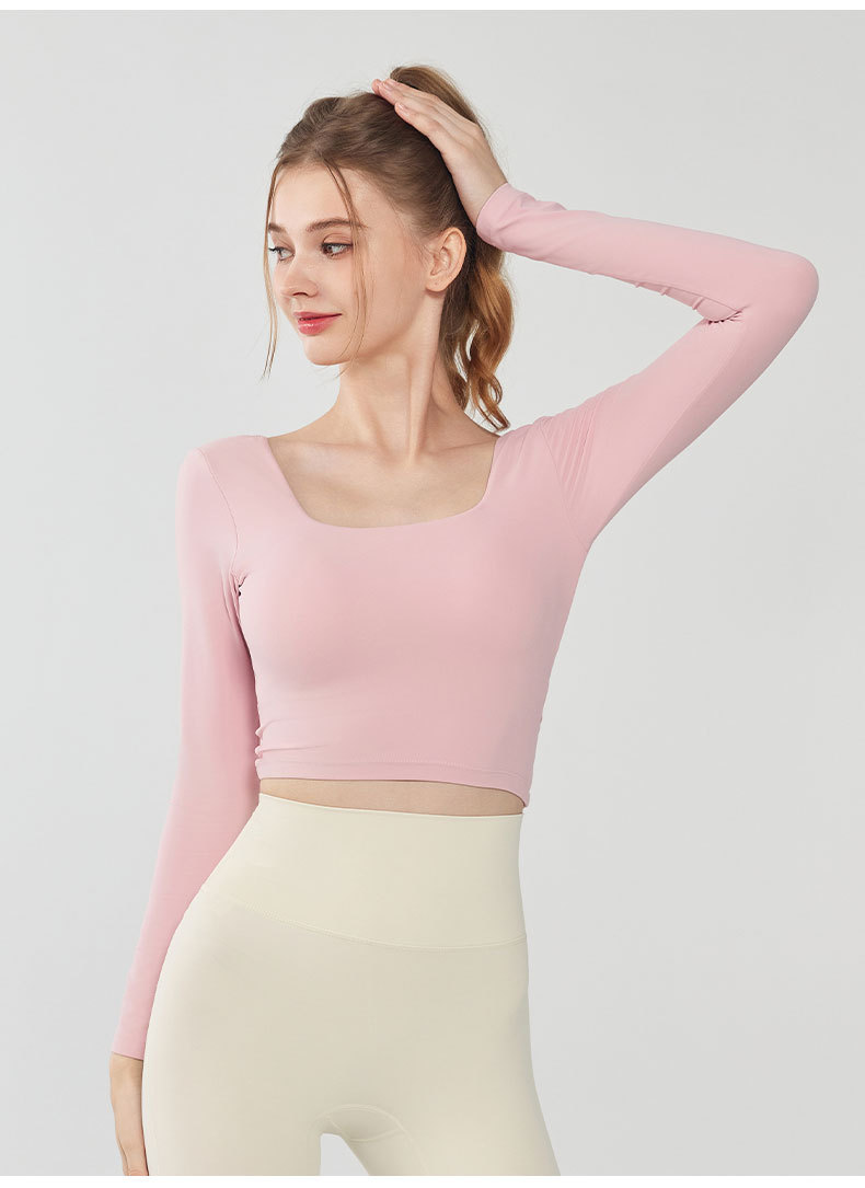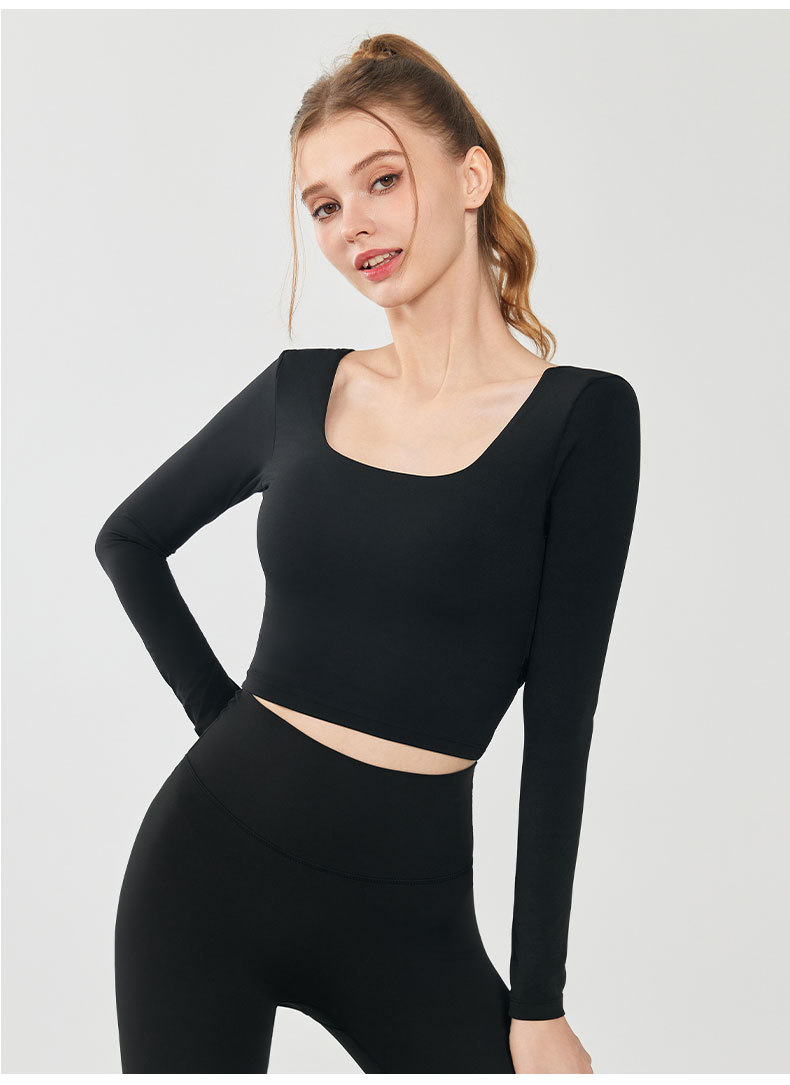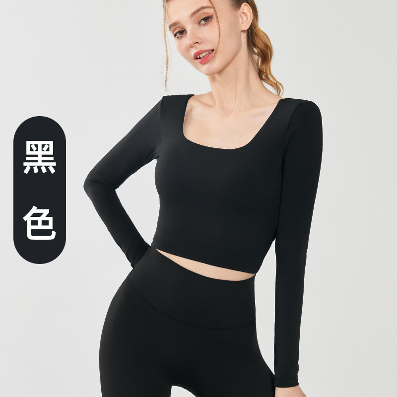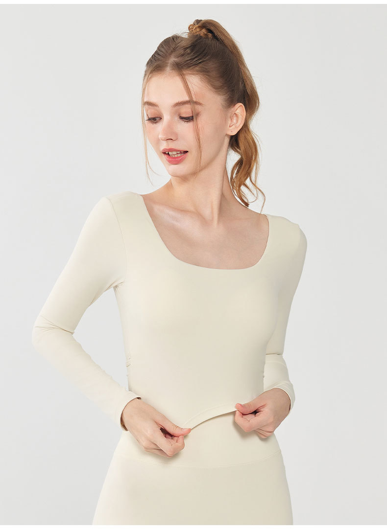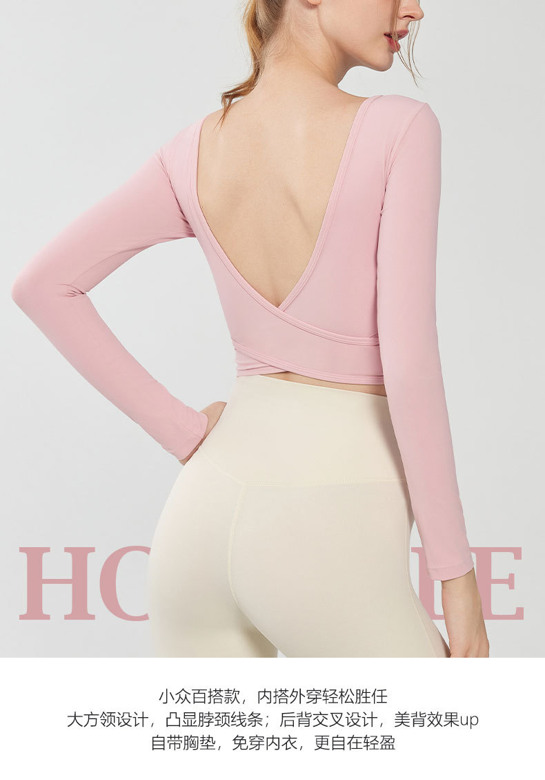 가을과 겨울 크로스 백 요가 세트 긴팔 여성용 원피스 고정 컵 슬림 핏 백리스 스퀘어 넥 스포츠 피트니스 탑