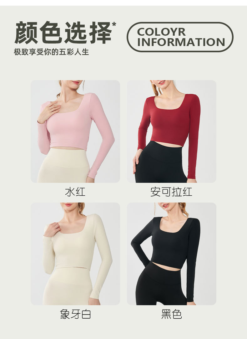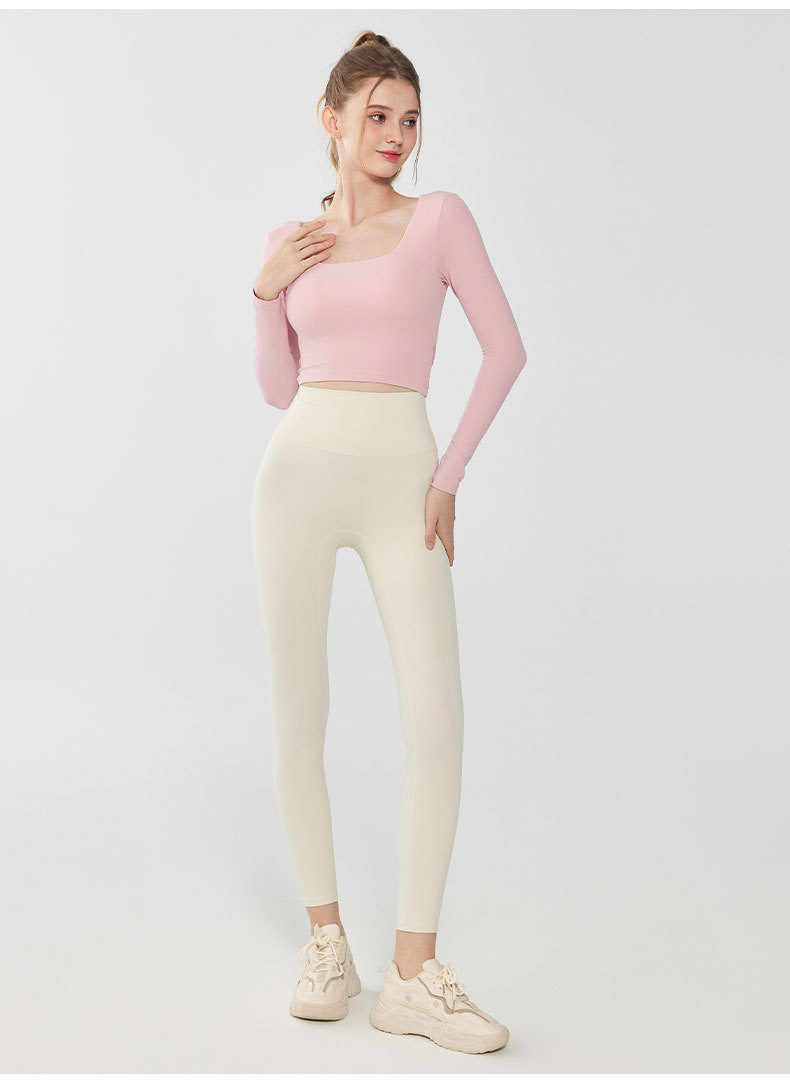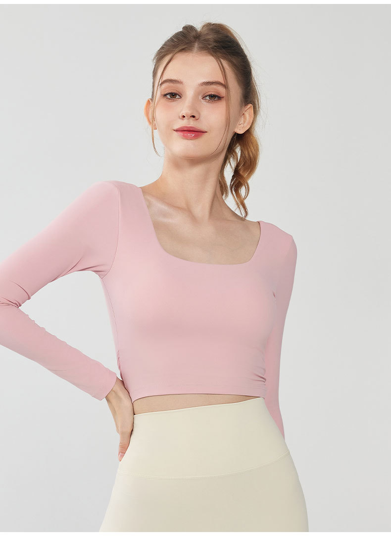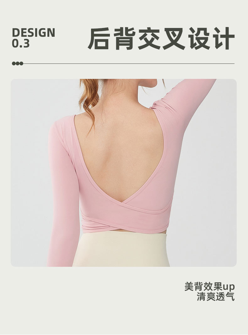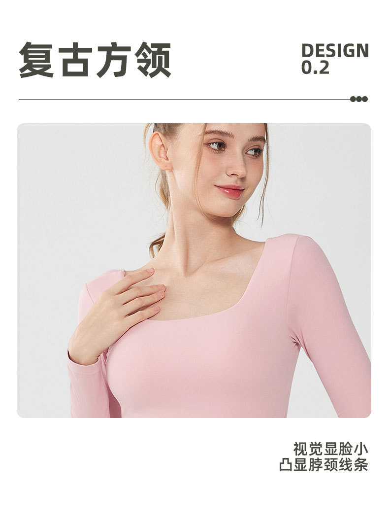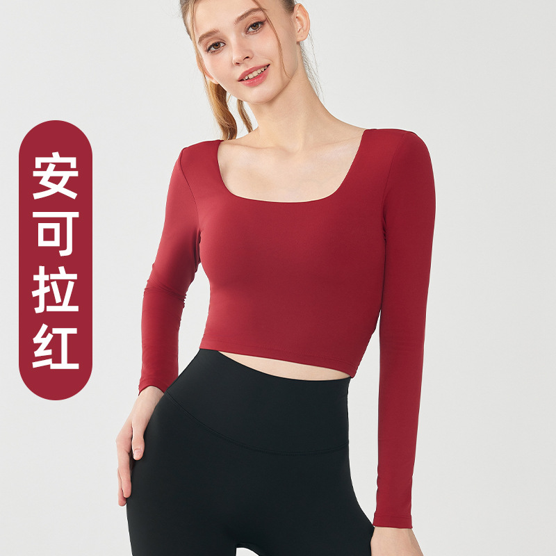 가을과 겨울 크로스 백 요가 세트 긴팔 여성용 원피스 고정 컵 슬림 핏 백리스 스퀘어 넥 스포츠 피트니스 탑